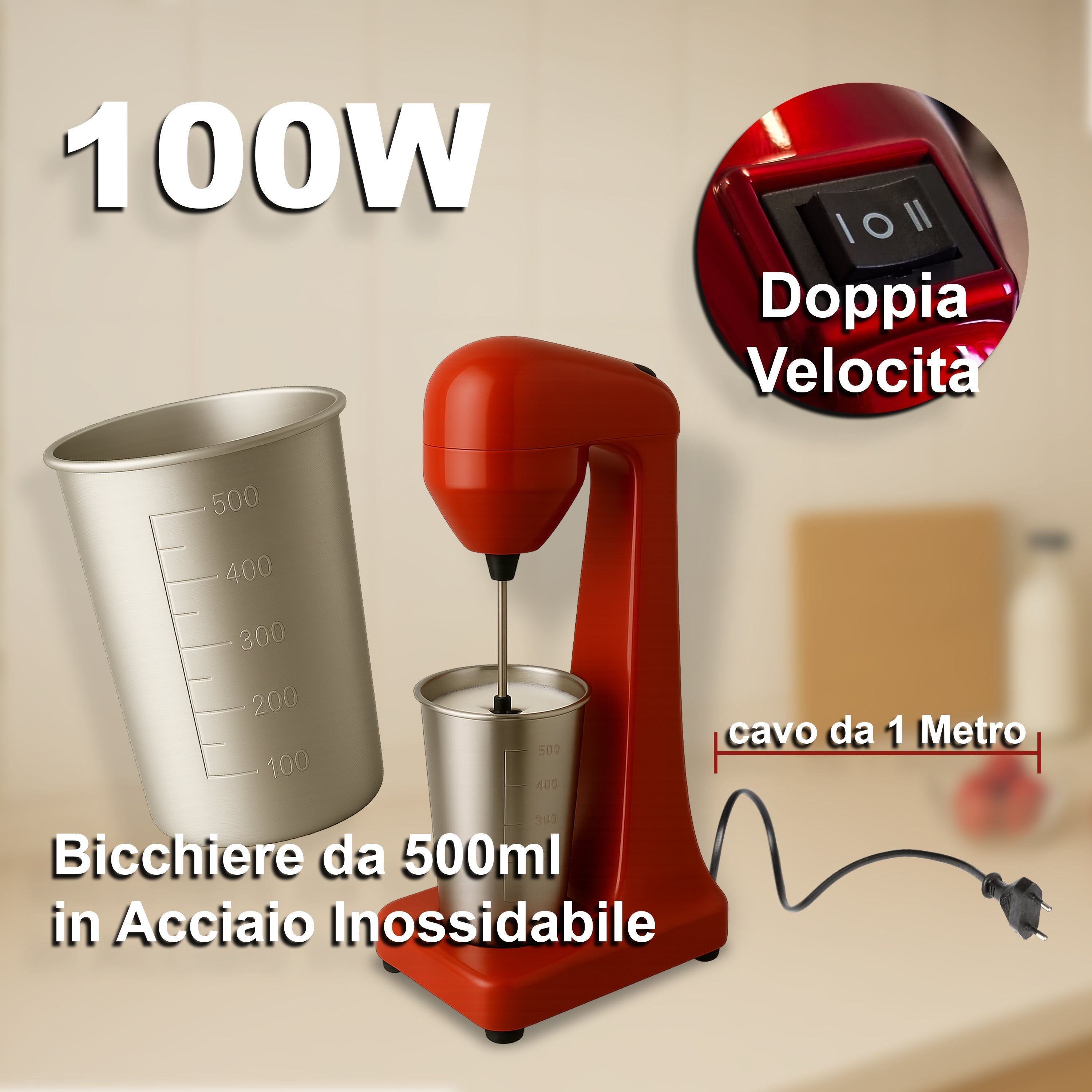 Mixer Frullatore Professionale 100W - Doppia Velocità | Ideale per Frappè, Caffè Shakerati e Cocktail