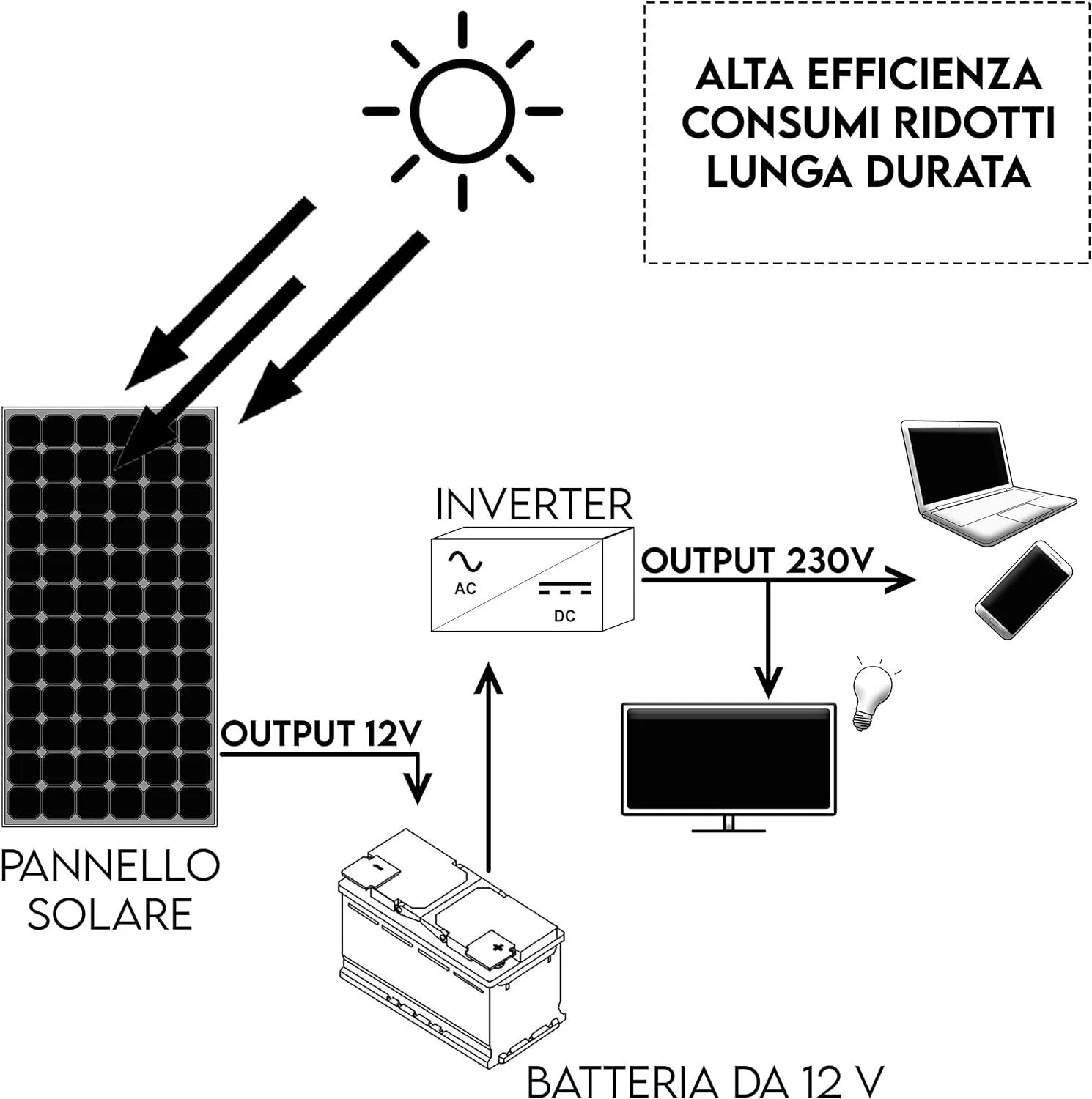 - VERSATILITÀ D'USO: Perfetto per l'uso su camper, barche o in aree isolate, garantisce un'alimentazione costante anche in movimento.