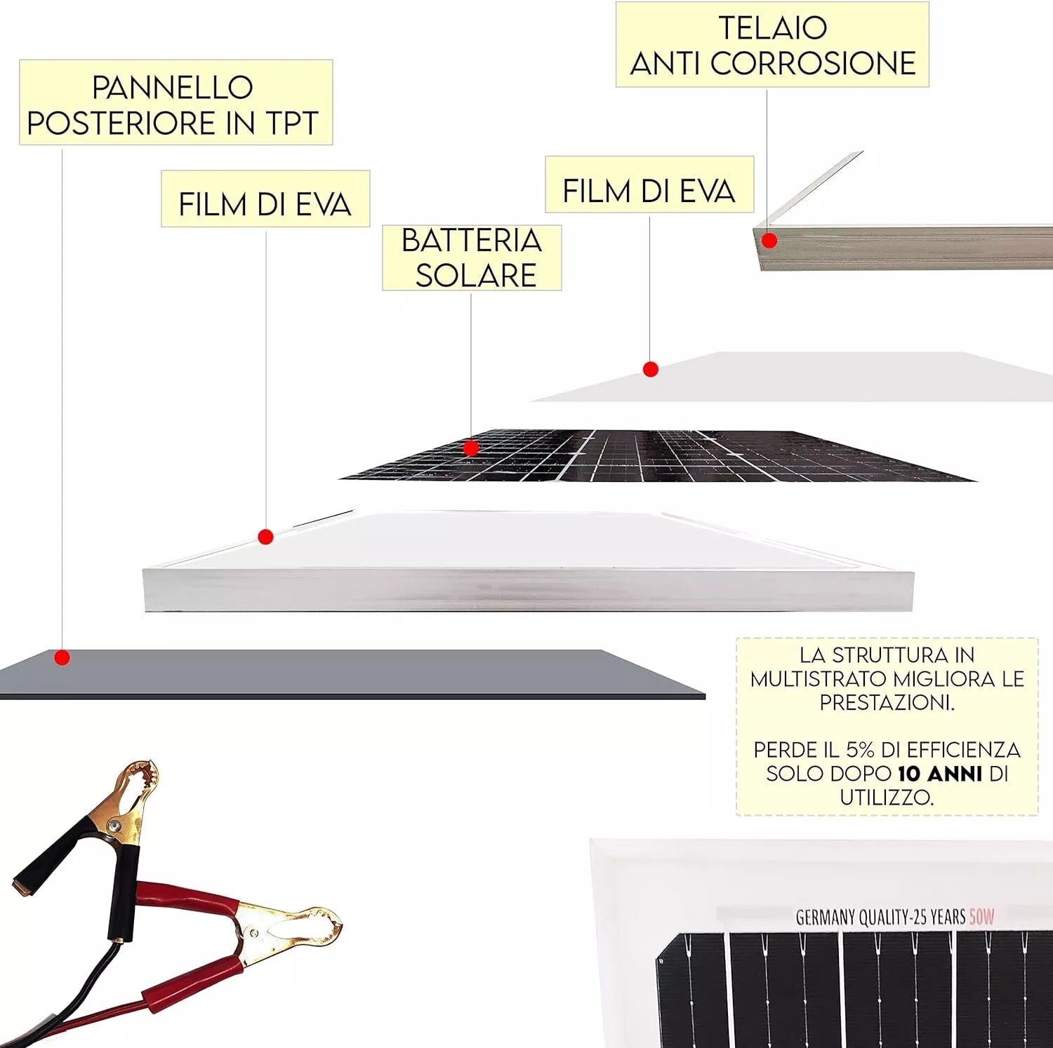 - RISPARMIO ENERGETICO: Grazie all'energia solare, riduci i costi delle bollette e l'impatto ambientale, ottimizzando l'energia naturale per camper e barche.