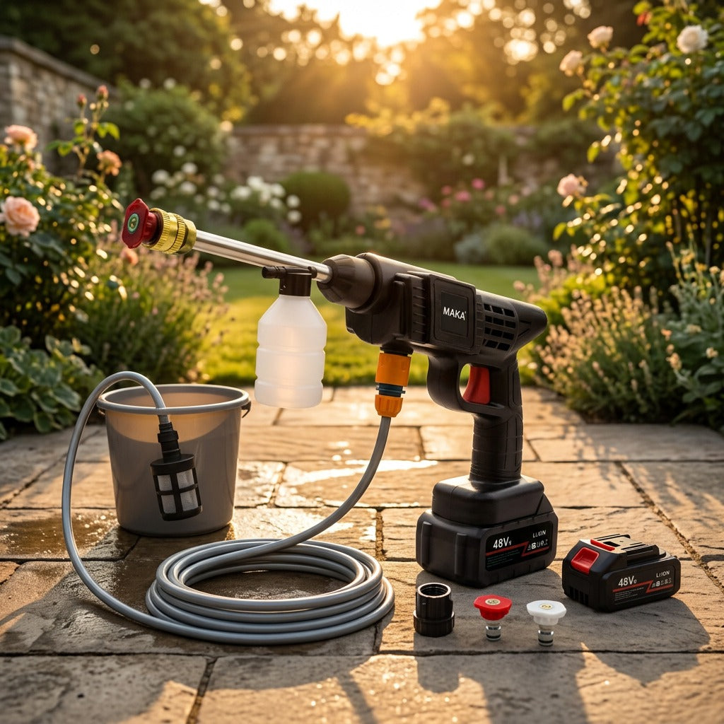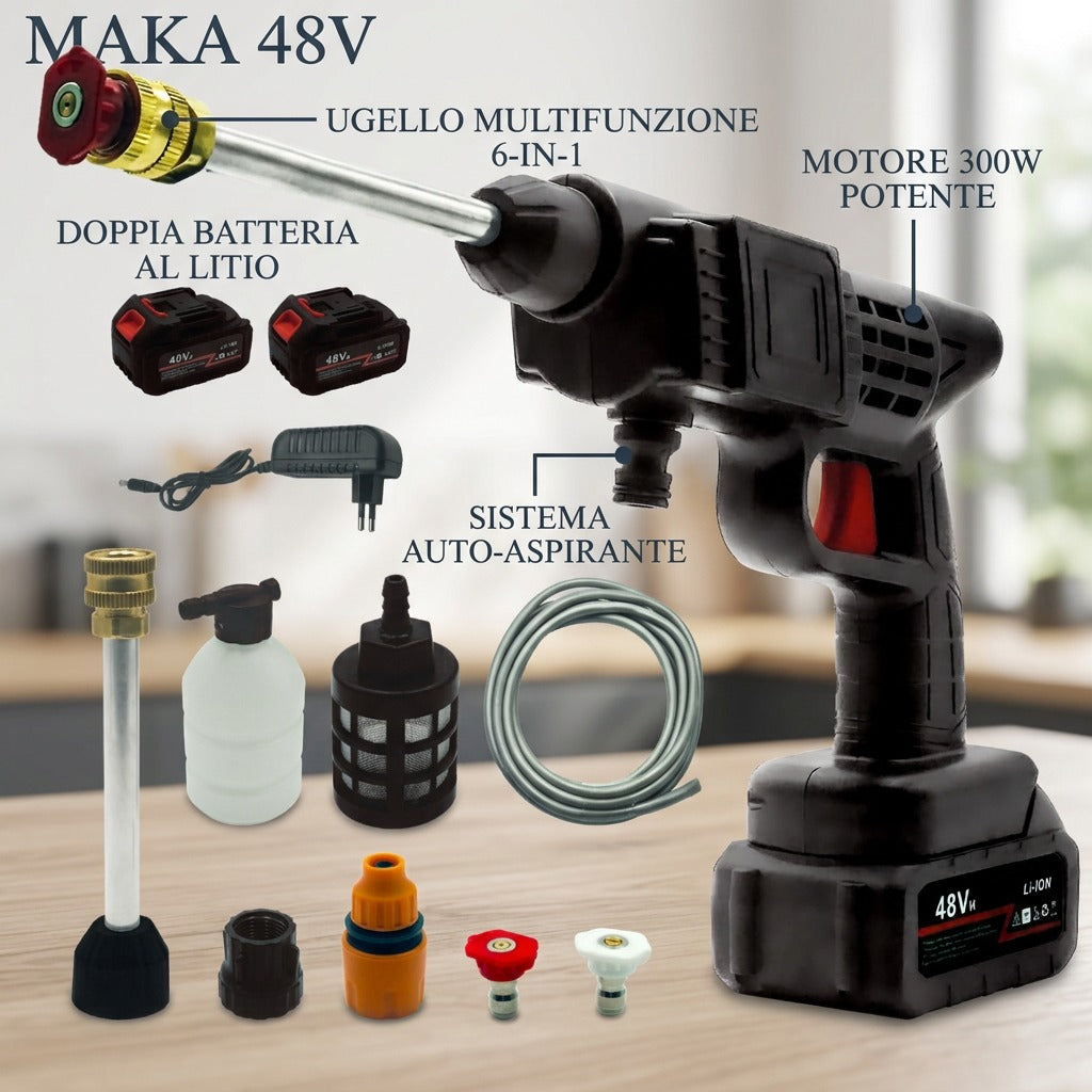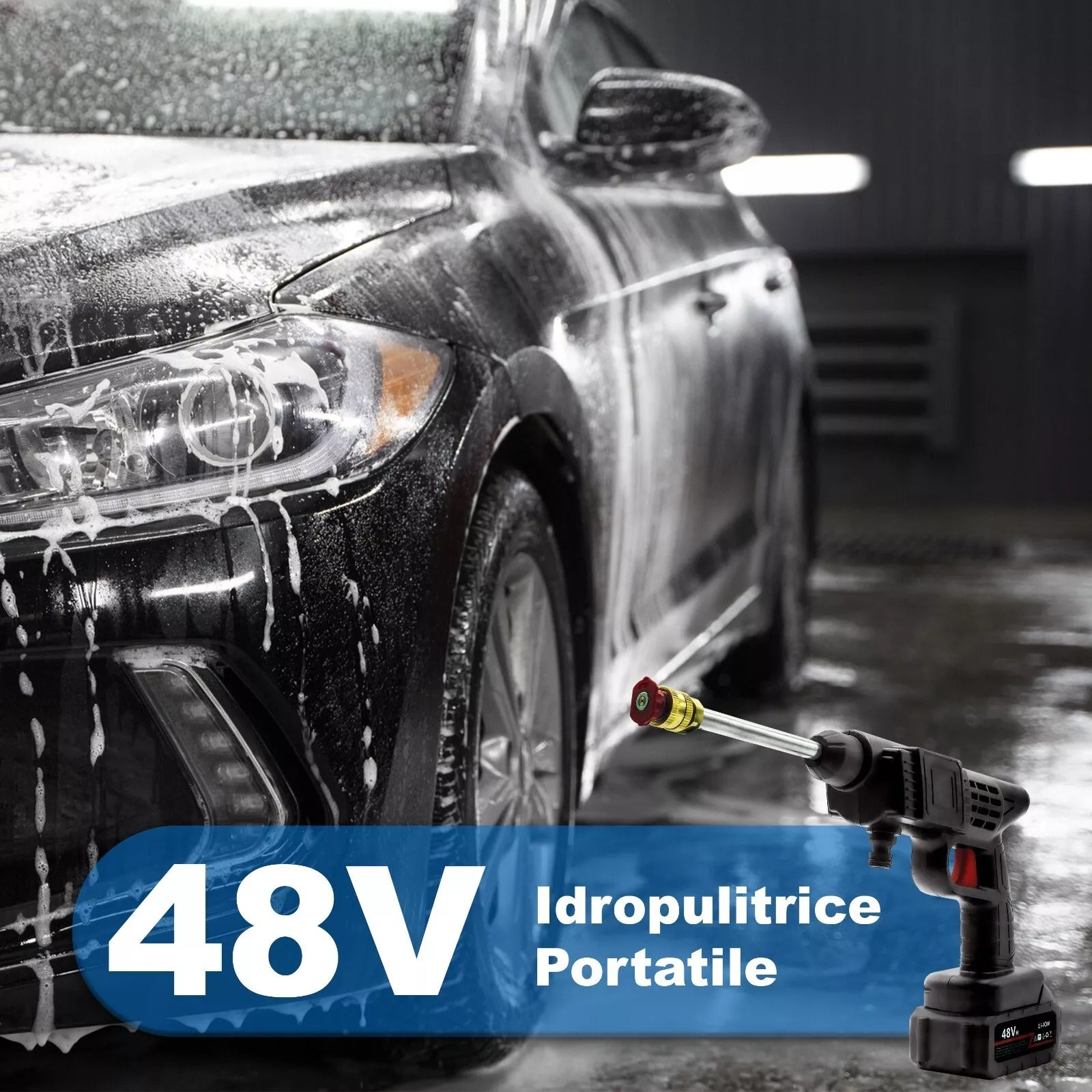 Pulitore Alta Pressione Portatile 48V Senza Fili con Ugello 6-in-1
