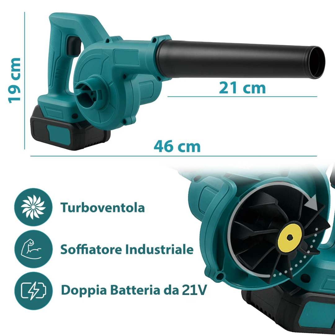 Soffiatore elettrico 21V a batteria con doppia batteria e aspiratore