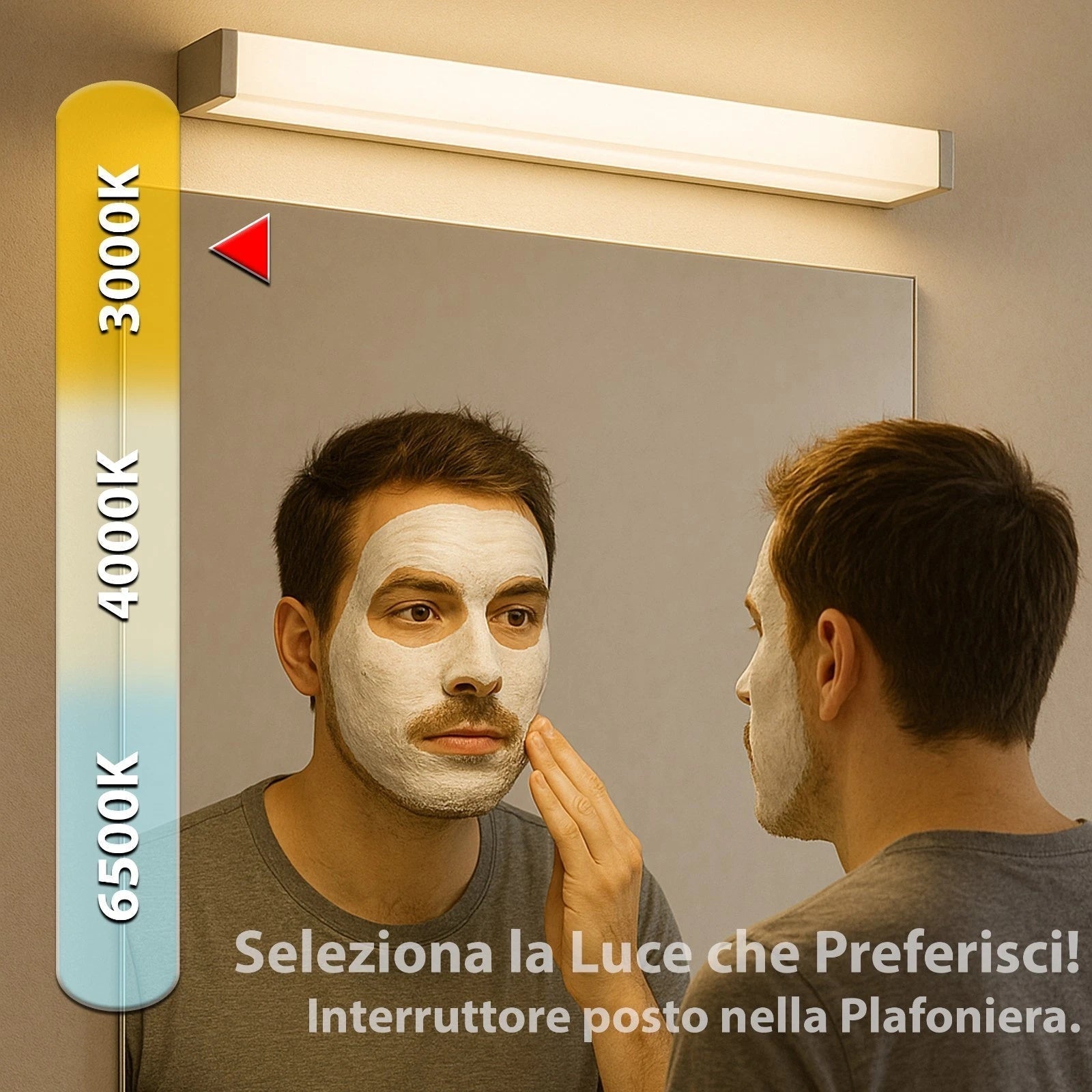 Applique da Specchio LED 12W Bagno con 3 Tonalità di Luce