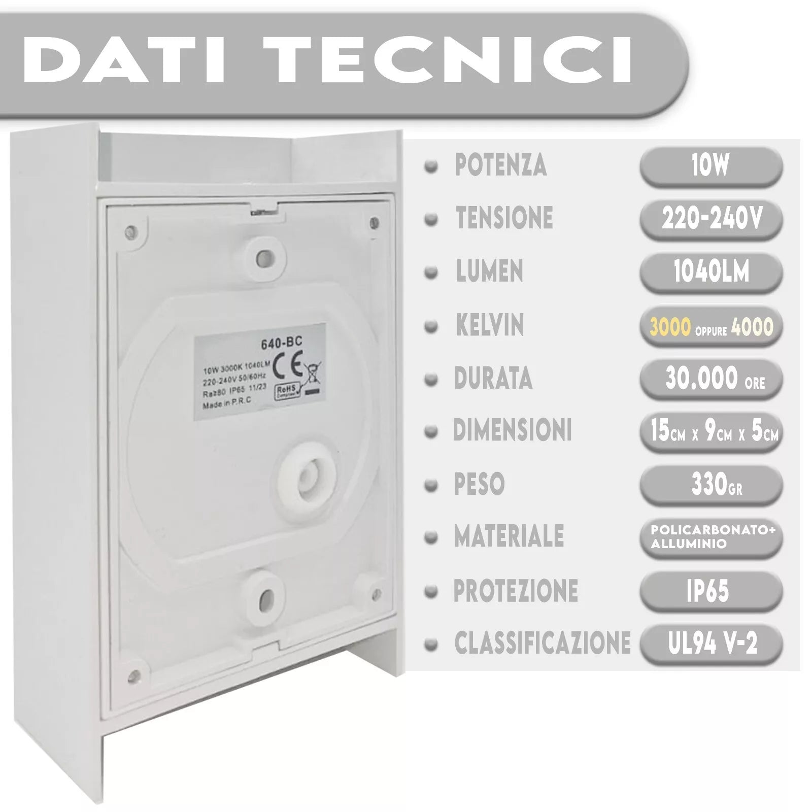 - EFFICIENZA ENERGETICA: La tecnologia LED da 10W offre un'illuminazione brillante con un basso consumo energetico, riducendo i costi di elettricità.