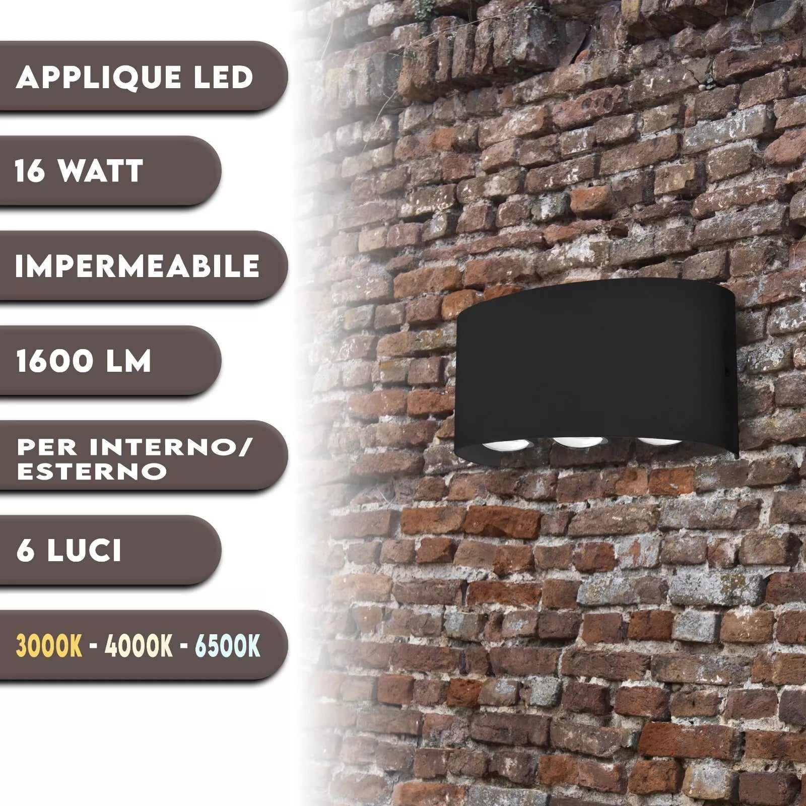 Applique LED bianco 16W Doppia Luce IP65 per Esterni Facile Montaggio