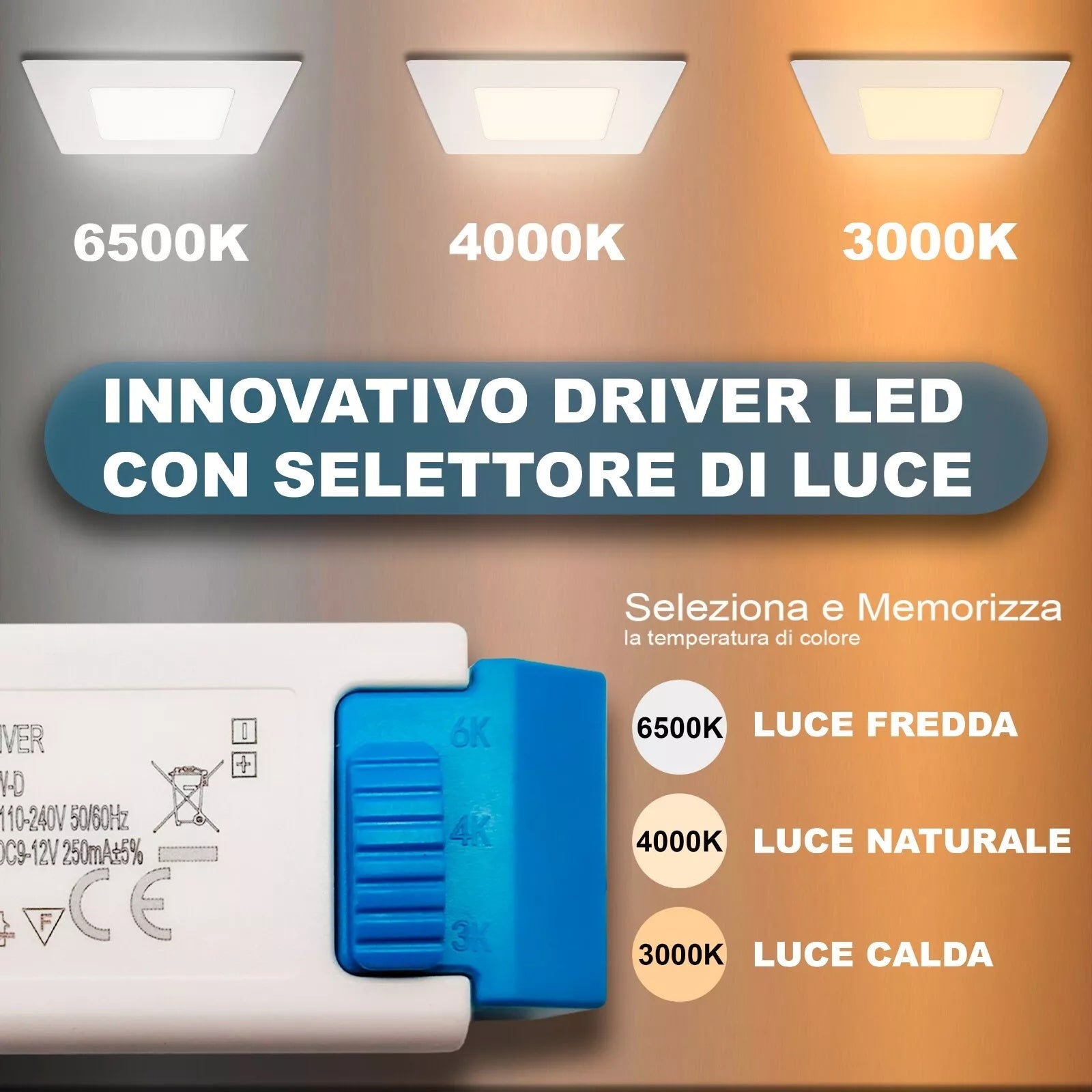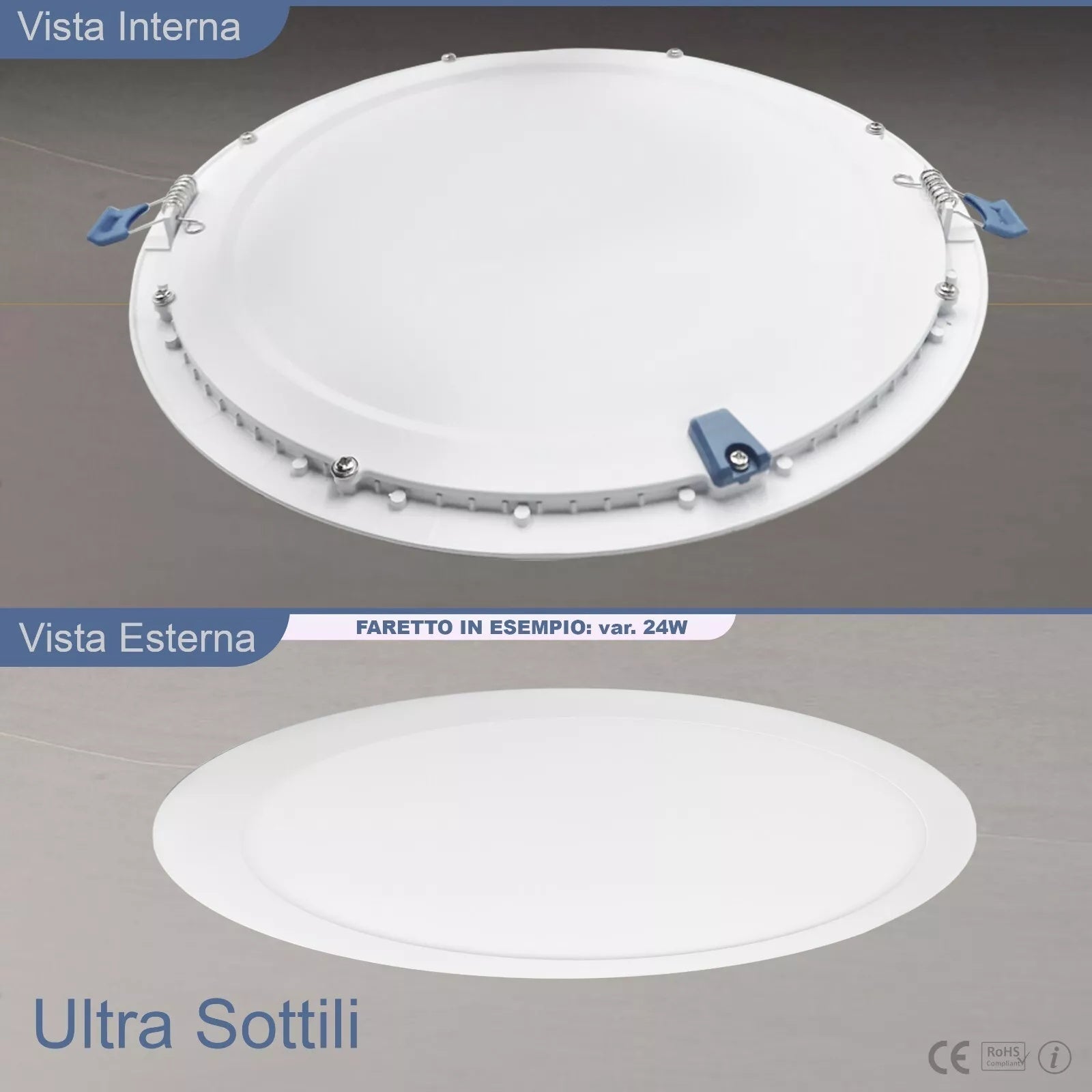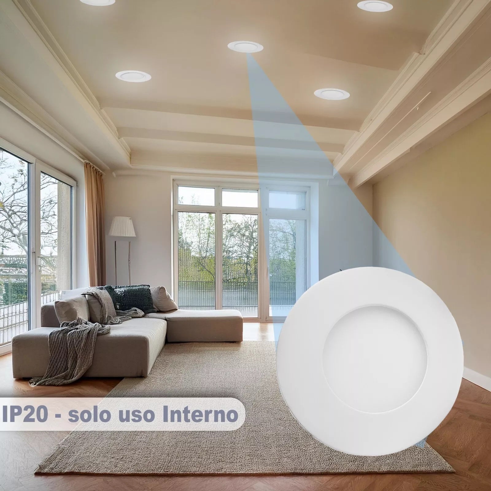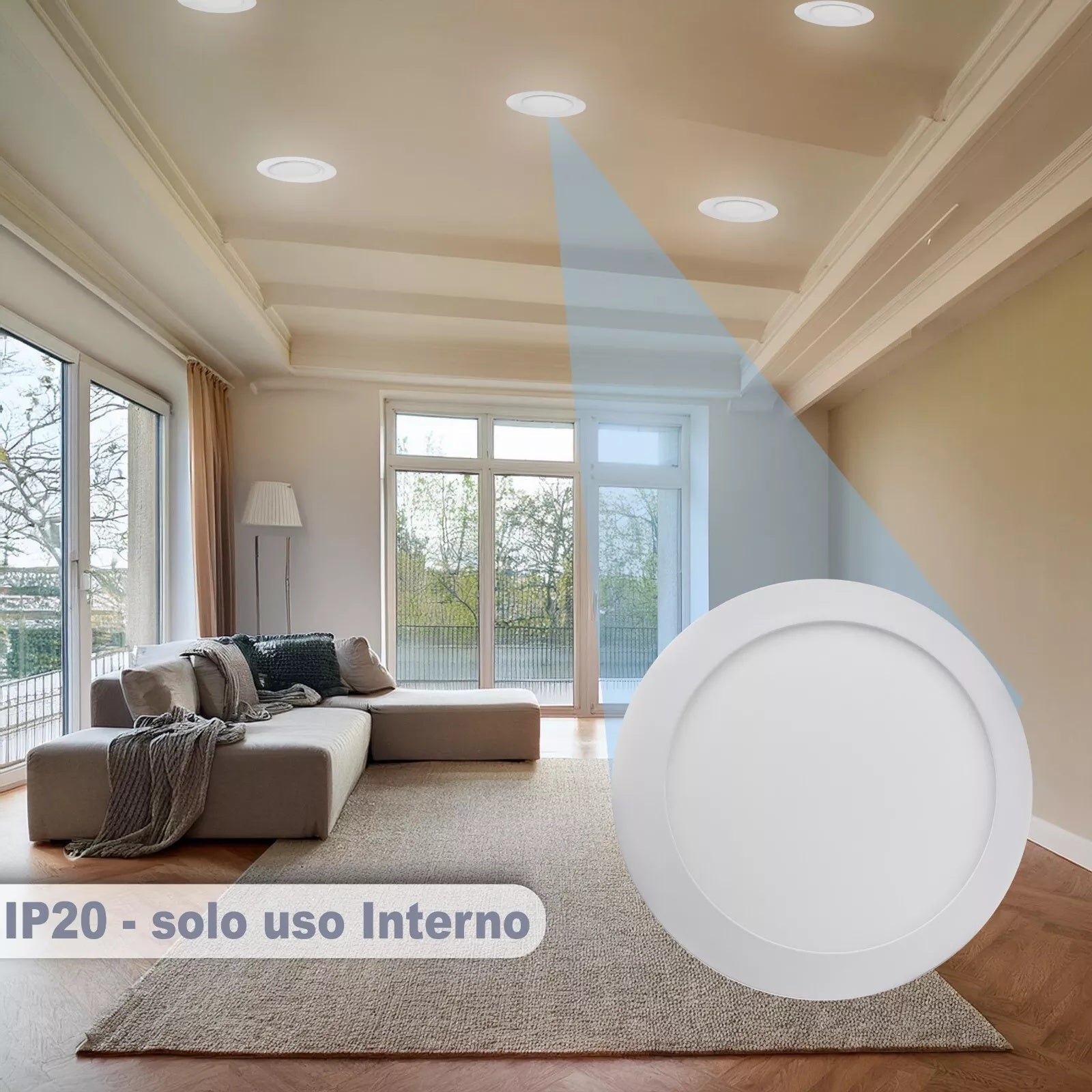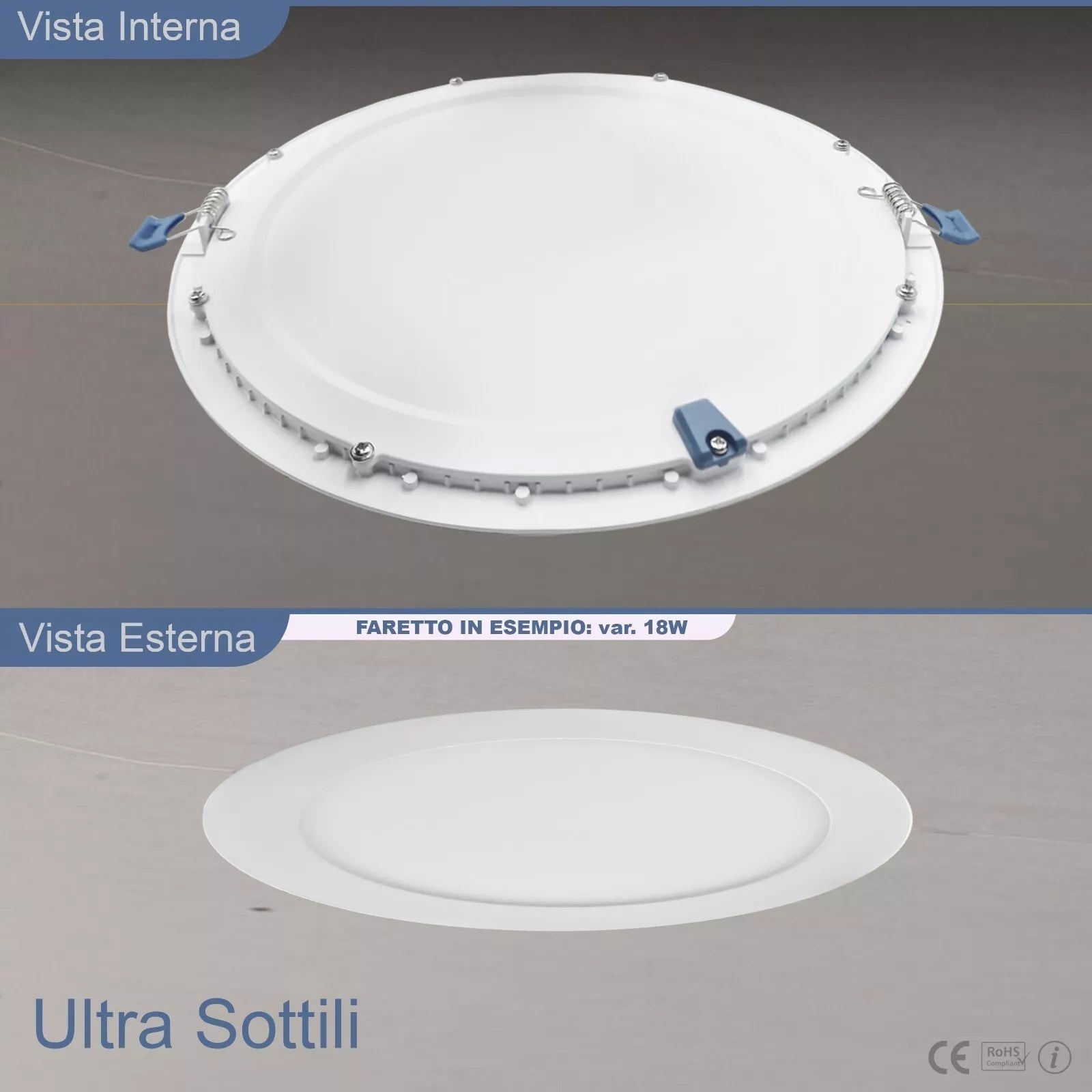 - Scocca in alluminio+PC certificata CE & RoHS, protezione IP20 e driver protetto per un funzionamento sicuro in ambienti interni professionali.