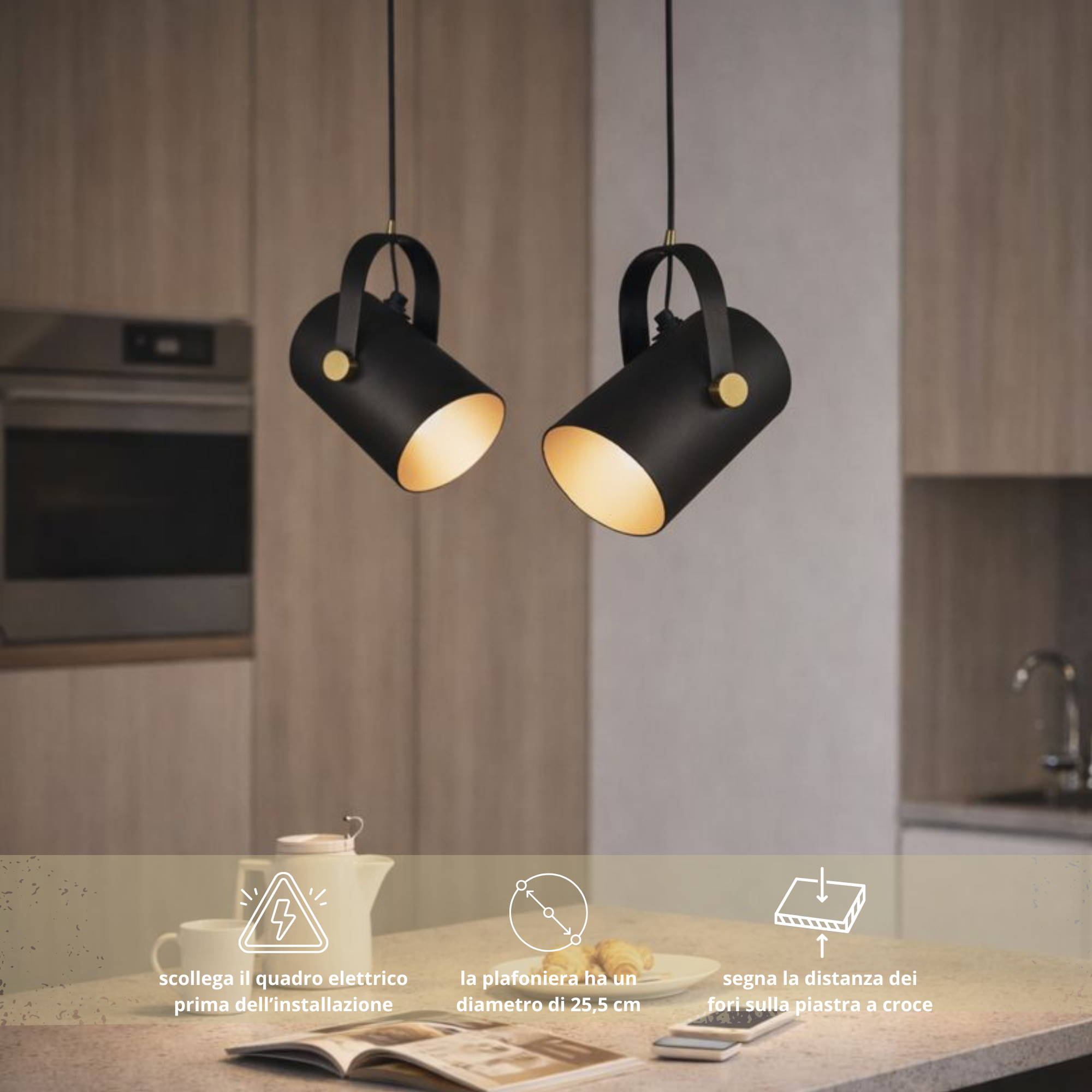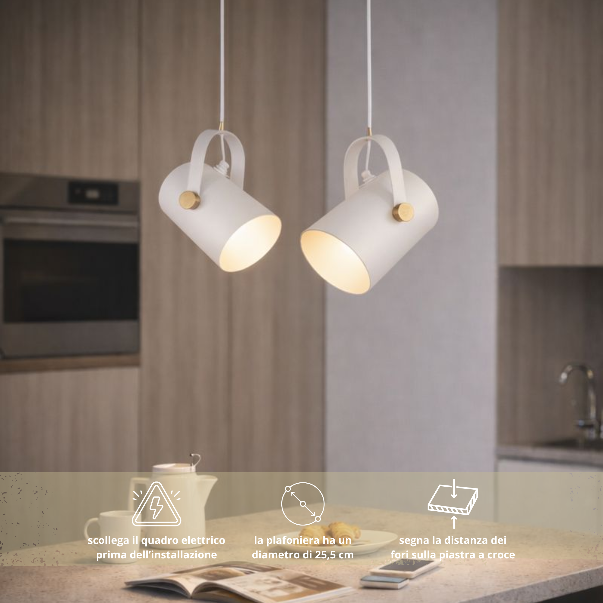 -Installazione semplice e regolabile: il cavo incluso consente di adattare facilmente l’altezza fino a 100 cm per un risultato su misura.