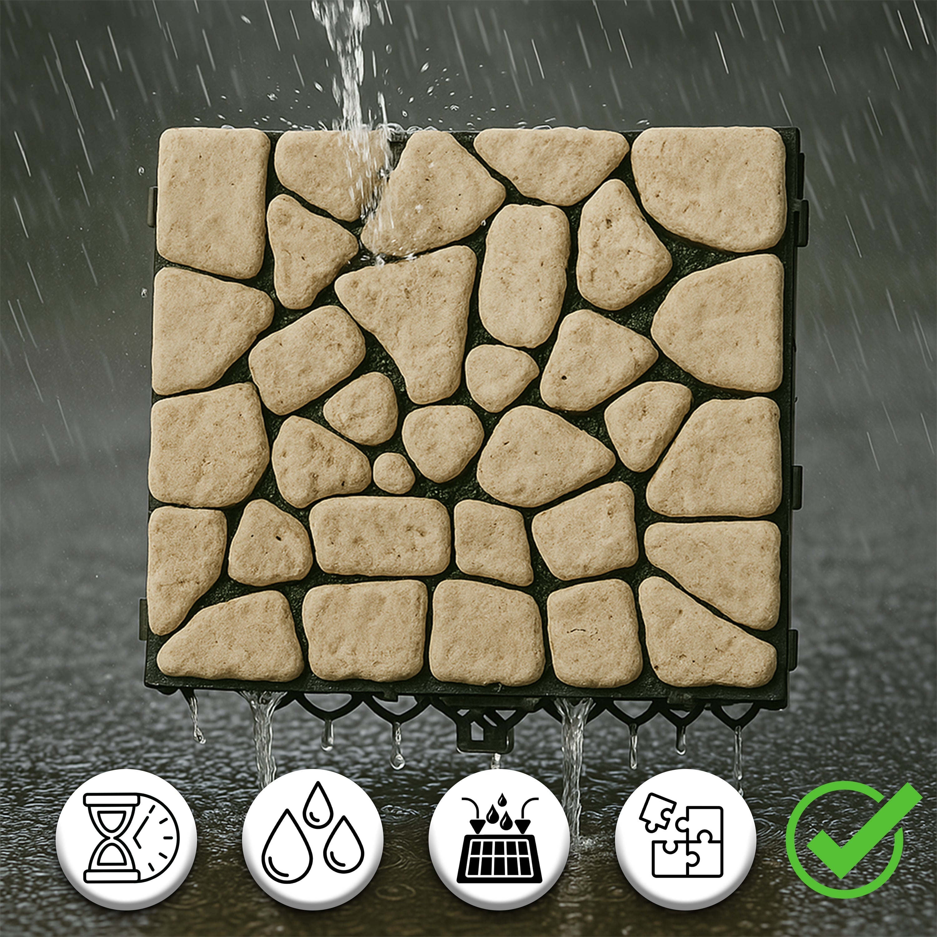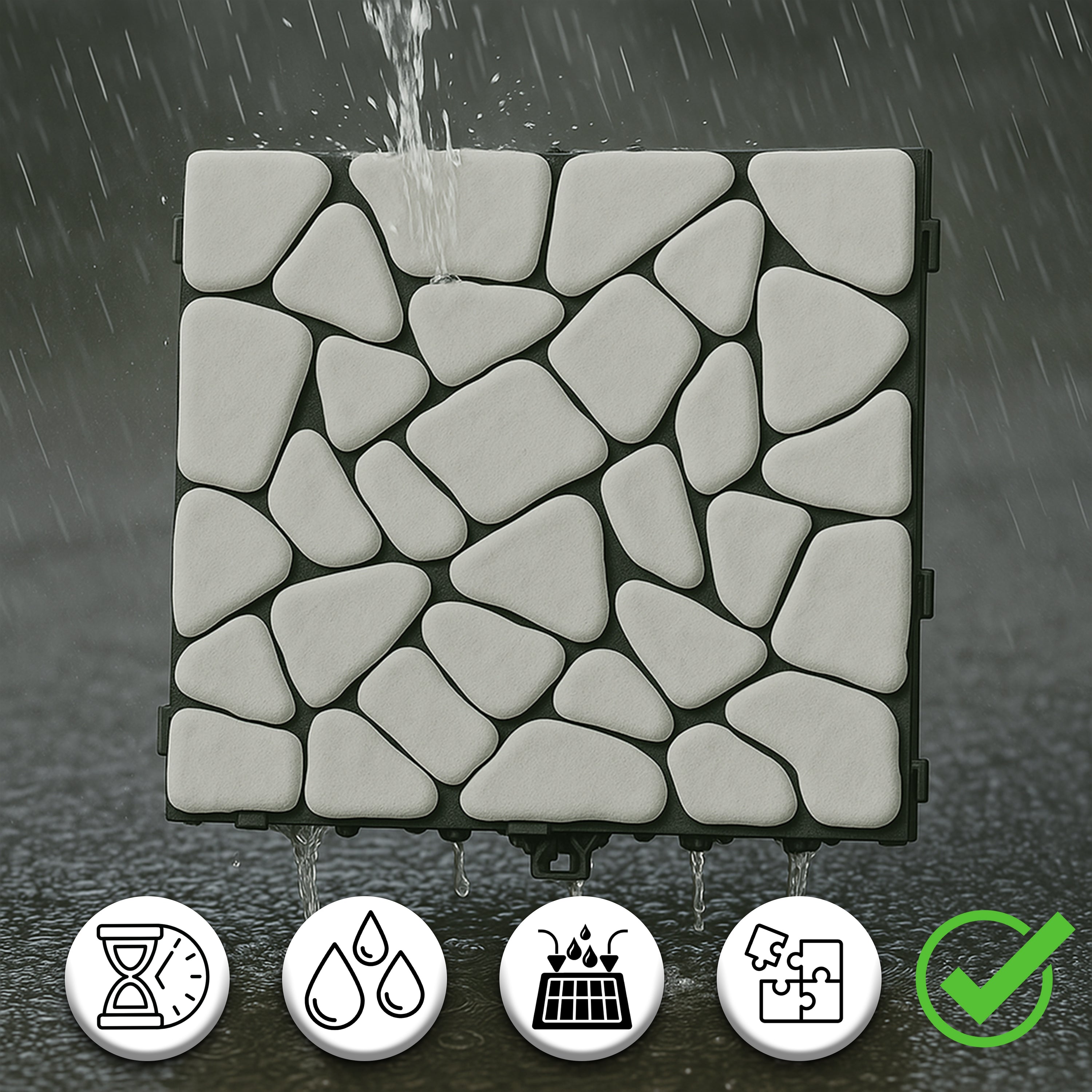 Forma: Piastrelle quadrate da 30x30 cm con design a incastro tipo puzzle per facilità d'installazione.