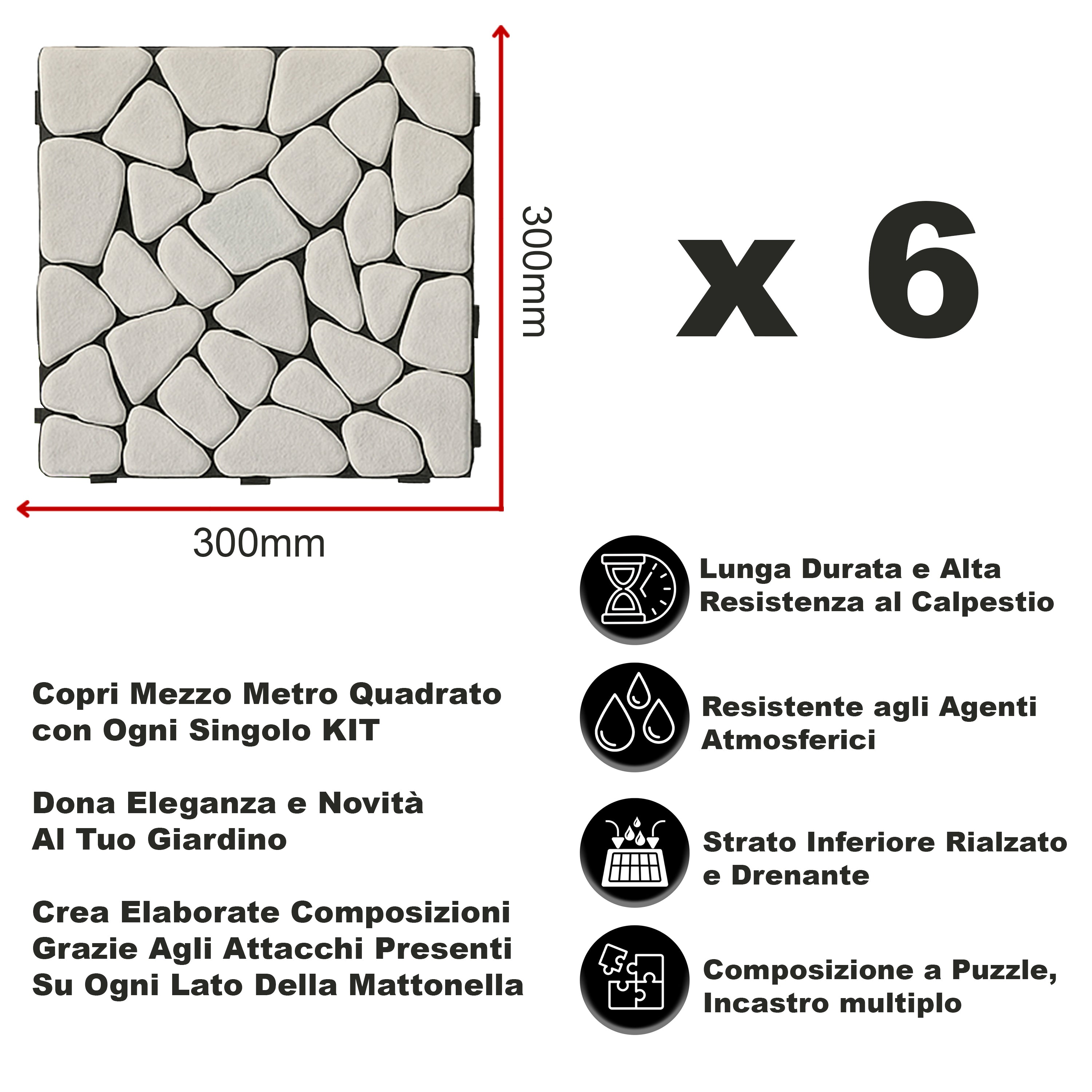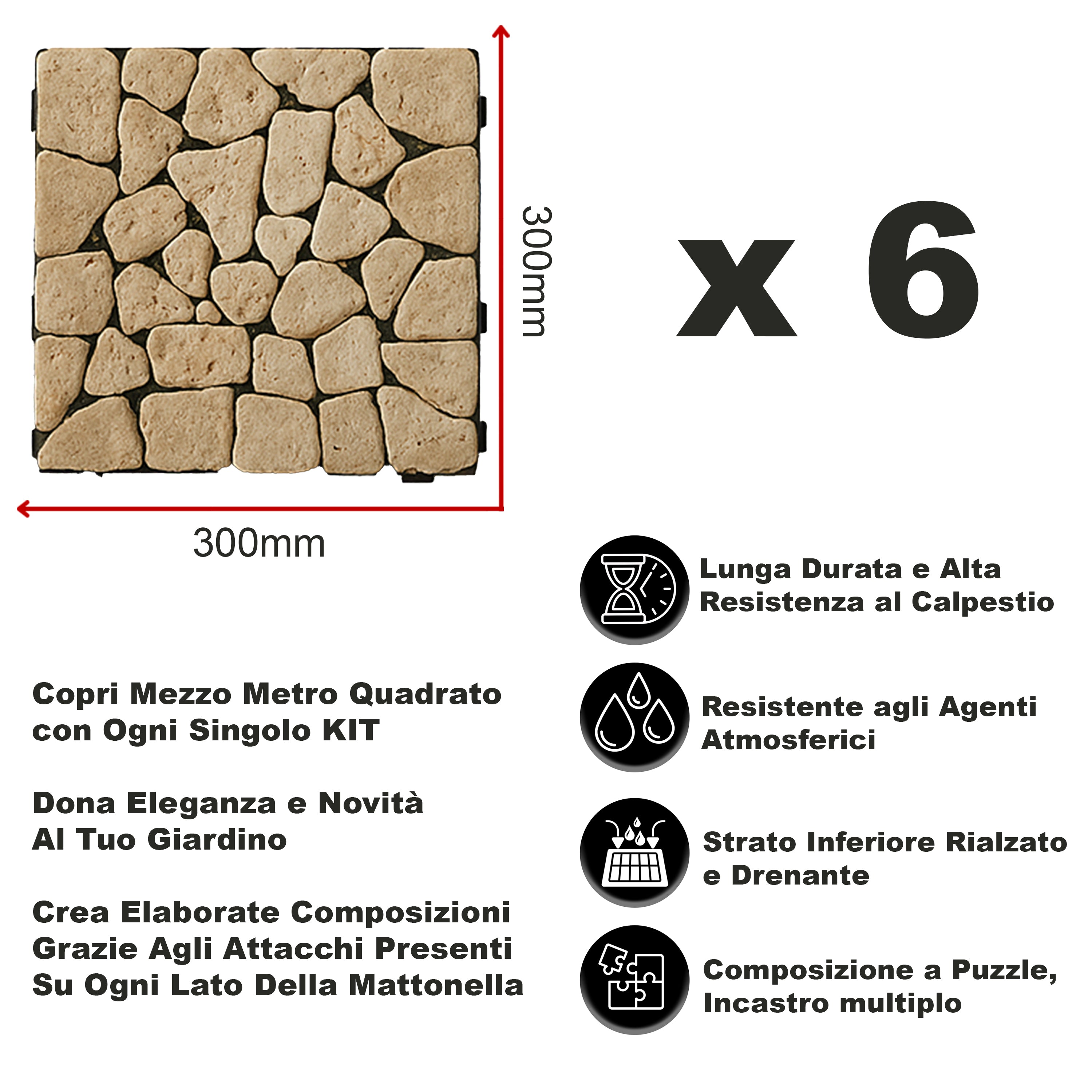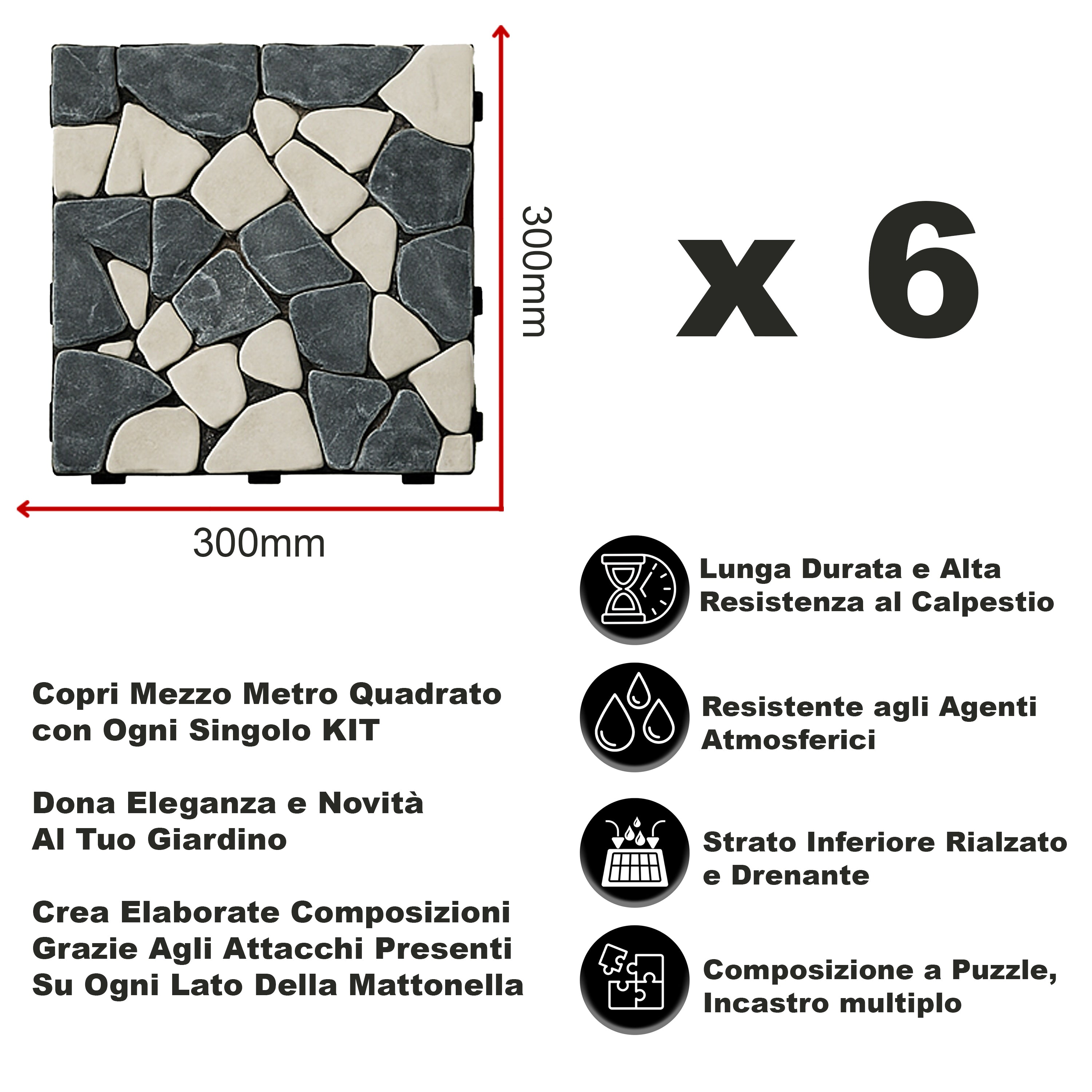 MAKA mattonella piastrella pietra effetto mosaico incastro Kit 6 pezzi puzzle 0,5 m2