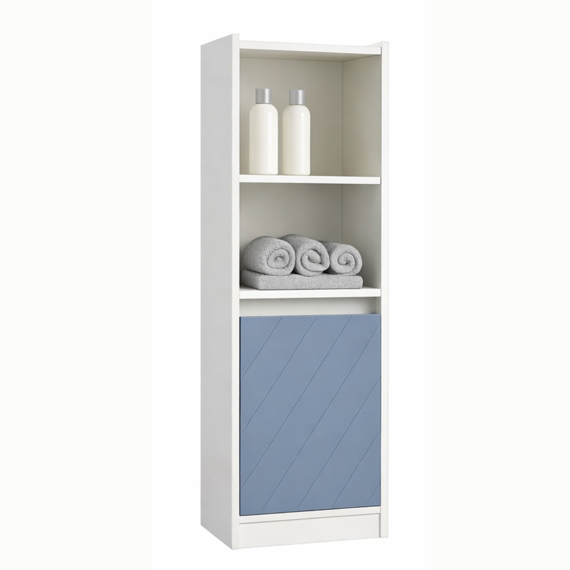 Mobiletto Bagno Salvaspazio con Ripiani e Anta Bianco Azzurro