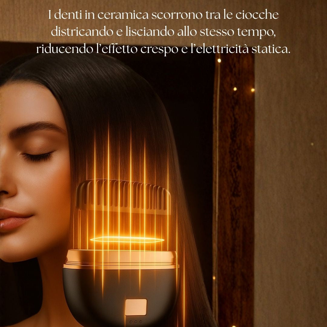 Capelli ordinati e senza crespo: i denti in ceramica riducono l’elettricità statica e scorrono facilmente tra le ciocche per un effetto setoso.