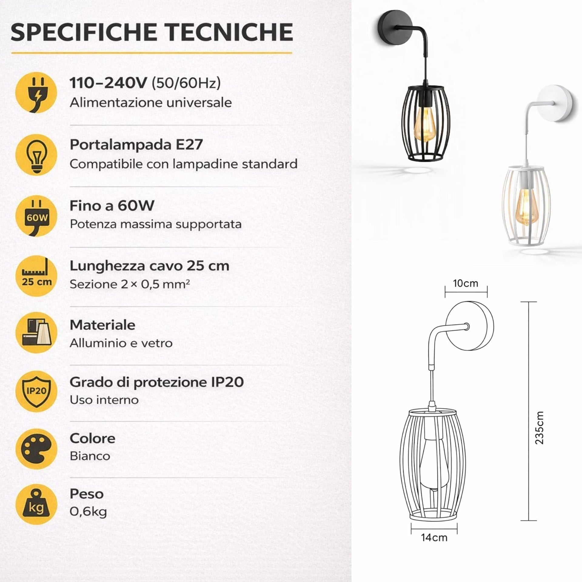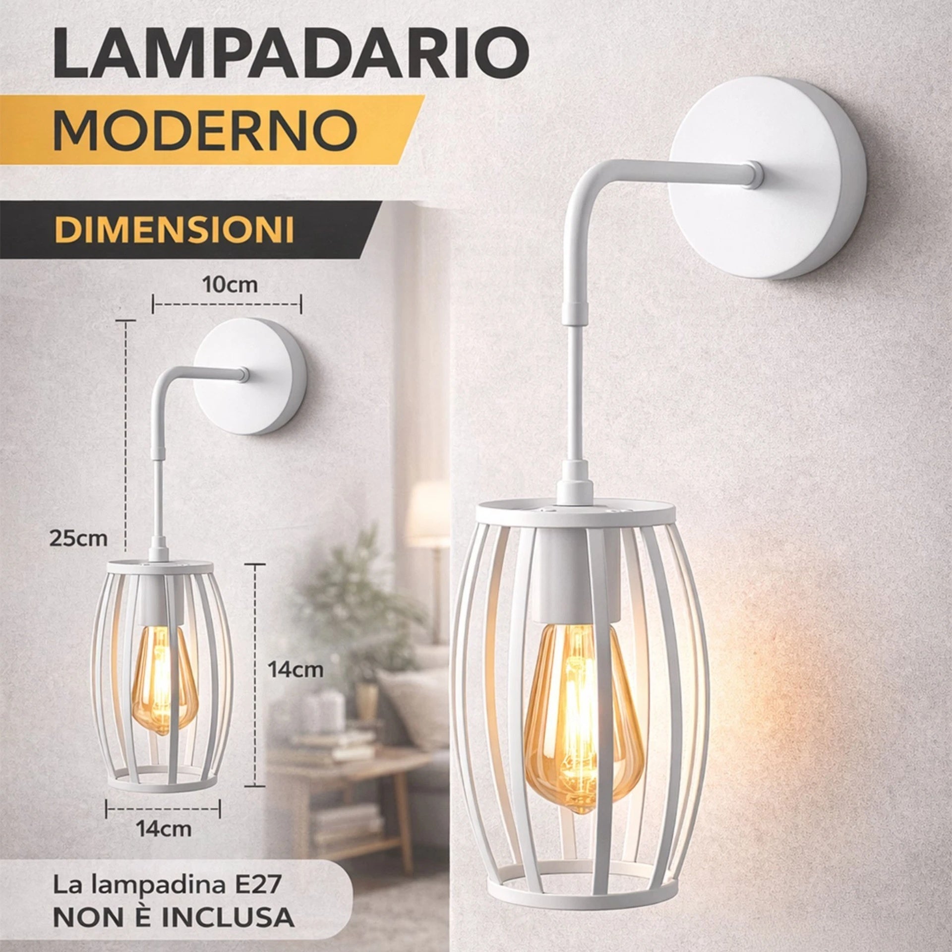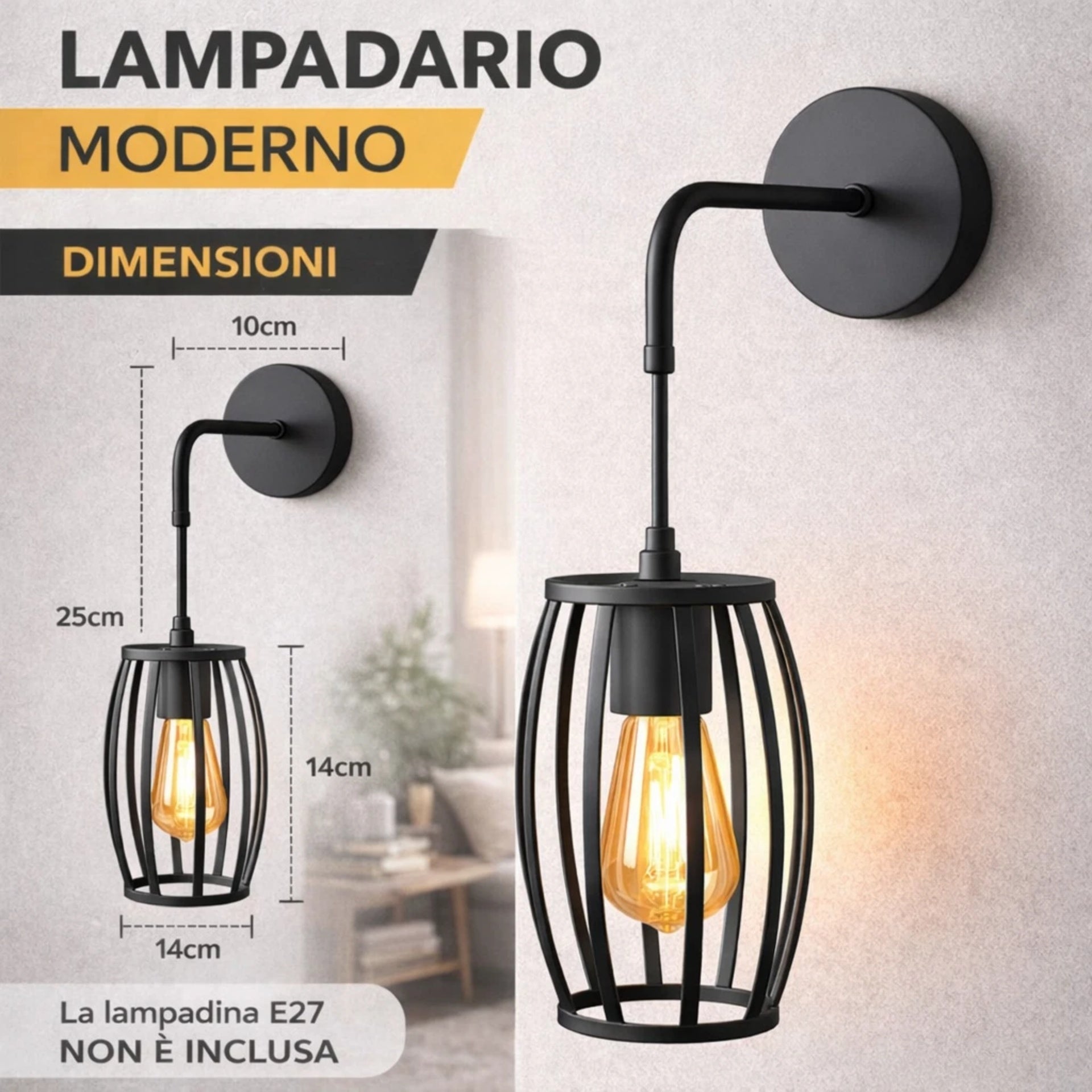 Illuminazione personalizzabile per ogni ambiente: il portalampada E27 consente di scegliere la lampadina più adatta allo stile e all’intensità luminosa desiderata, creando atmosfere moderne o industriali su misura.