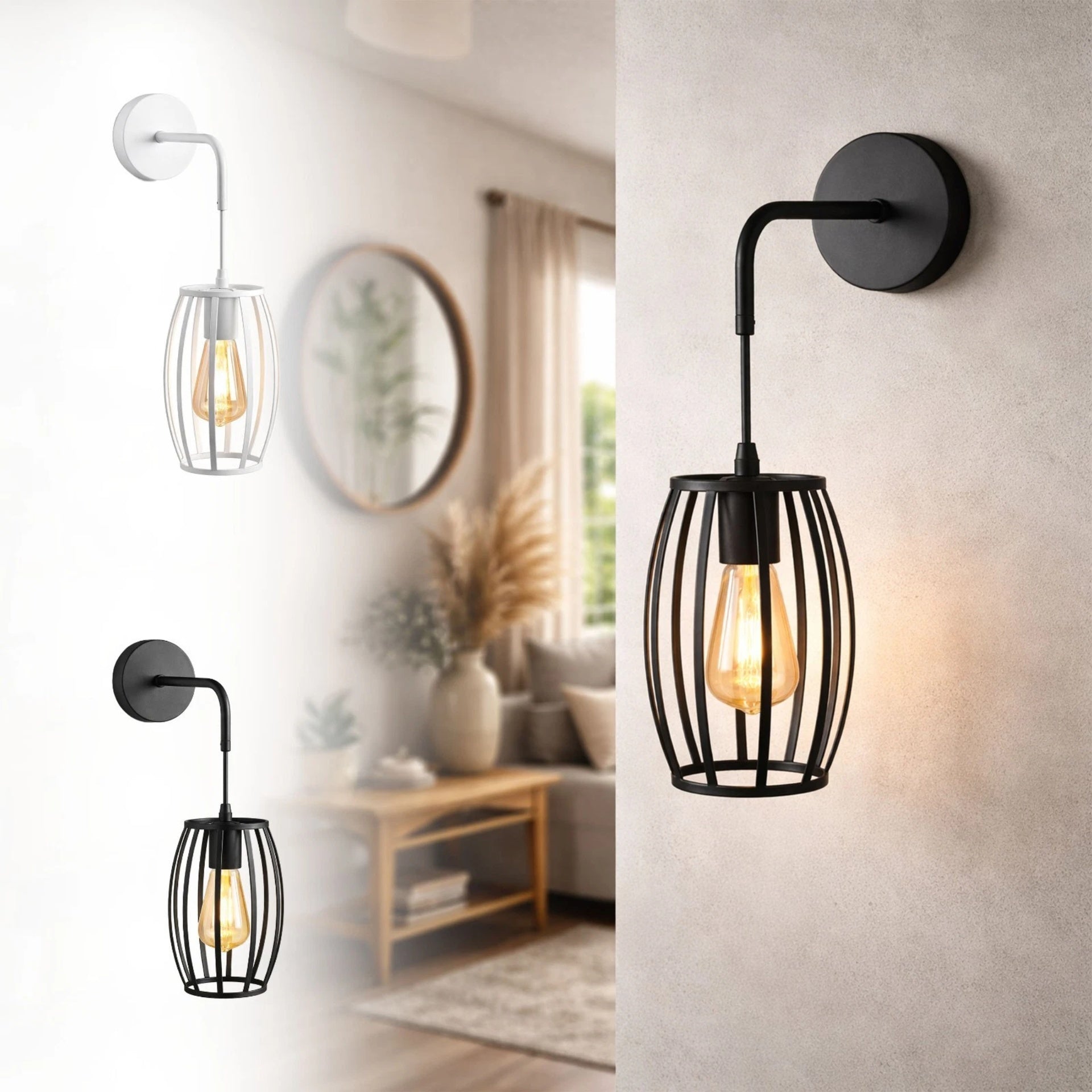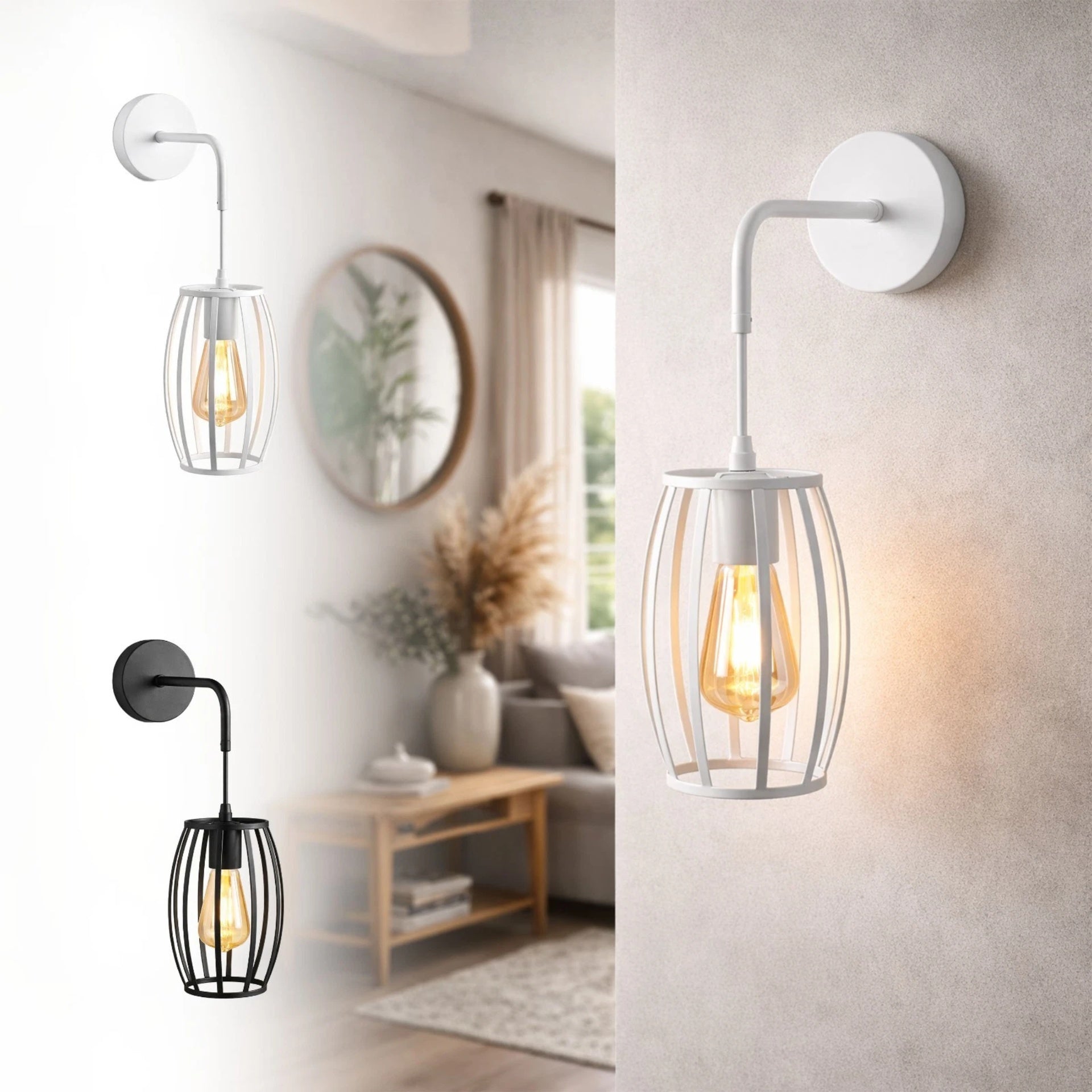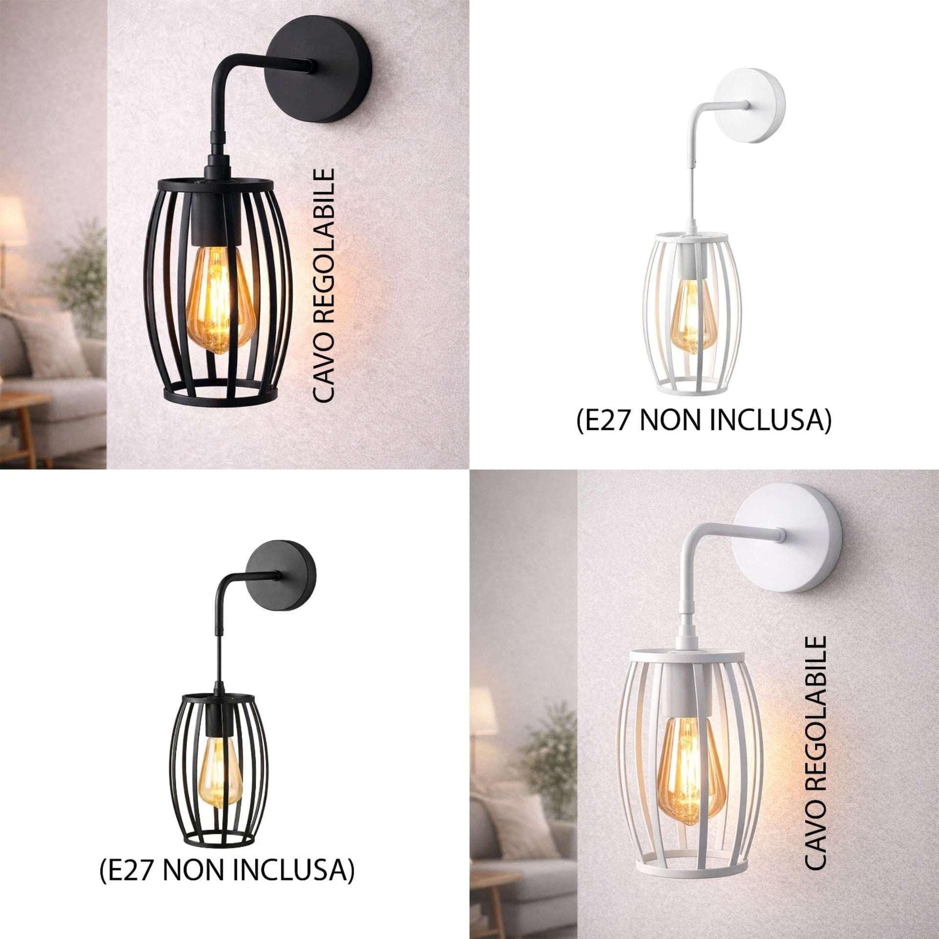 Applique da Parete E27 Industriale Interni Bianco o Nero