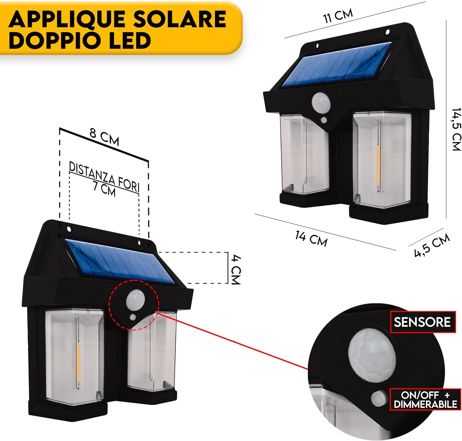 SET 2 lampada Solare LED da Esterno con 2 Luci