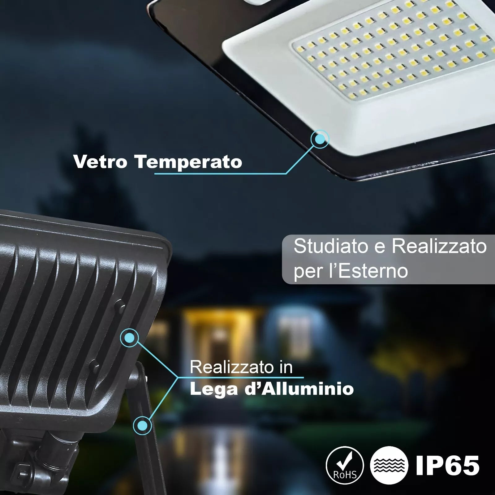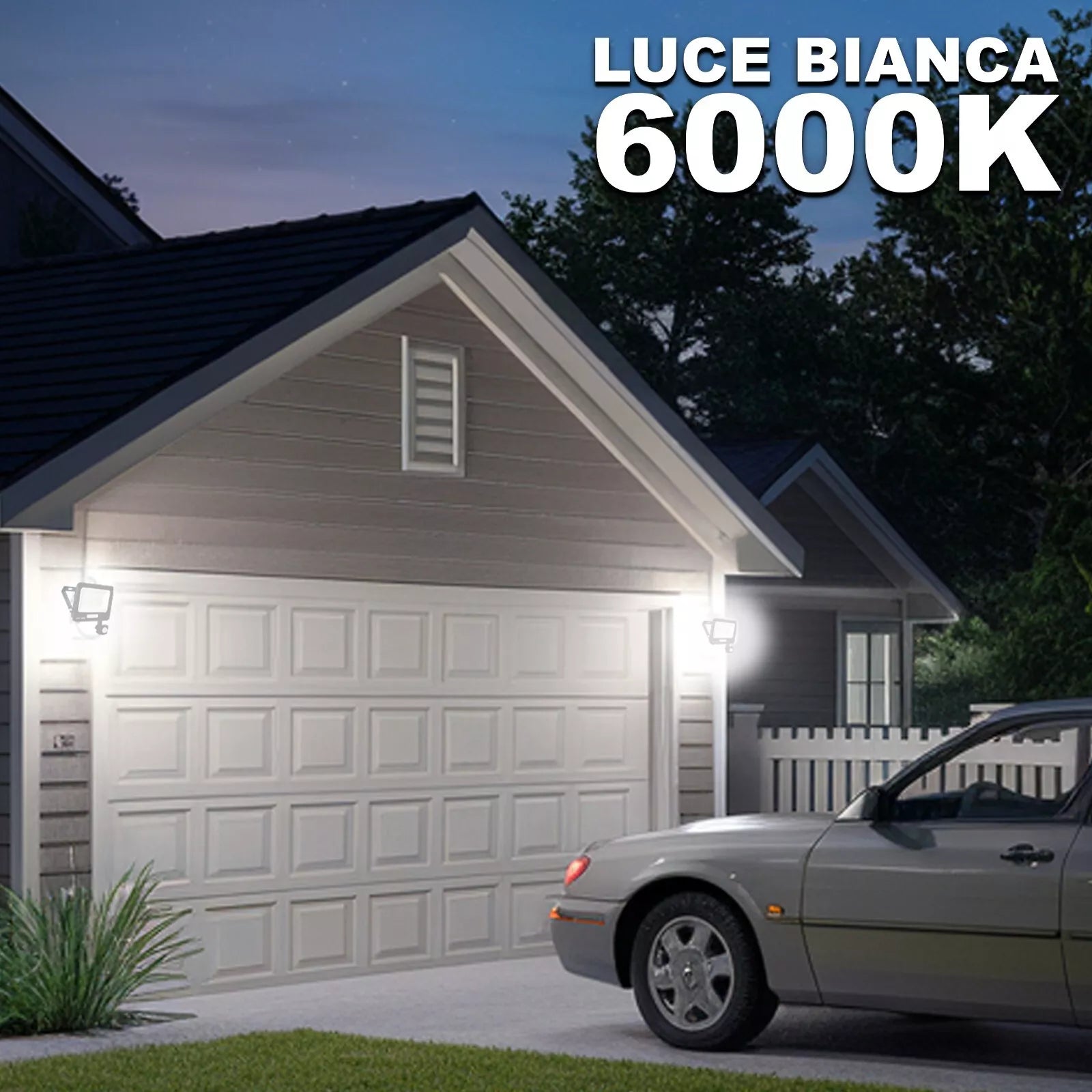 ILLUMINAZIONE POTENTE: Faro LED da 30W o 50W con luce bianca 6000K per un'illuminazione intensa e uniforme, perfetta per giardini, garage e ingressi.