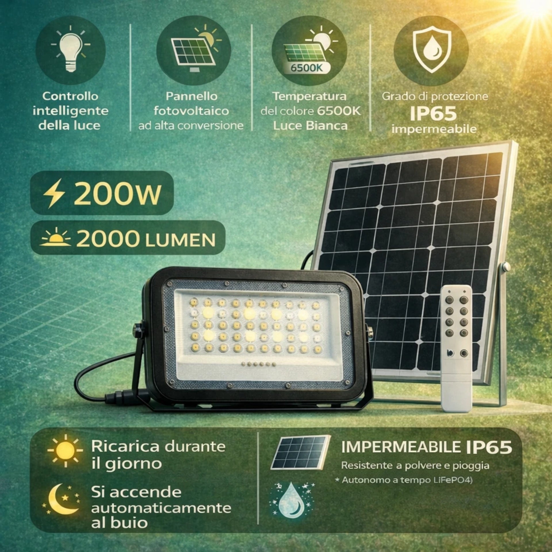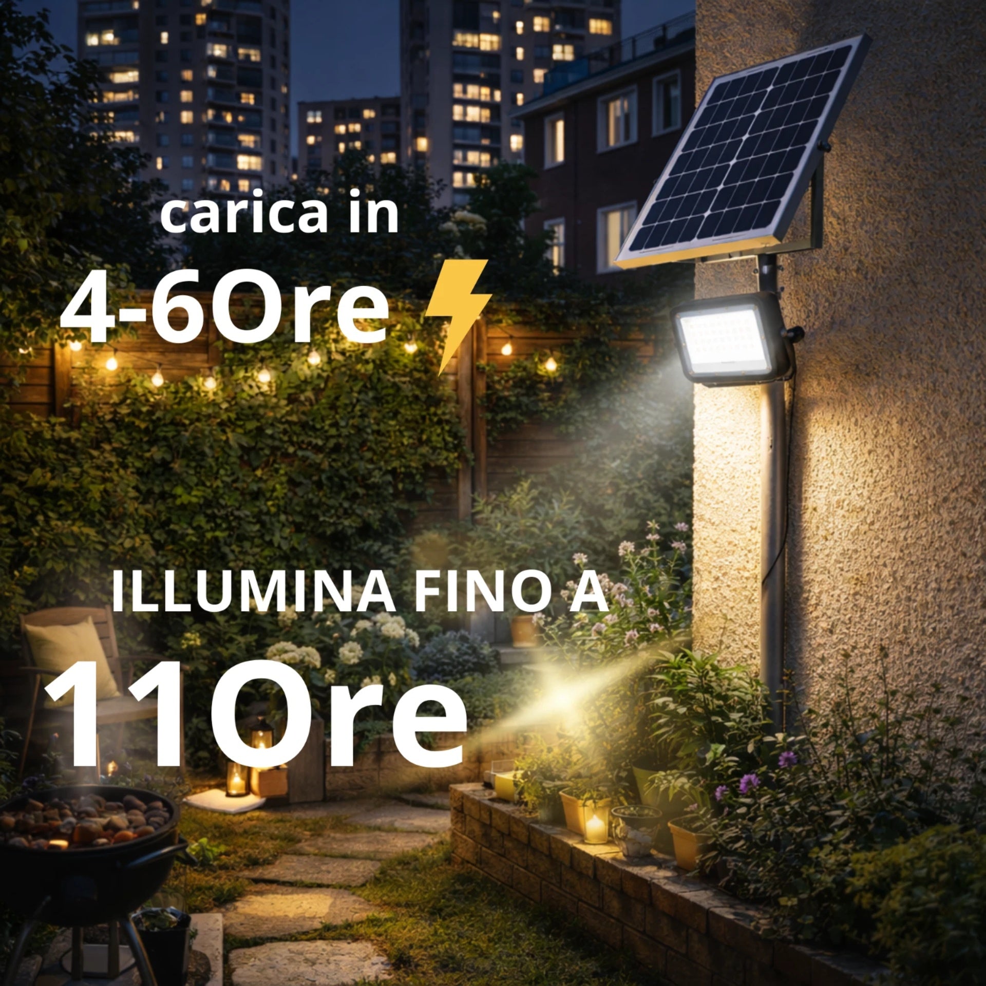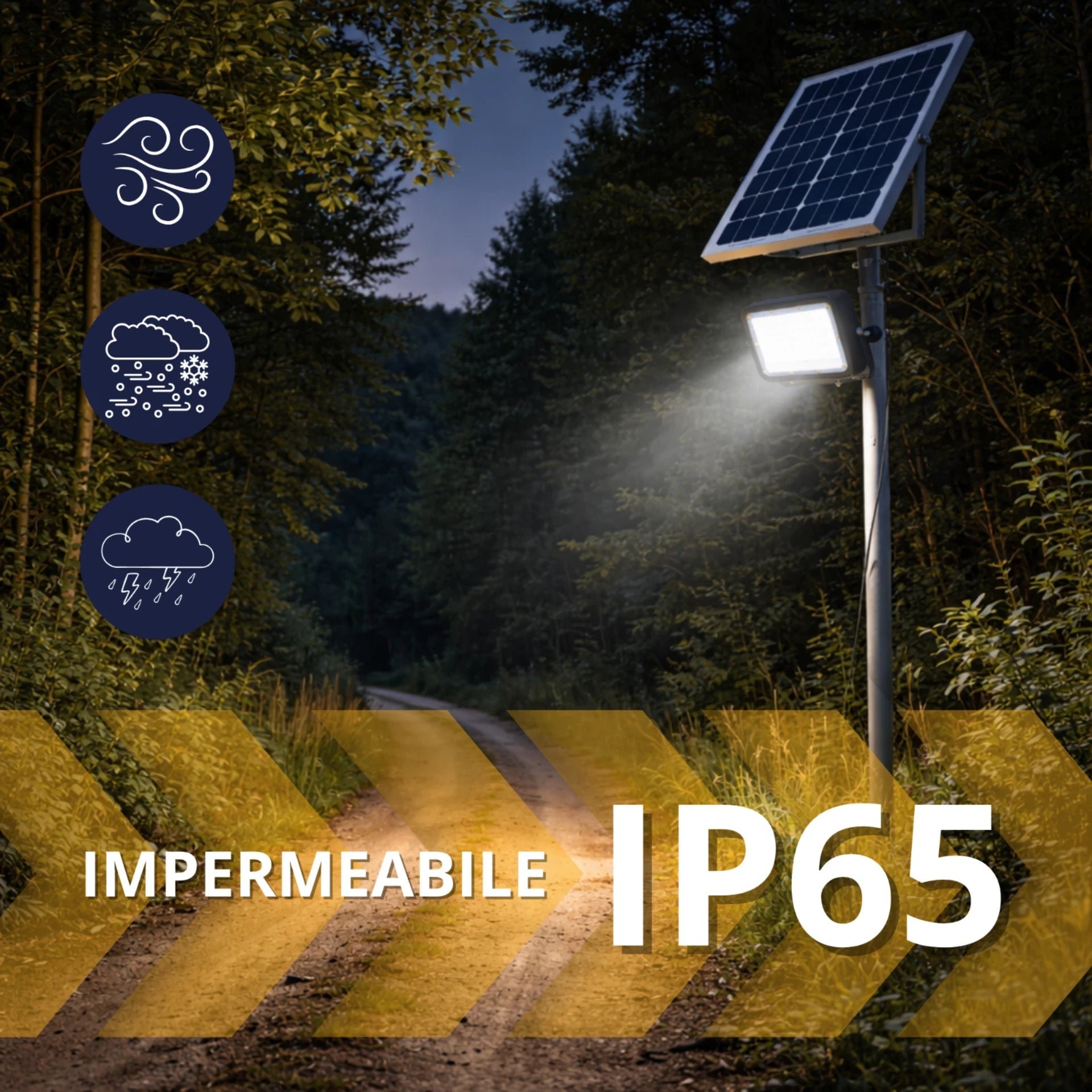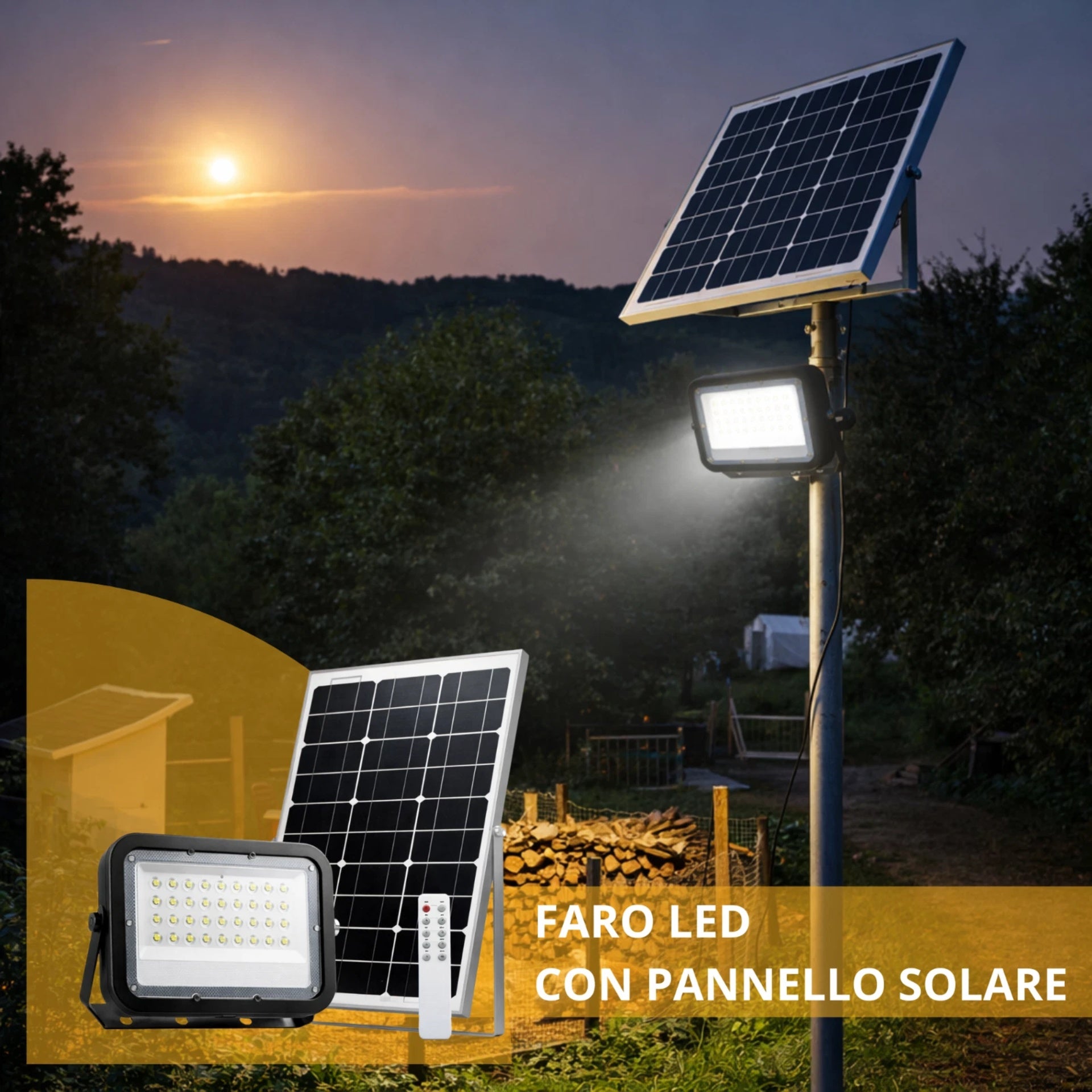 Faro LED Solare Esterno IP65 con Pannello 50W 200W 300W