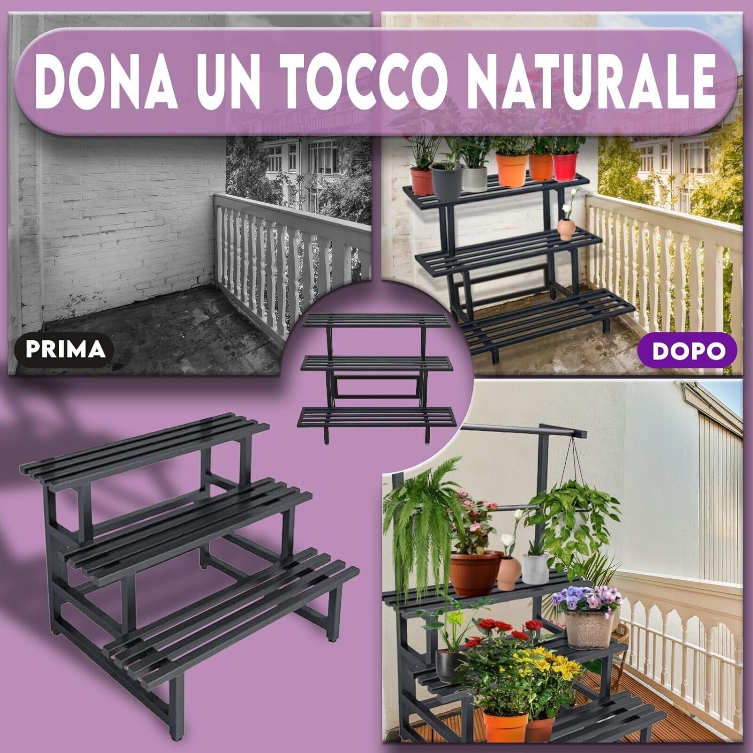Fioriera Alta da Esterno in Ferro - 2 Ripiani e Ganci (80cm)