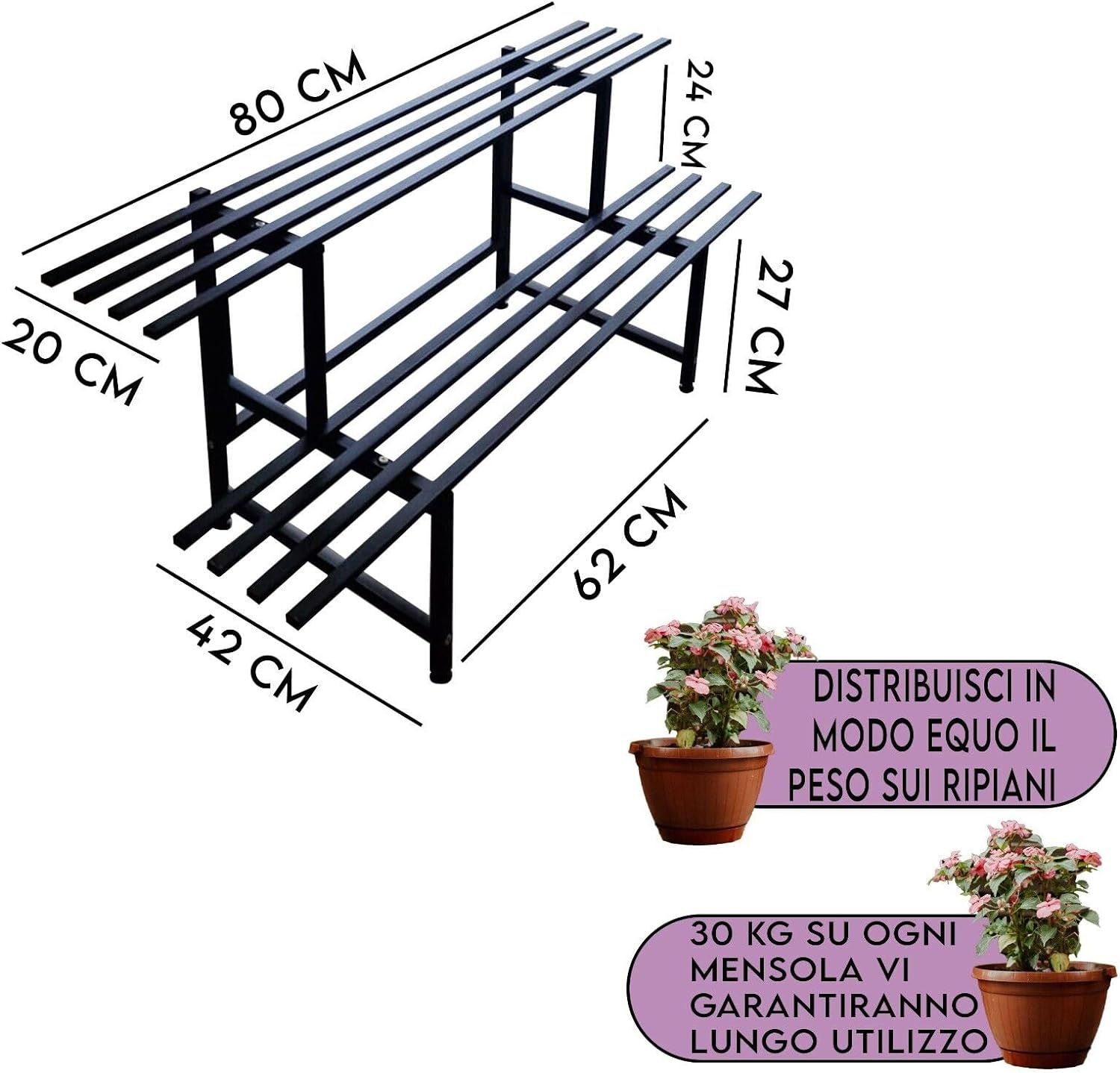 Fioriera da Esterno in Ferro - 2 Ripiani (120cm)