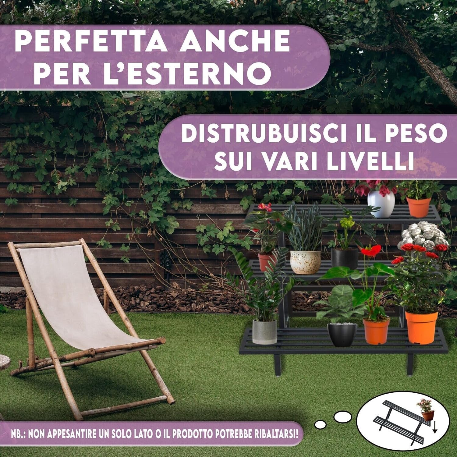 Il design con grigliato non solo aggiunge un tocco estetico, ma fornisce anche un supporto ideale per piante e decorazioni.