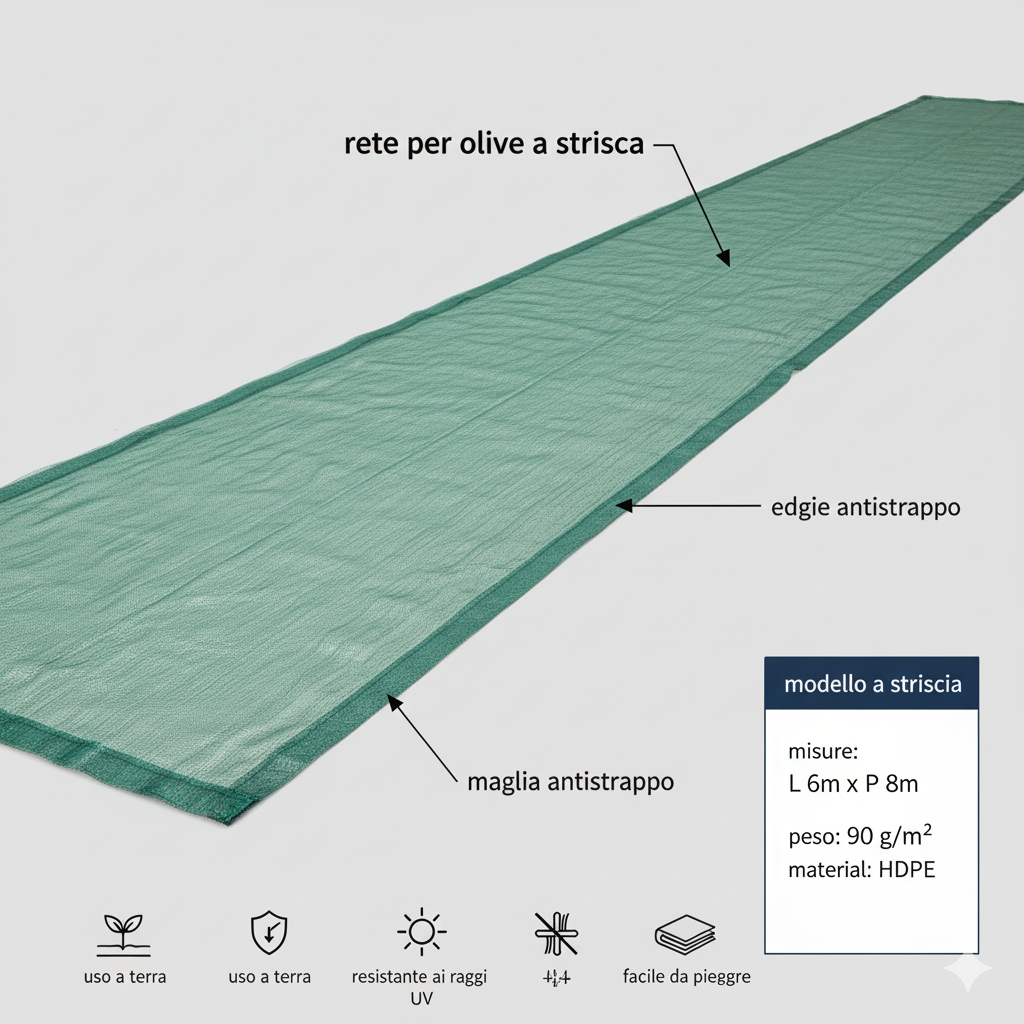 - COPERTURA SU MISURA: Disponibili in diverse dimensioni, per coprire ogni tipo di uliveto, da piccoli a grandi.