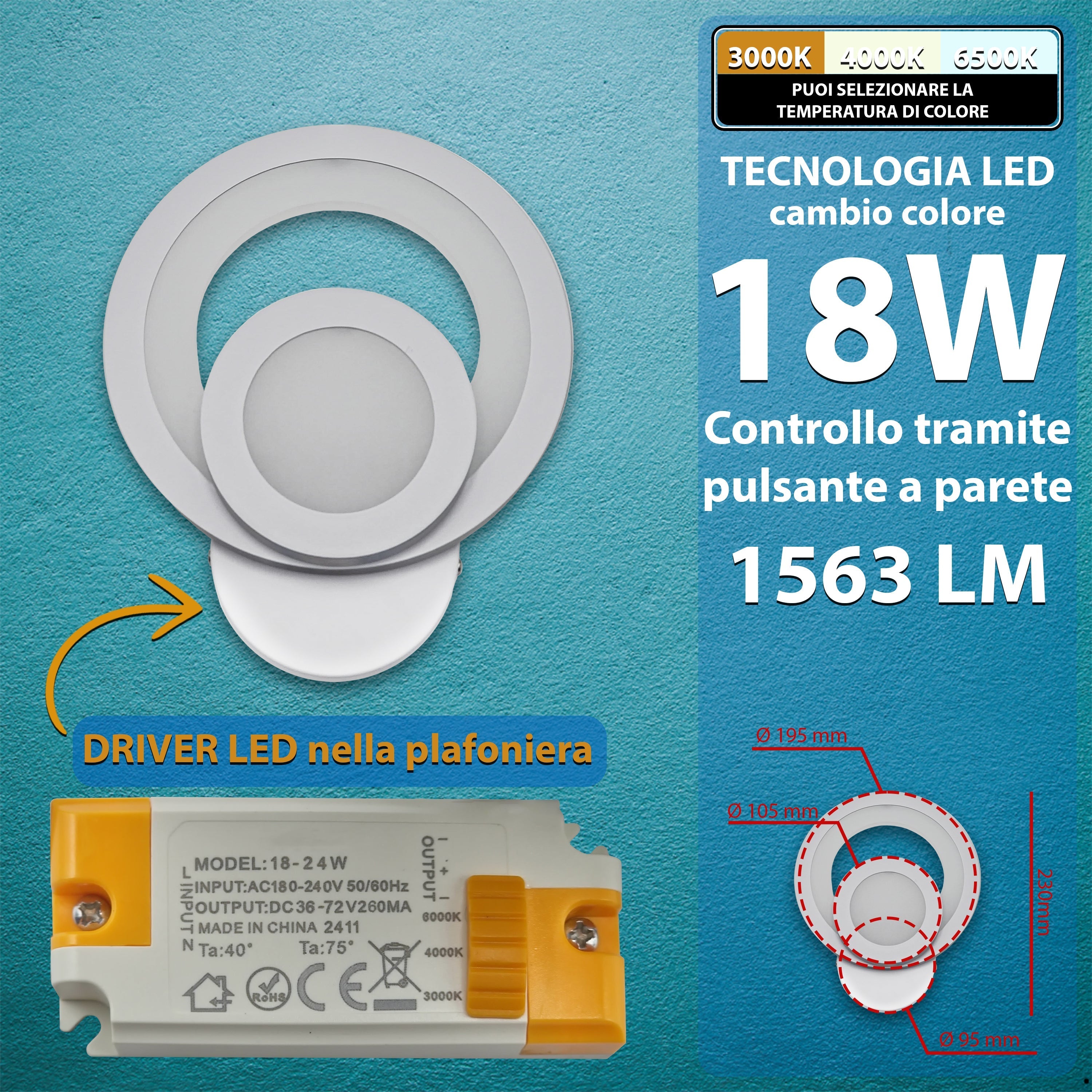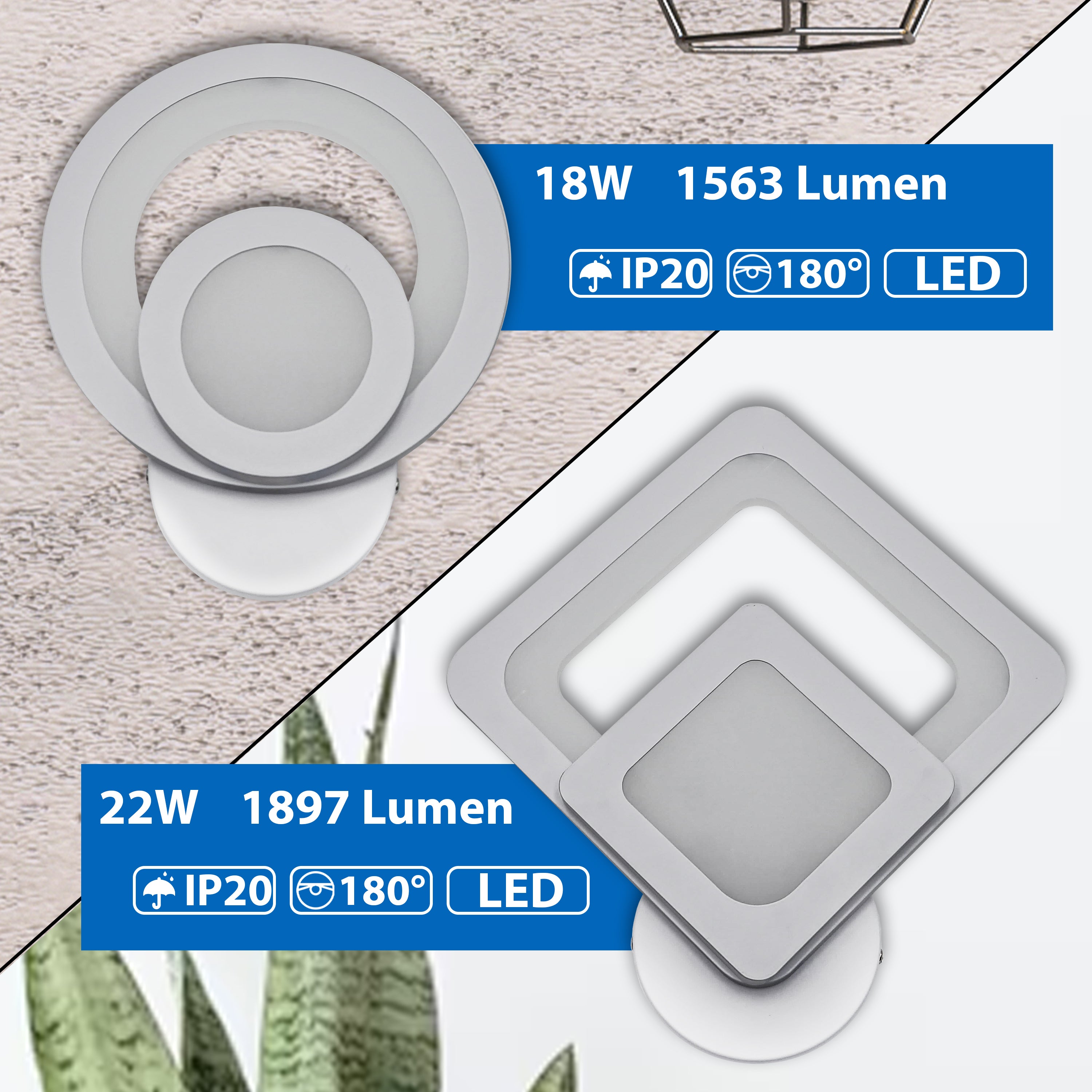 - ILLUMINAZIONE POTENTE: Grazie alla tecnologia LED avanzata, questa applique da parete offre un'elevata luminosità con opzioni da 18W (1563 lumen) e 22W (1897 lumen), garantendo un'illuminazione intensa e uniforme per ogni ambiente.