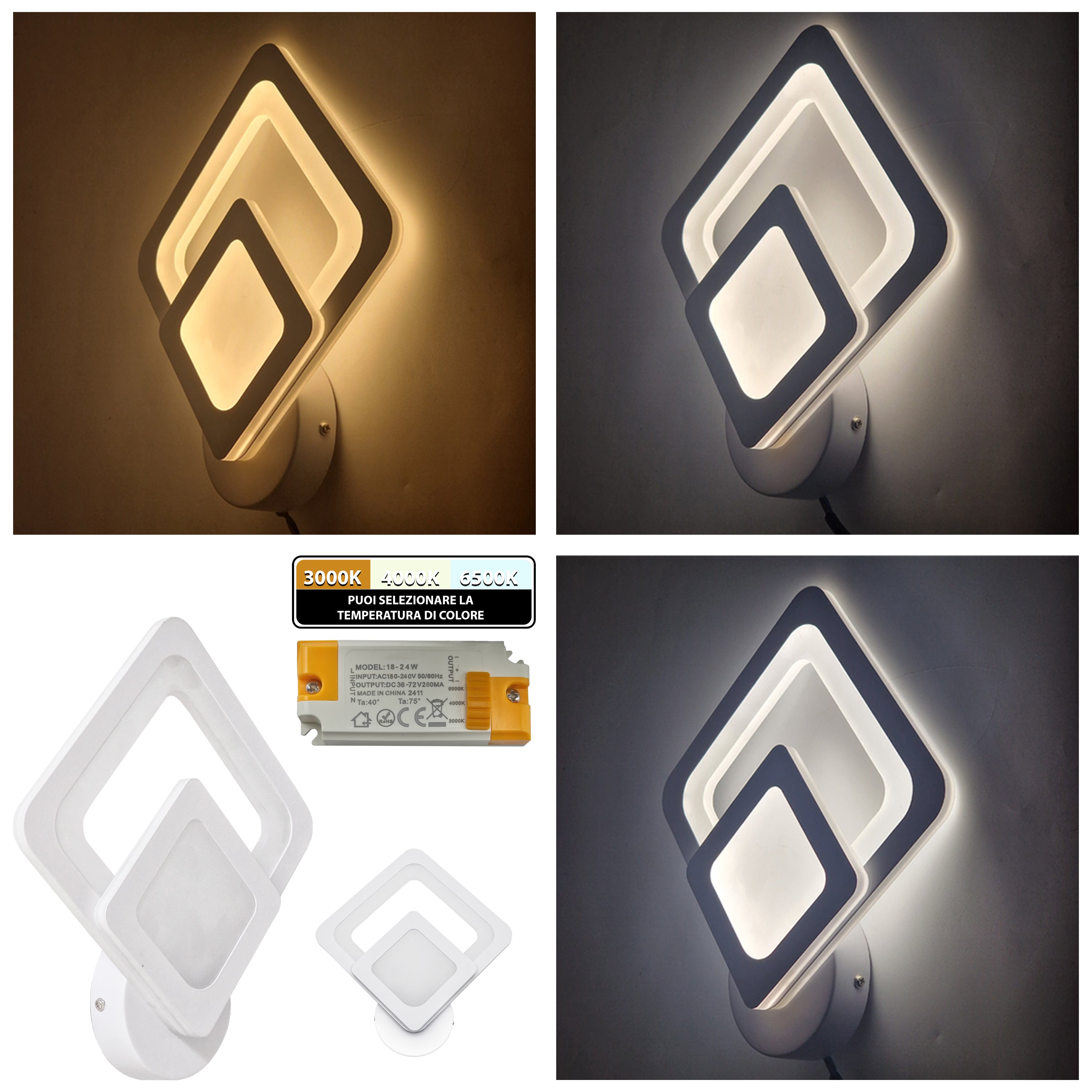 Applique LED da Parete Interno con Cambio Temperatura, 18W/22W