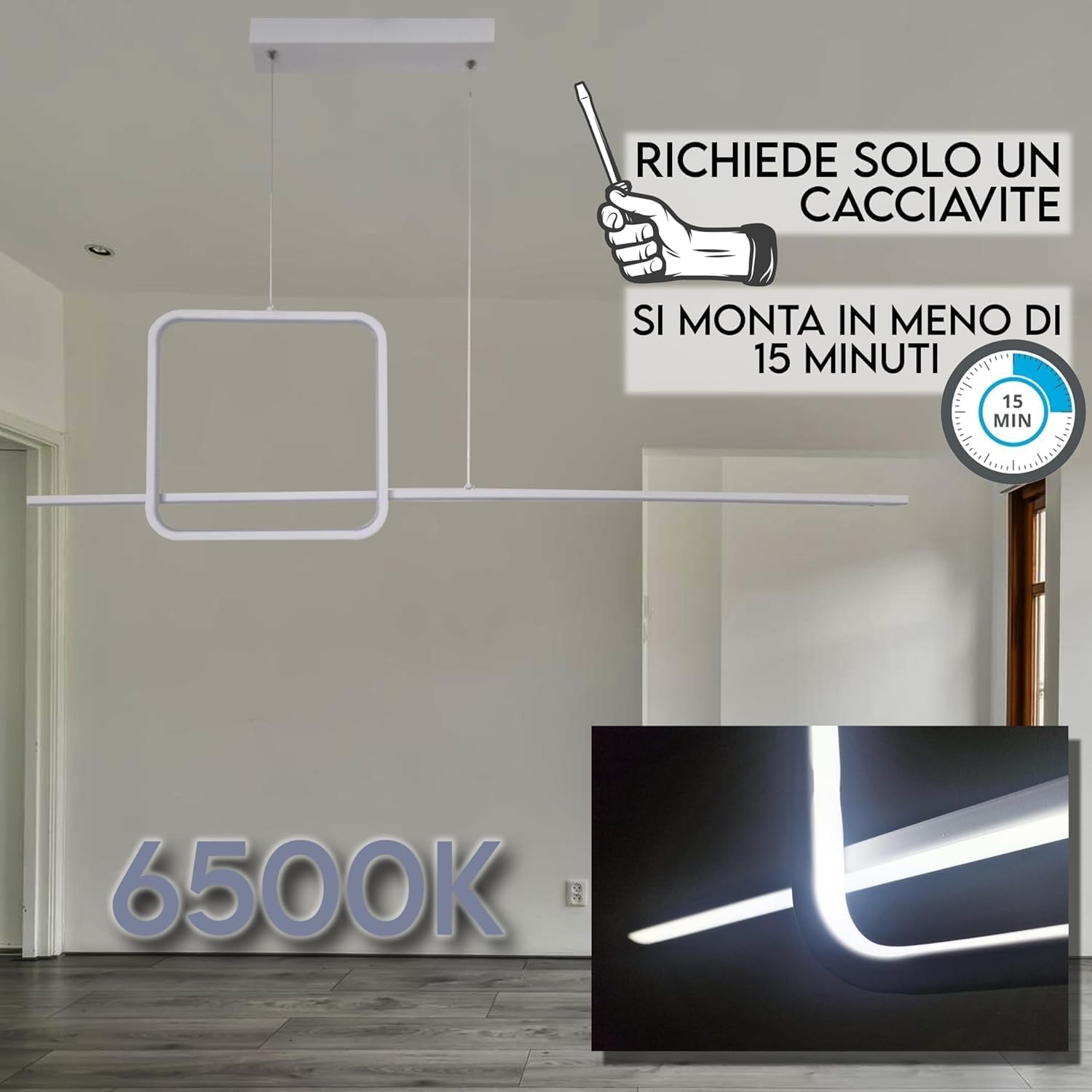 Illumina la tua casa o il tuo spazio commerciale con stile e efficienza grazie al nostro lampadario LED moderno a 220V. Con la sua facile installazione, è la soluzione ideale per una varietà di ambienti, tra cui cucina, camera da letto, soggiorno, ufficio e negozio. Questo lampadario LED è caratterizzato da un design moderno ed elegante, ideale per aggiungere un tocco di stile a qualsiasi ambiente. La sua forma pulita e minimalista si adatta perfettamente a una vasta gamma di decorazioni d'interni, dalla più tradizionale alla più contemporanea.