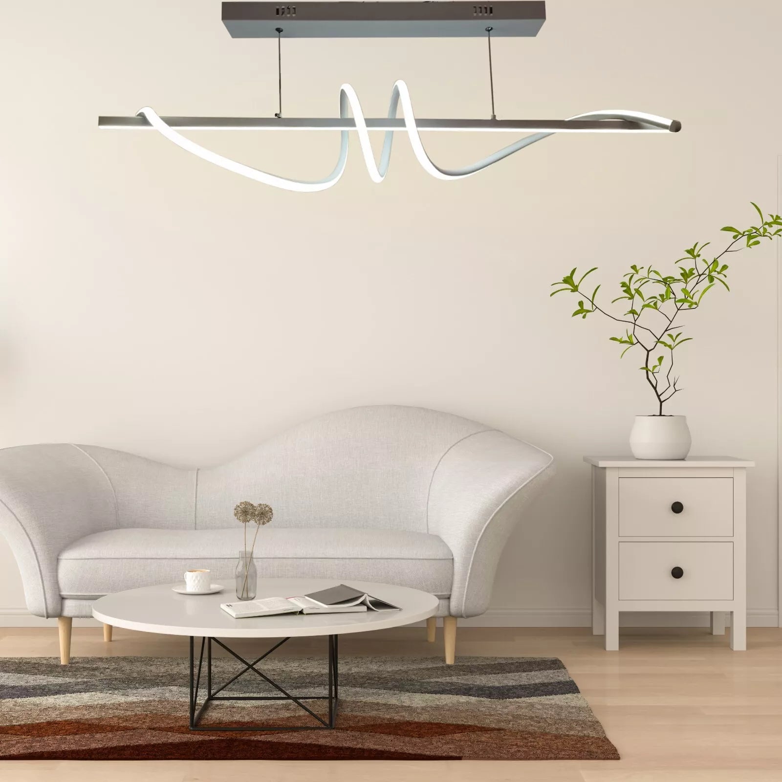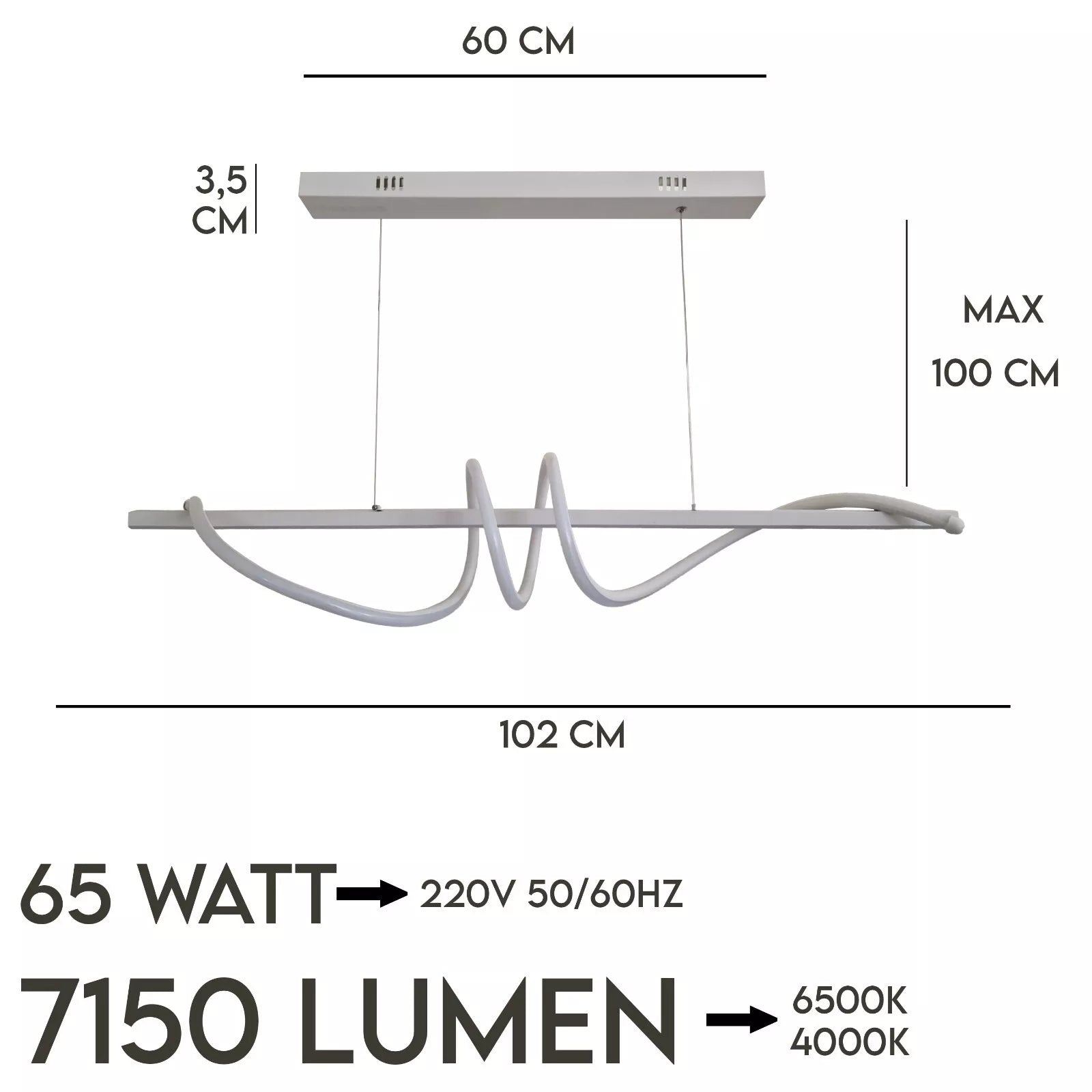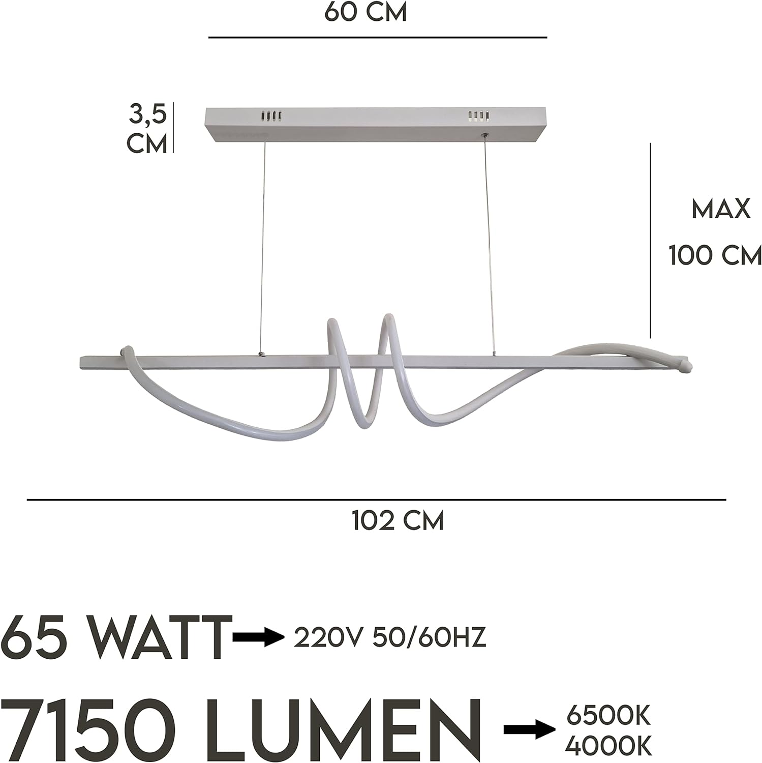 Questo lampadario a sospensione LED da 65W offre un'illuminazione potente con 7150 lumen, perfetta per illuminare ampi spazi fino a 30 mq. Il suo design minimale, semplice ed elegante, presenta una struttura in metallo e vetro temperato con dimensioni di 102x3,5x60 cm, rendendolo ideale per camera da letto, soggiorno e cucina. Disponibile nella variante luce fredda a 6500K, per adattarsi a qualsiasi ambiente. Il montaggio è semplice grazie al cavo e gancio inclusi, eliminando la necessità di lavori complessi. La tecnologia LED a basso consumo di 65W, equivalente a oltre 200W delle lampadine tradizionali, garantisce un significativo risparmio energetico e in bolletta.