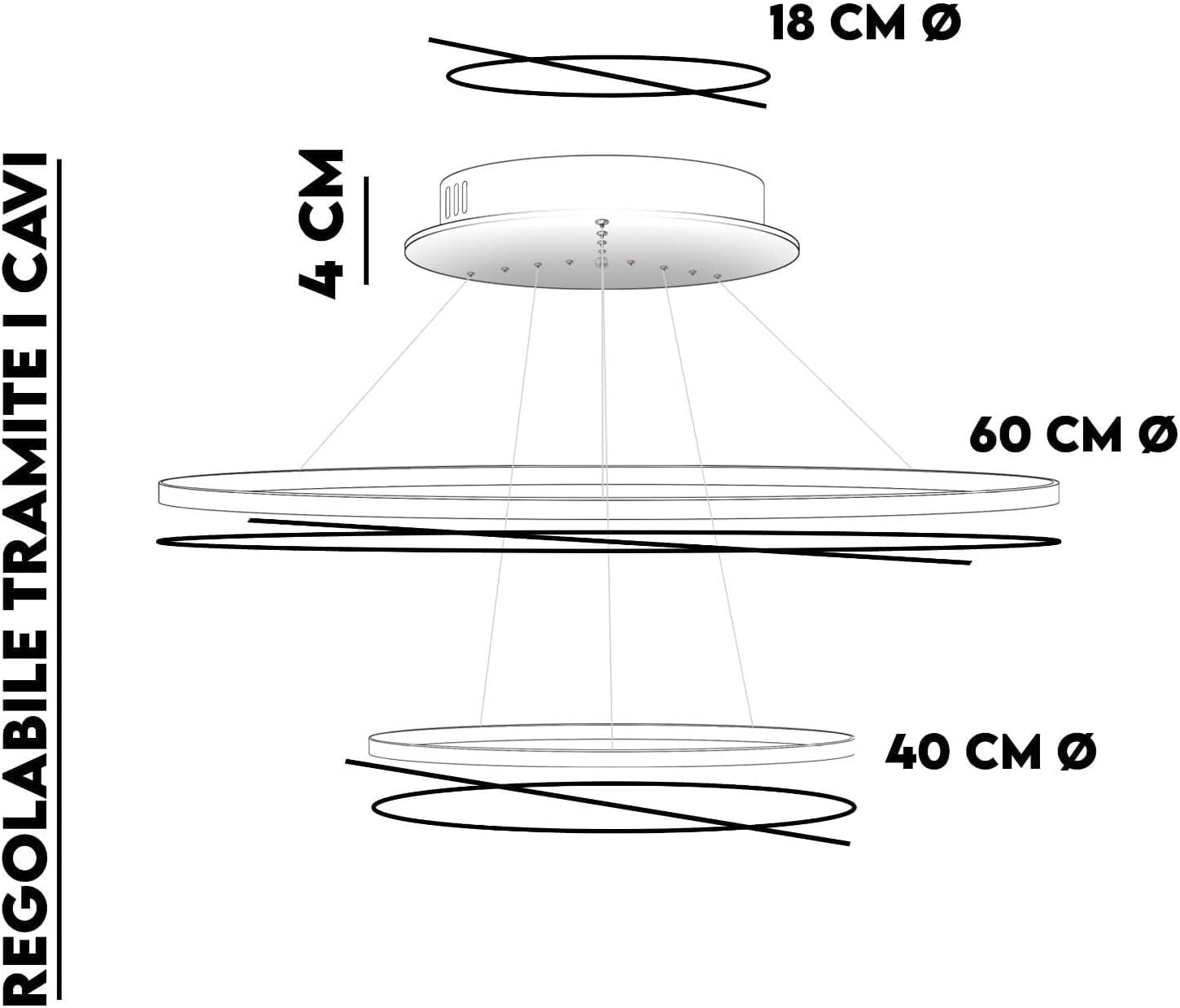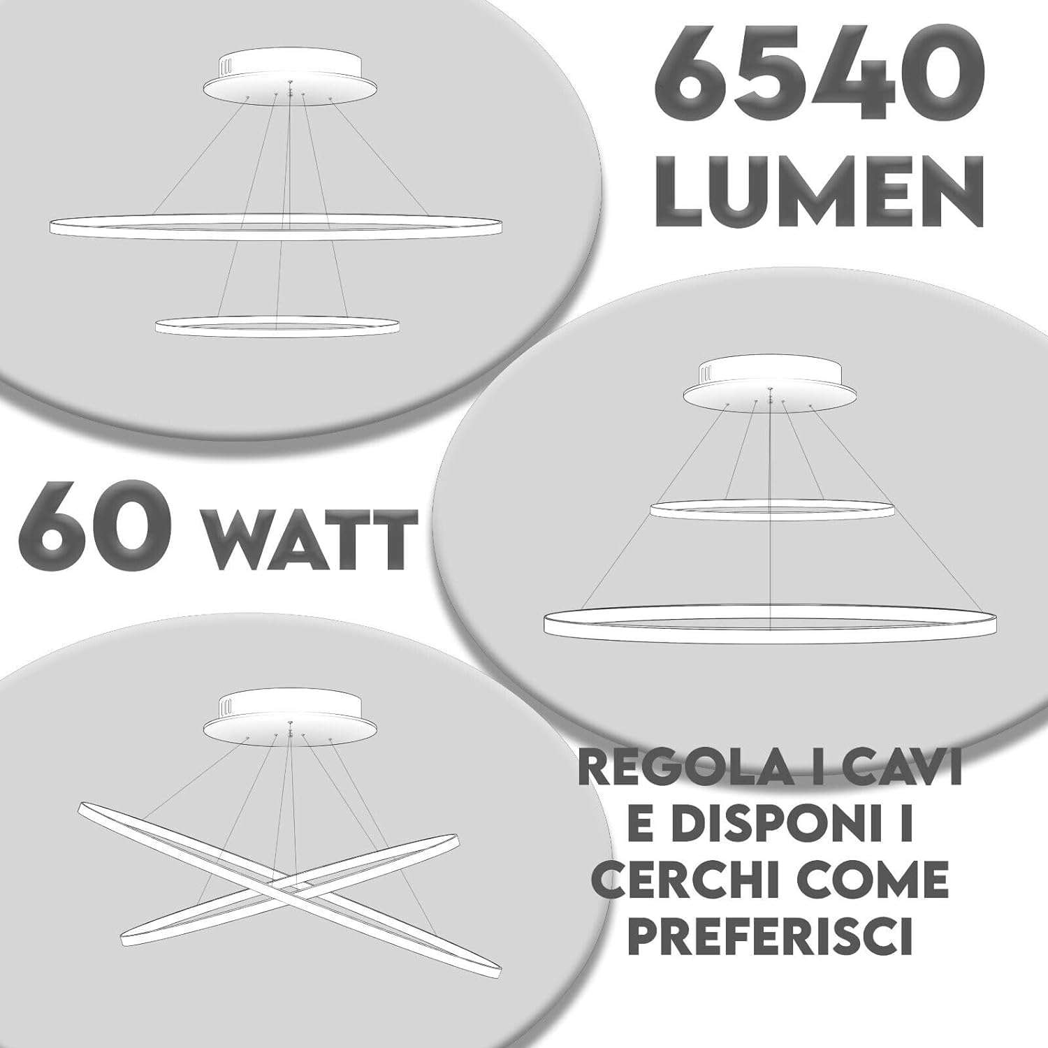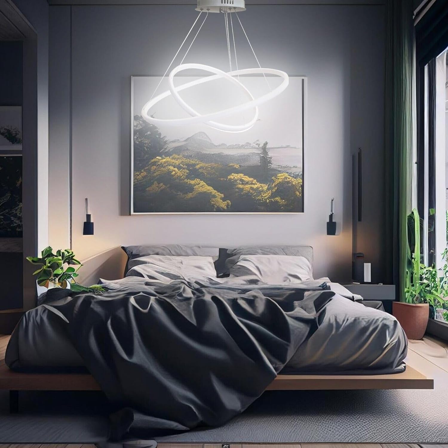 Lampadario LED con 2 Cerchi a Luce Naturale