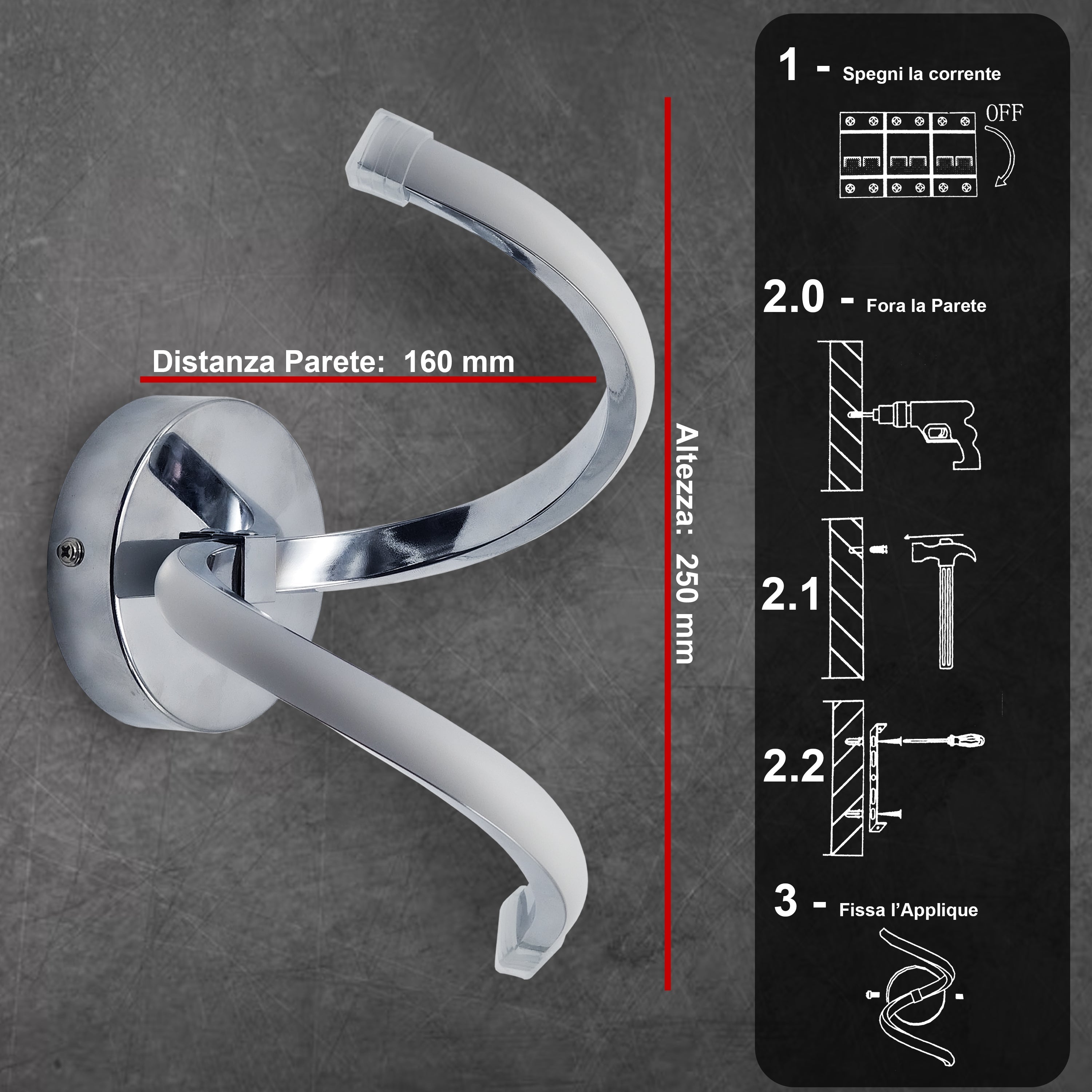 - DESIGN MODERNO: Struttura a spirale in acrilico e alluminio cromato, elegante e resistente nel tempo.
