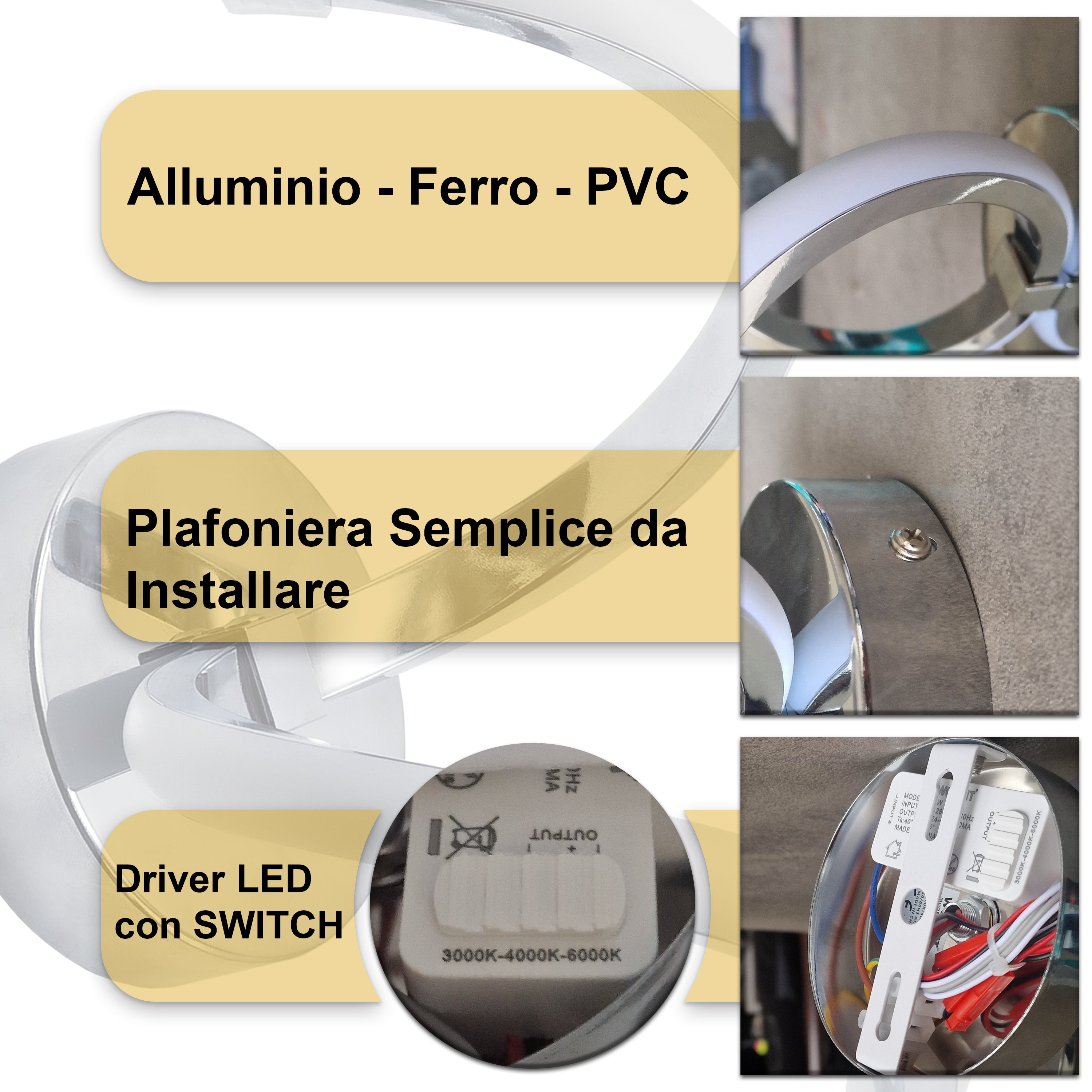 - ILLUMINAZIONE REGOLABILE: Tre temperature di colore (3000K, 4000K, 6500K) per creare l’atmosfera ideale in qualsiasi stanza.