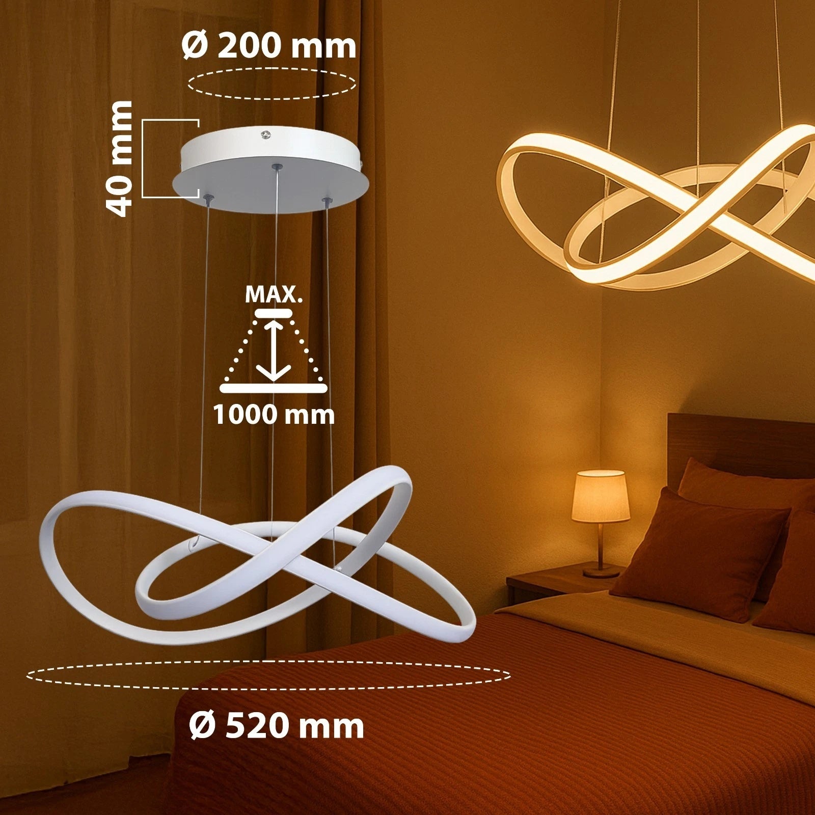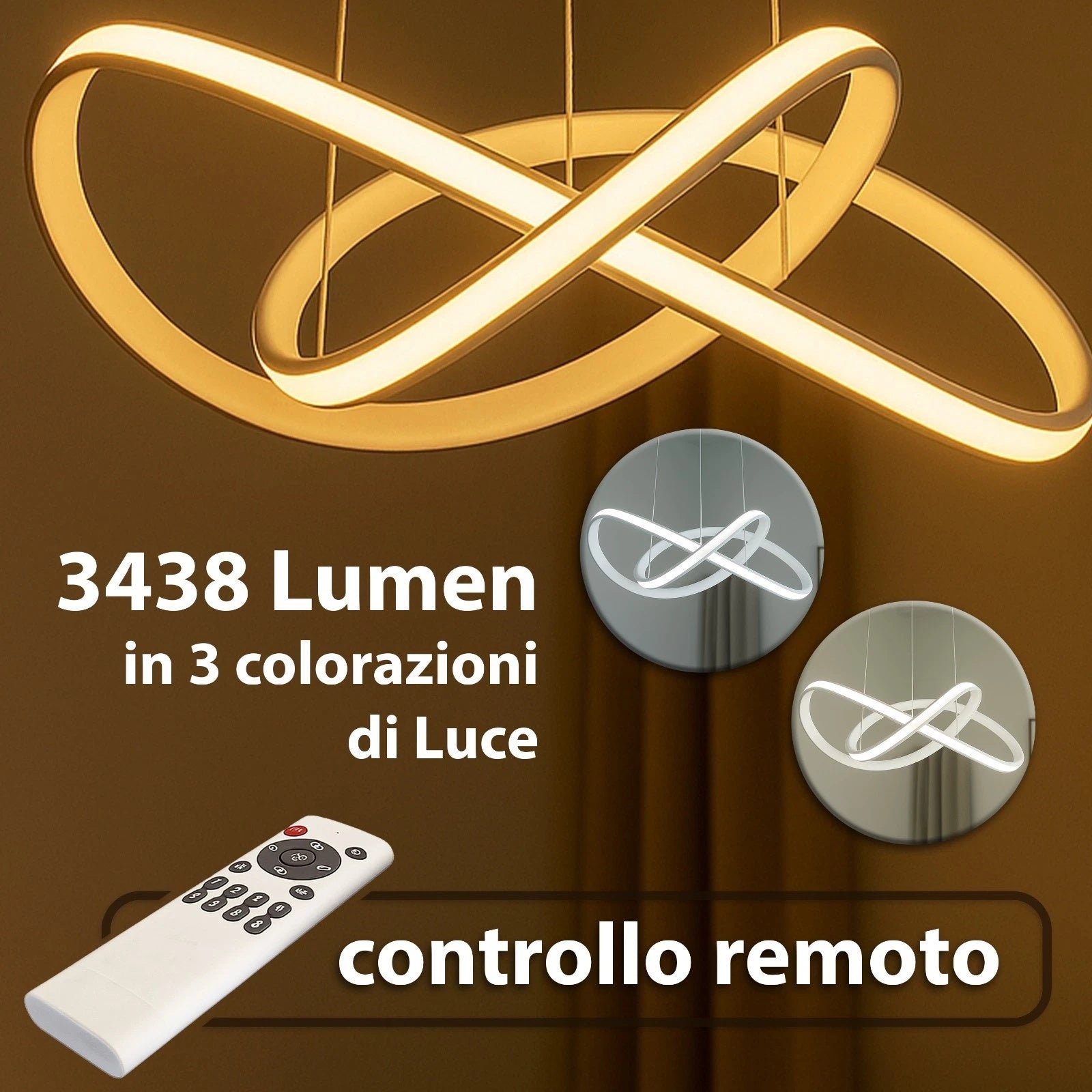 Lampadario LED 40W nastro infinito dimmerabile con telecomando
