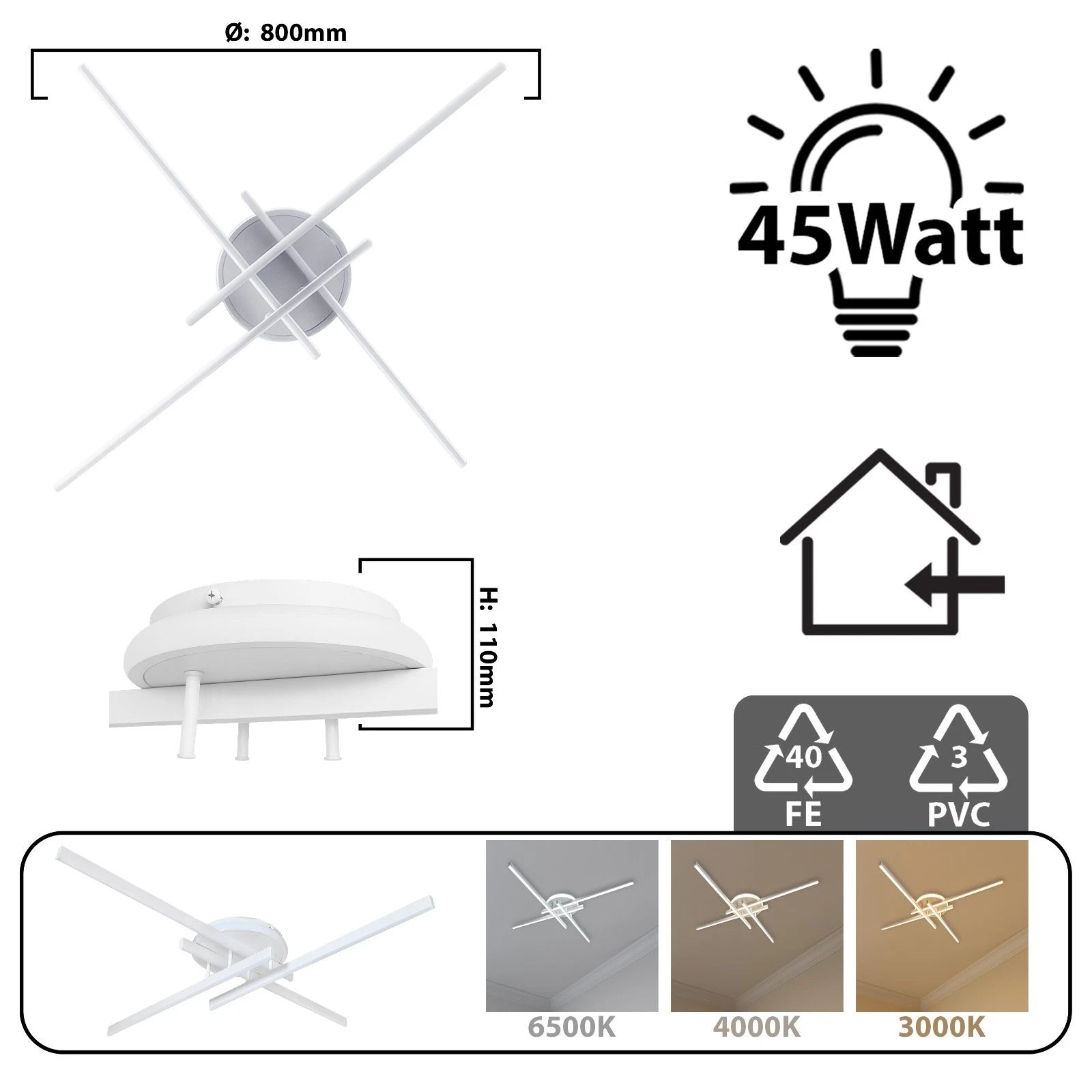 - Atmosfera personalizzata: lo Switch LED a 3 temperature (3000 K, 4000 K, 6500 K) permette di passare da luce calda a fredda in un secondo, adattando l’ambiente a relax, studio o cena.