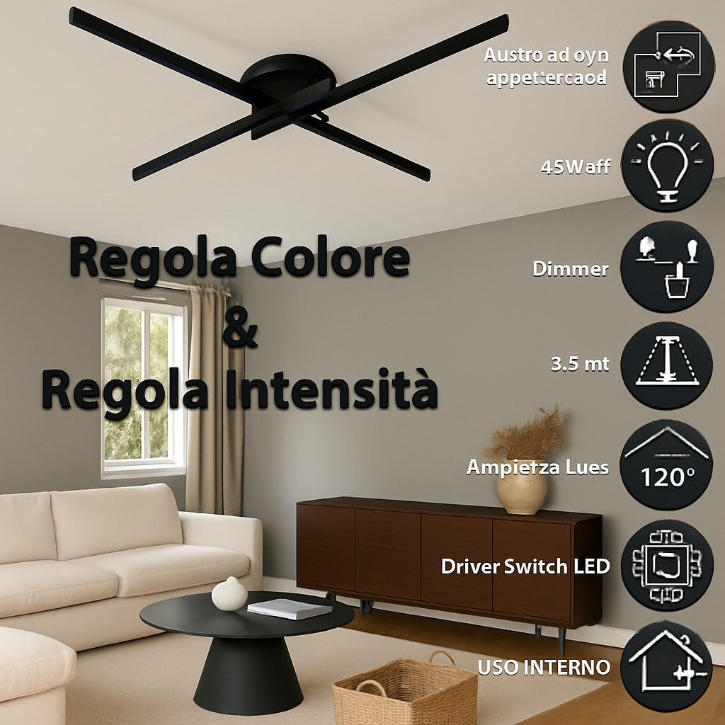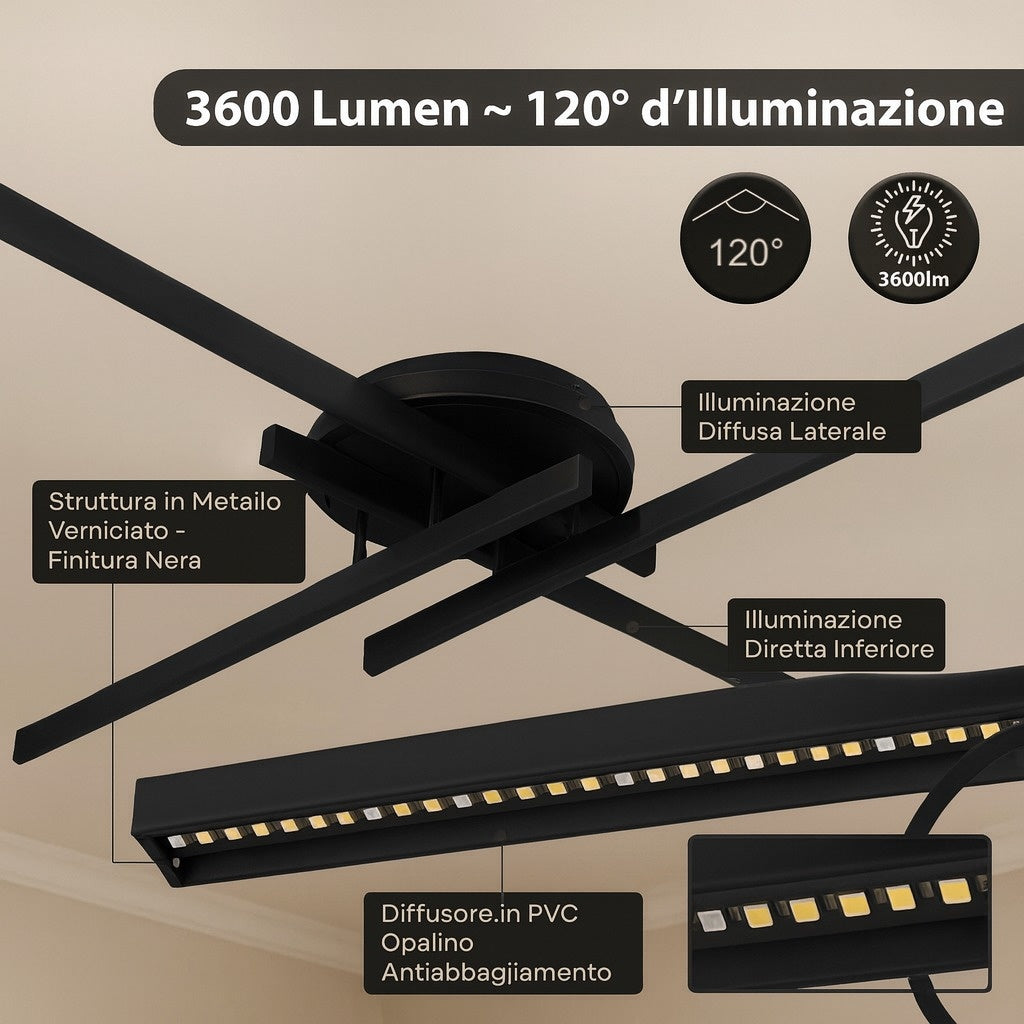 Lampadario LED 48 W a Croce Dimmerabile 3 CCT – Bianco/Nero