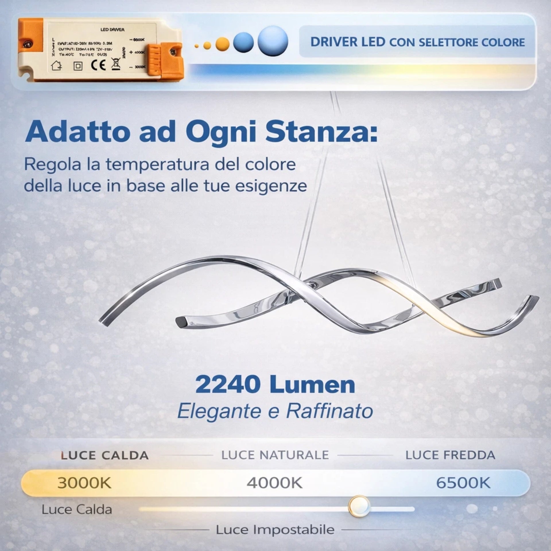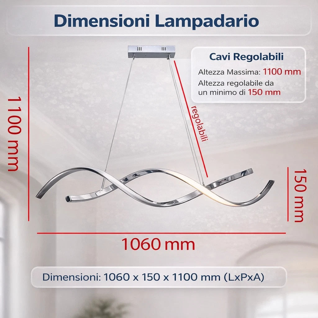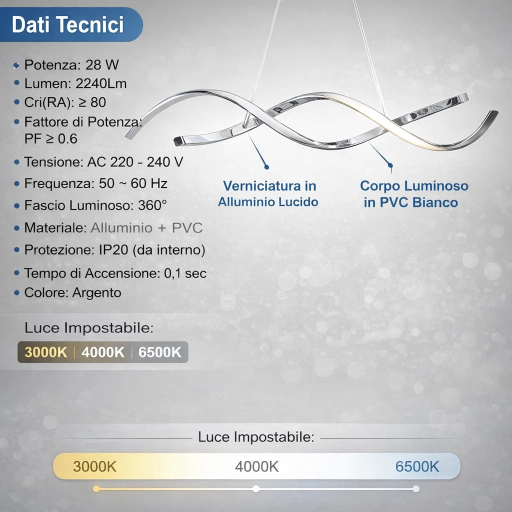 Lampadario LED a Sospensione Cromato, Altezza Regolabile, 28W