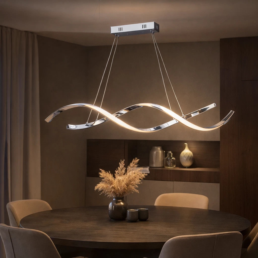 - DESIGN MODERNO ED ELEGANTE: La finitura cromata lucida conferisce un tocco sofisticato e contemporaneo, adattandosi perfettamente a qualsiasi ambiente, dal soggiorno alla sala da pranzo. Un elemento di arredo raffinato per illuminare con stile ogni spazio.