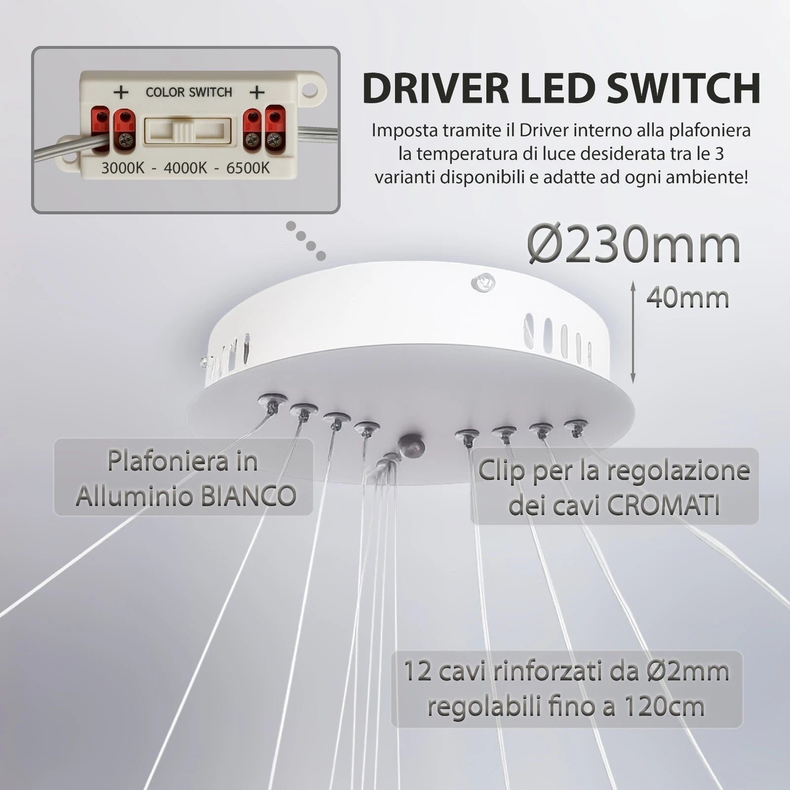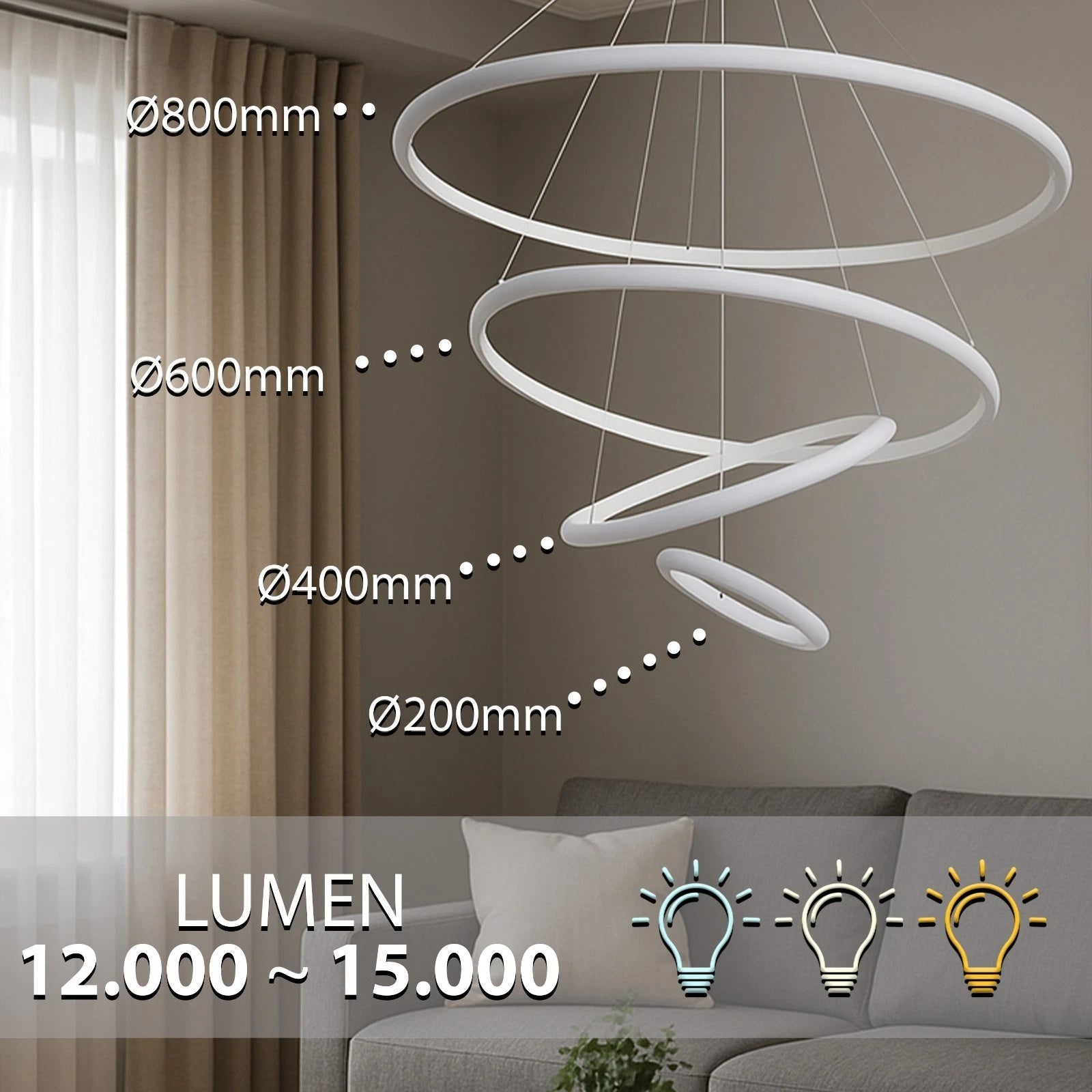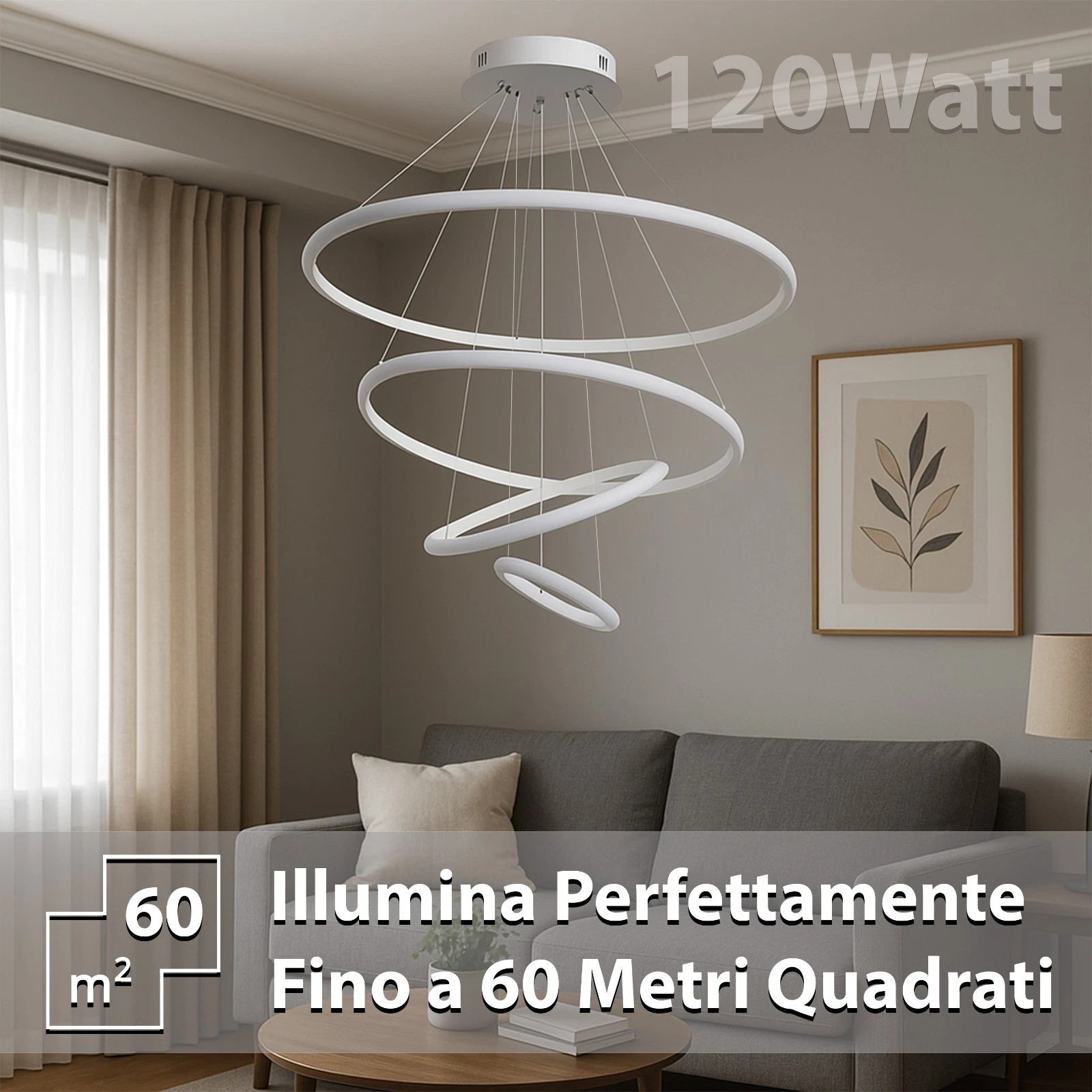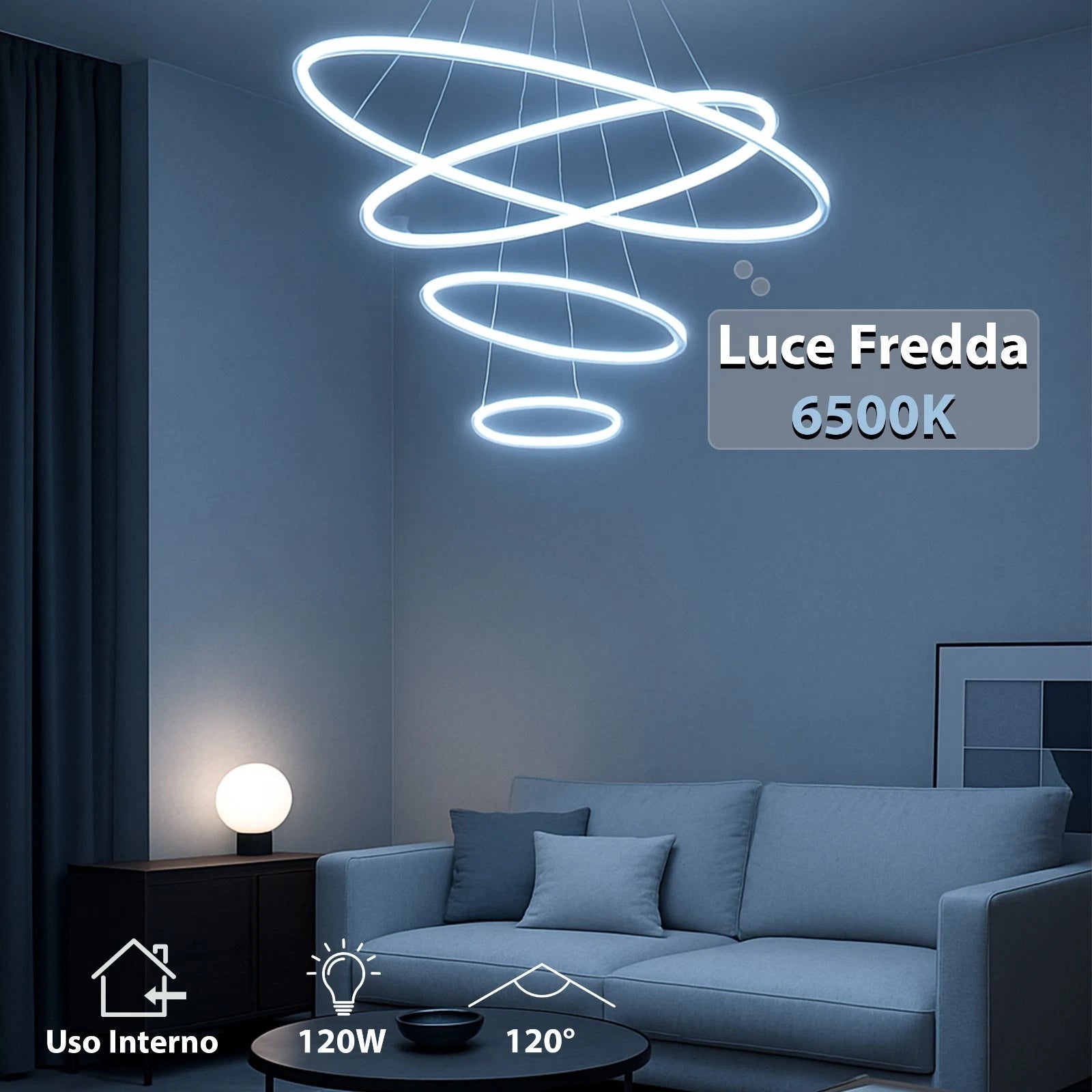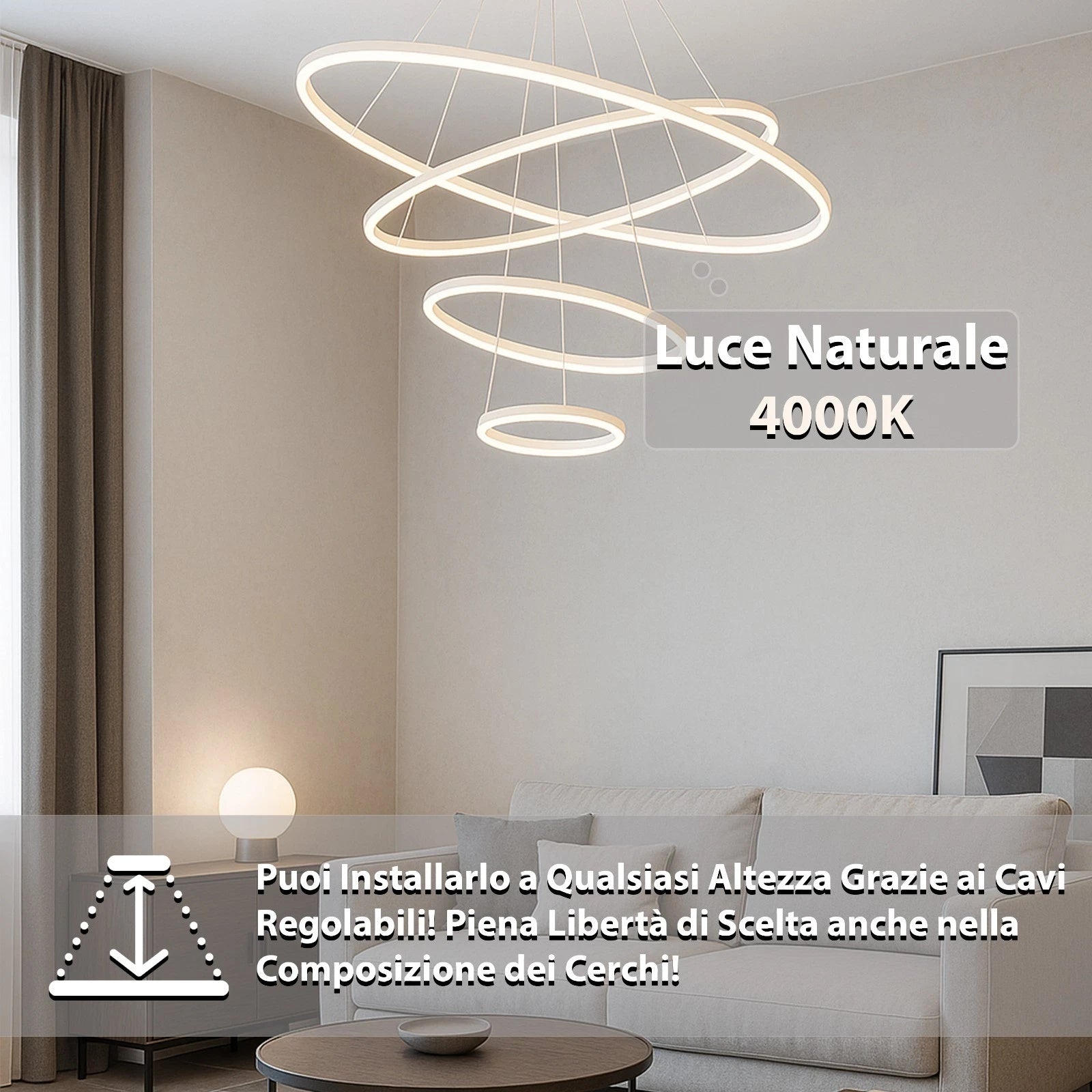 Lampadario LED moderno 120W con 4 cerchi regolabili