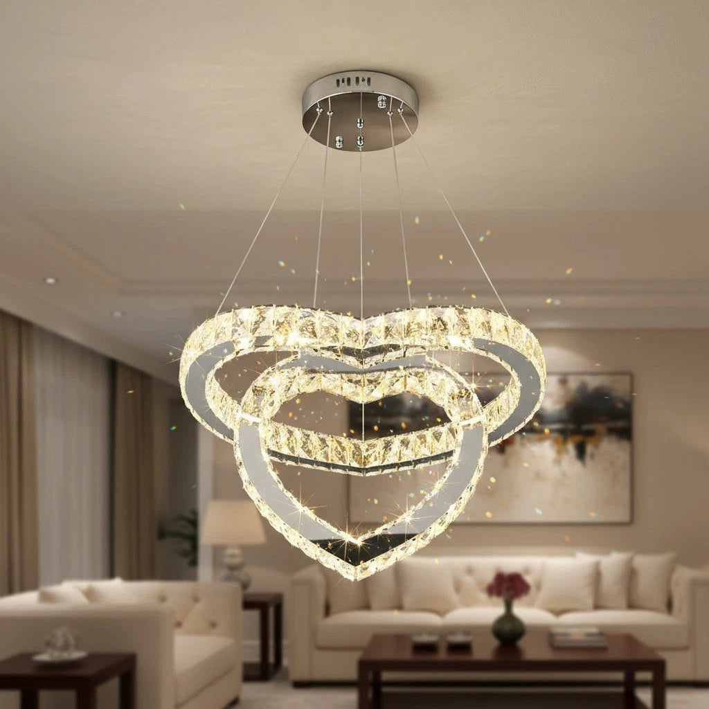 - DESIGN UNICO: Il lampadario a forma di cuore in cristallo aggiunge un tocco di eleganza e romanticismo a qualsiasi ambiente, perfetto per salotti e camere da letto.
