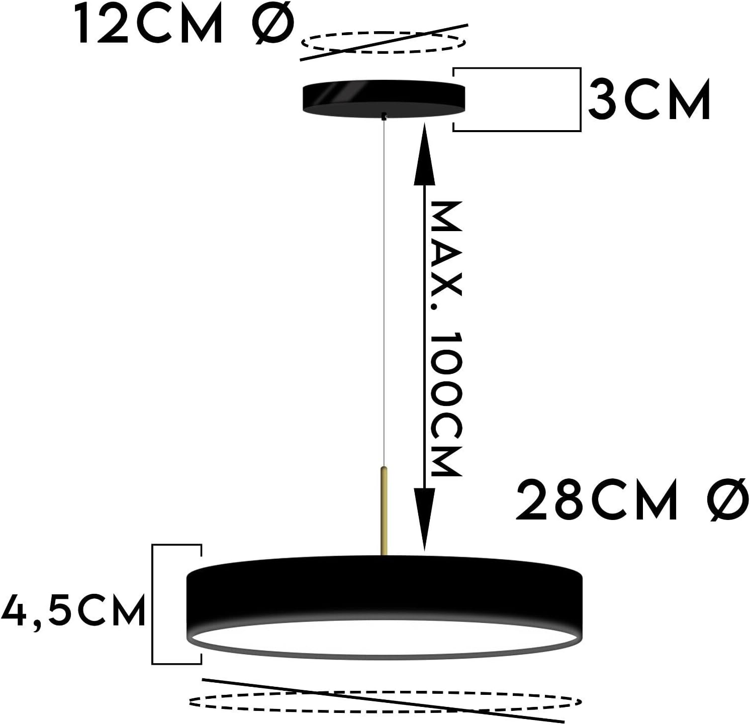 Lampadario SOSPESO 40W, Ø28cm, 3800 Lumen Luce Naturale/Fredda