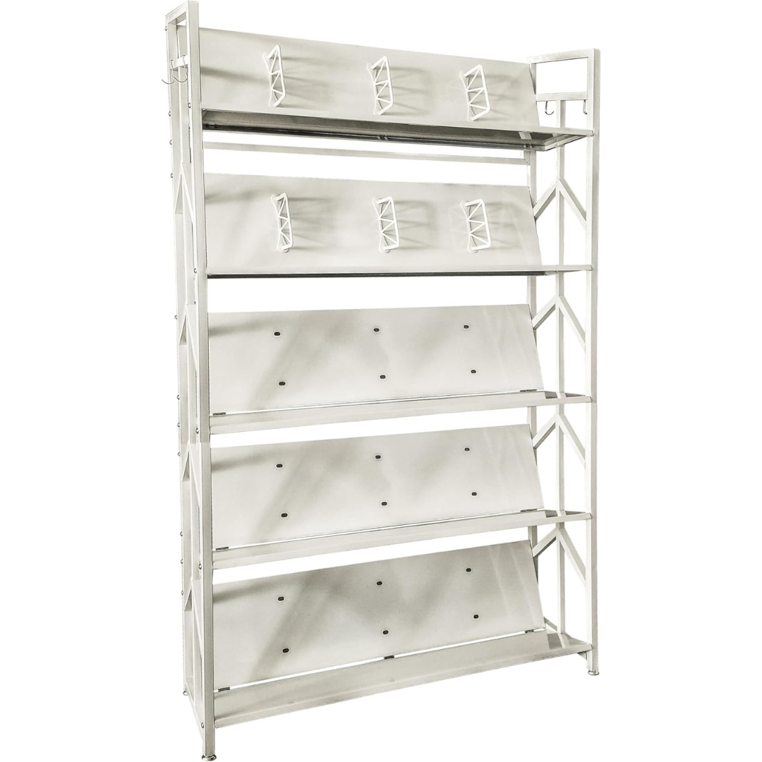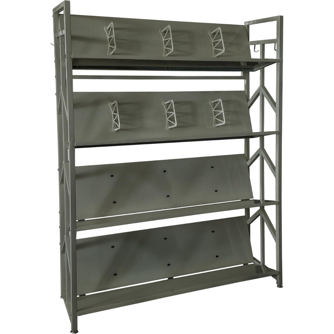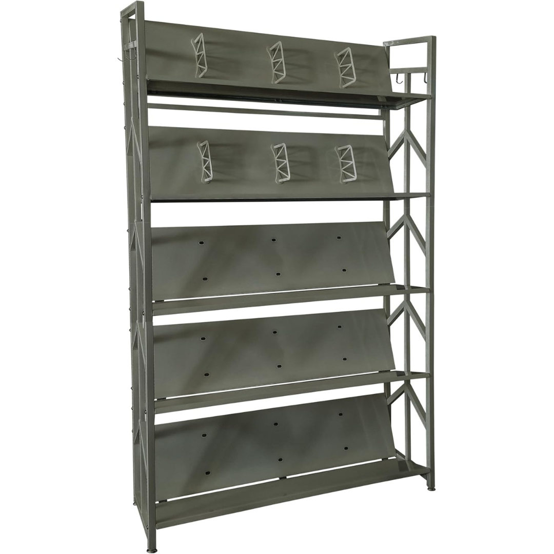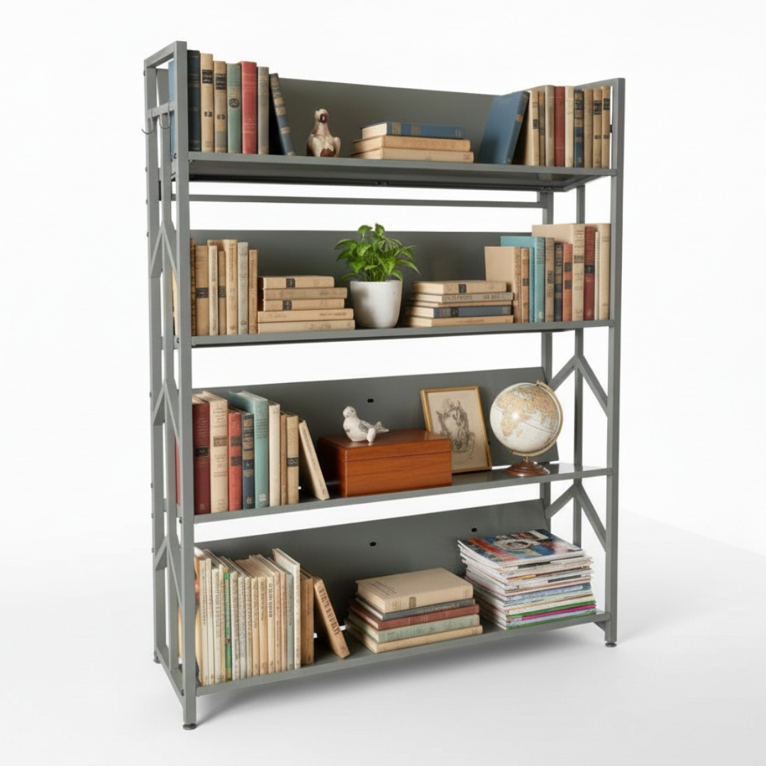 Libreria Verticale Salvaspazio in Acciaio con 4 o 5 Ripiani Inclinabii