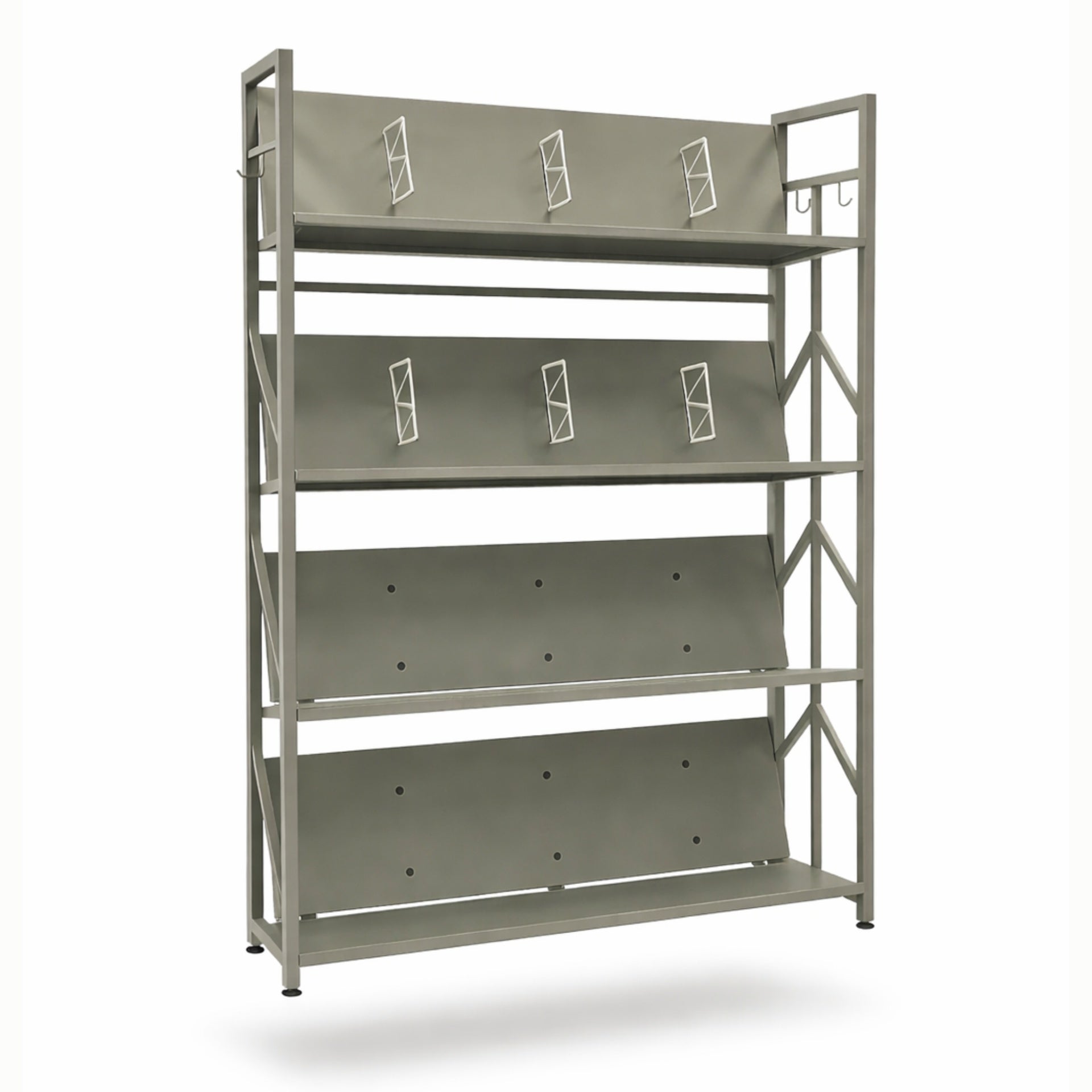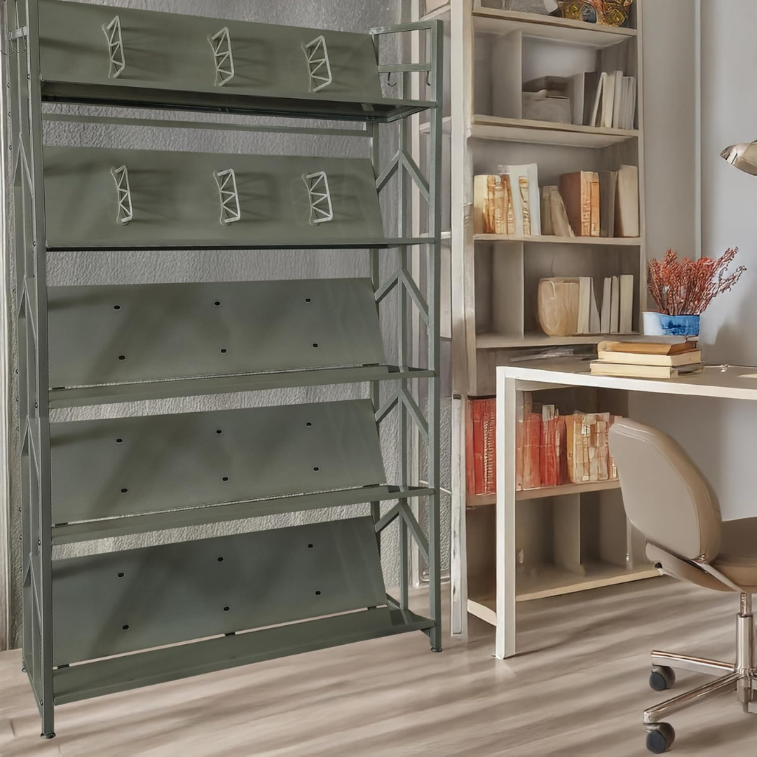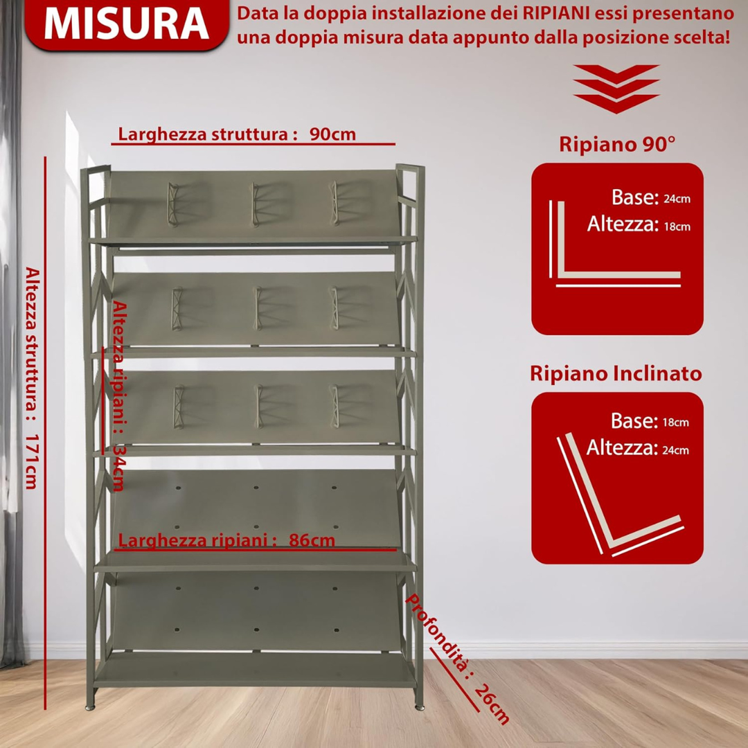 - RIPIANI INCLINABILI: I ripiani in metallo sono regolabili in inclinazione per facilitare la visualizzazione e l'accesso a libri, riviste o documenti, migliorando l'organizzazione quotidiana.
