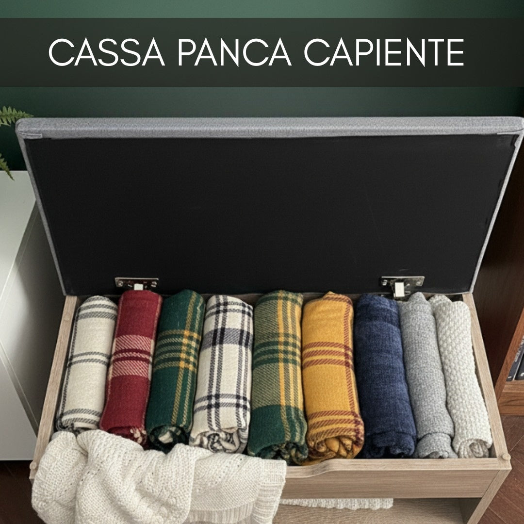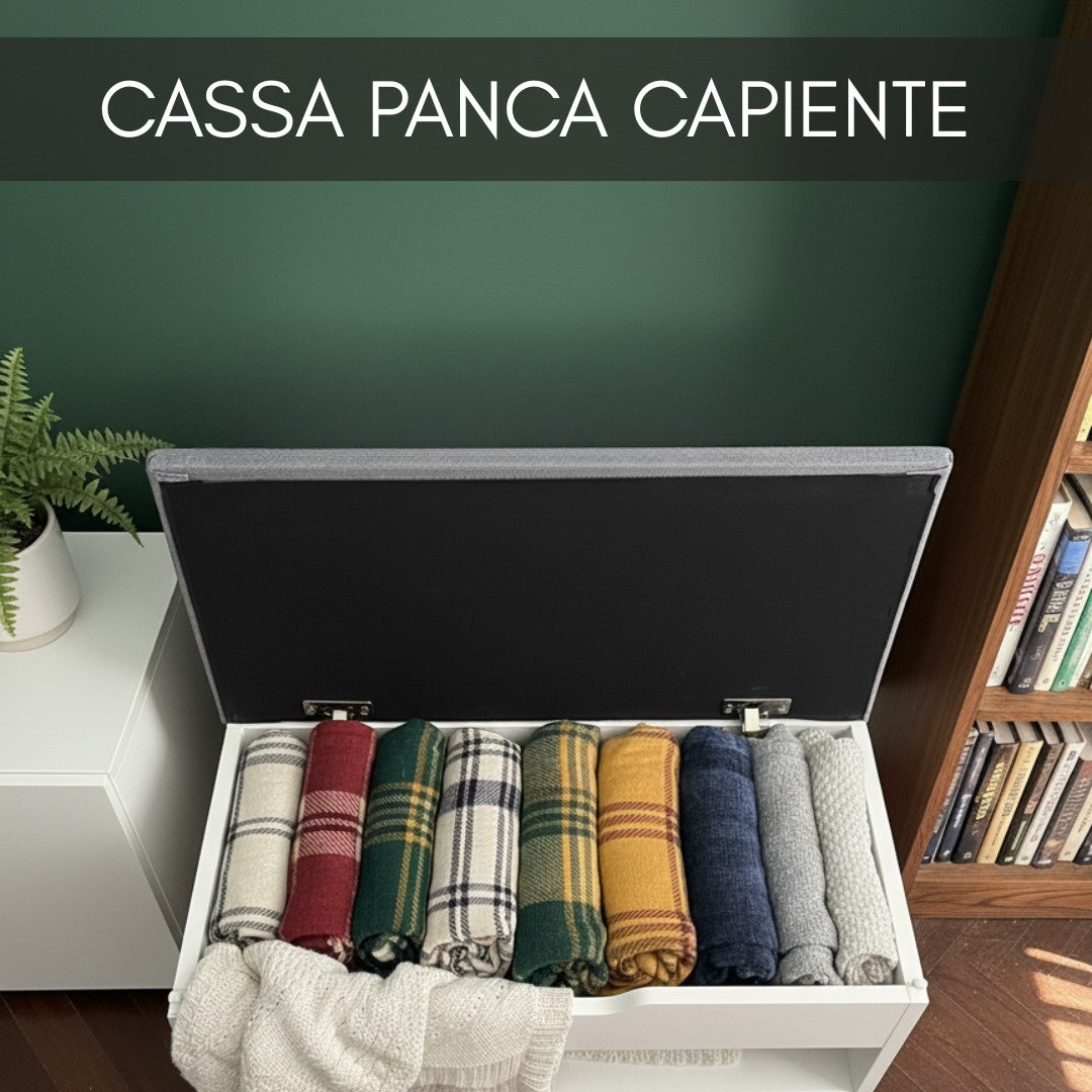 Il mobile cassapanca scarpiera combina eleganza e funzionalità in un unico prodotto. Realizzato in melaminico resistente, è disponibile in due eleganti finiture: bianco e rovere. La struttura interna offre ampio spazio per riporre scarpe, vestiti o giochi, mentre il cuscino imbottito lo rende perfetto anche come seduta.