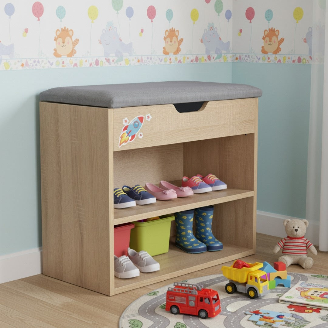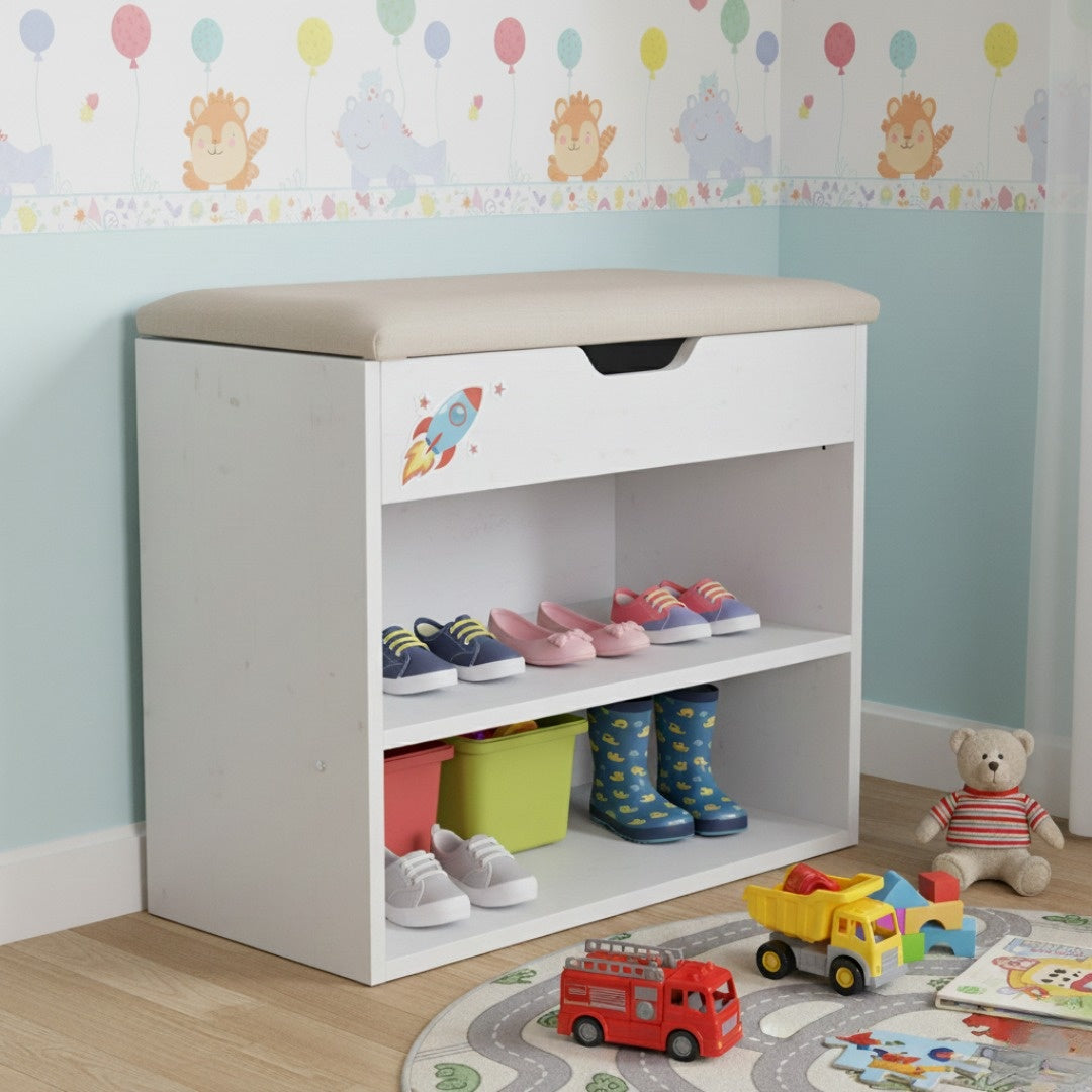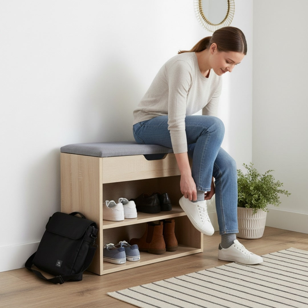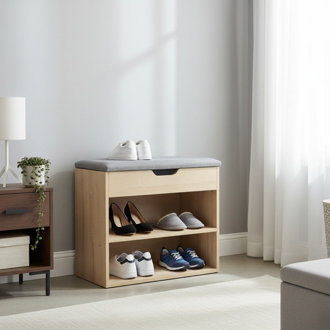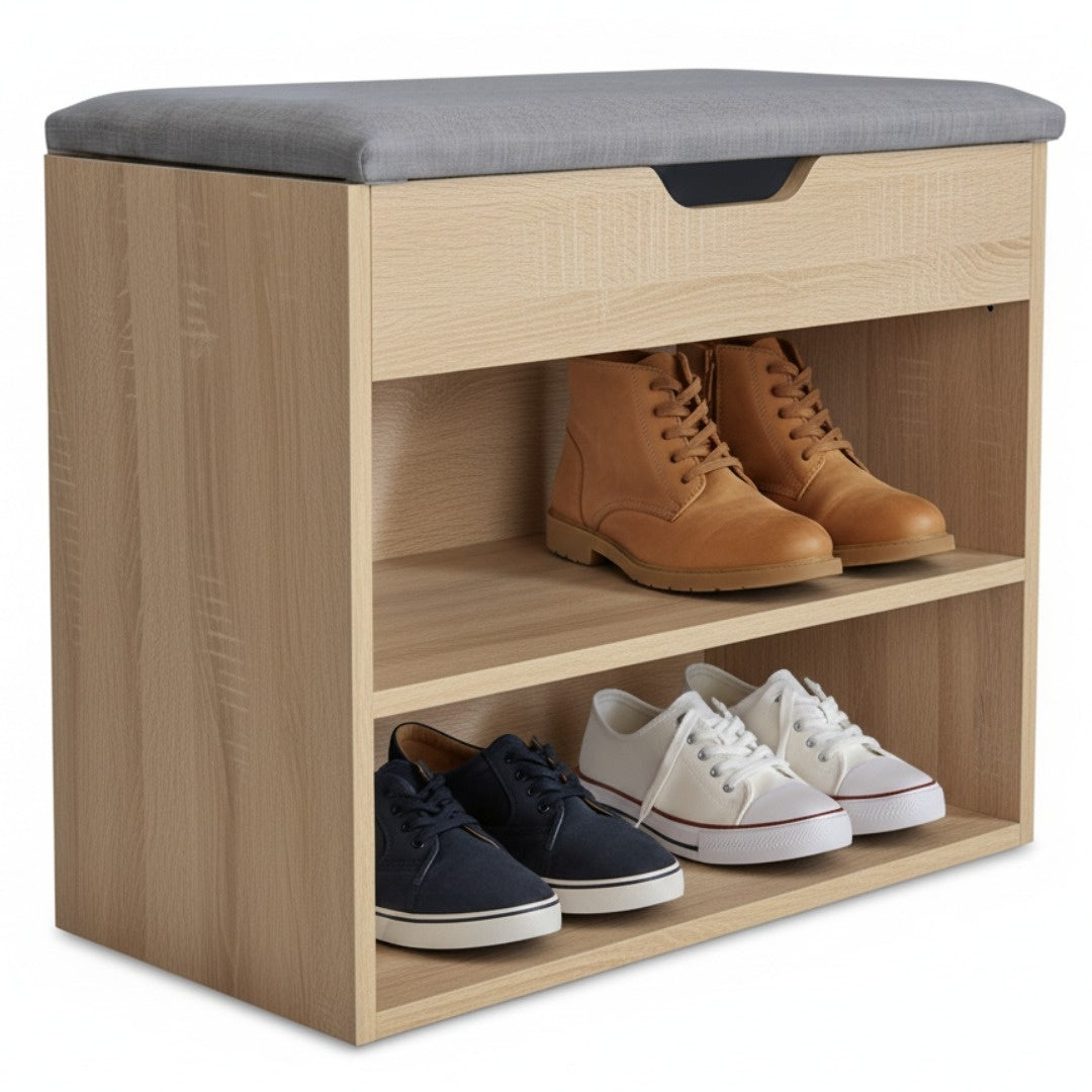 Mobiletto cassapanca scarpiera in melaminico con cuscino imbottito salvaspazio