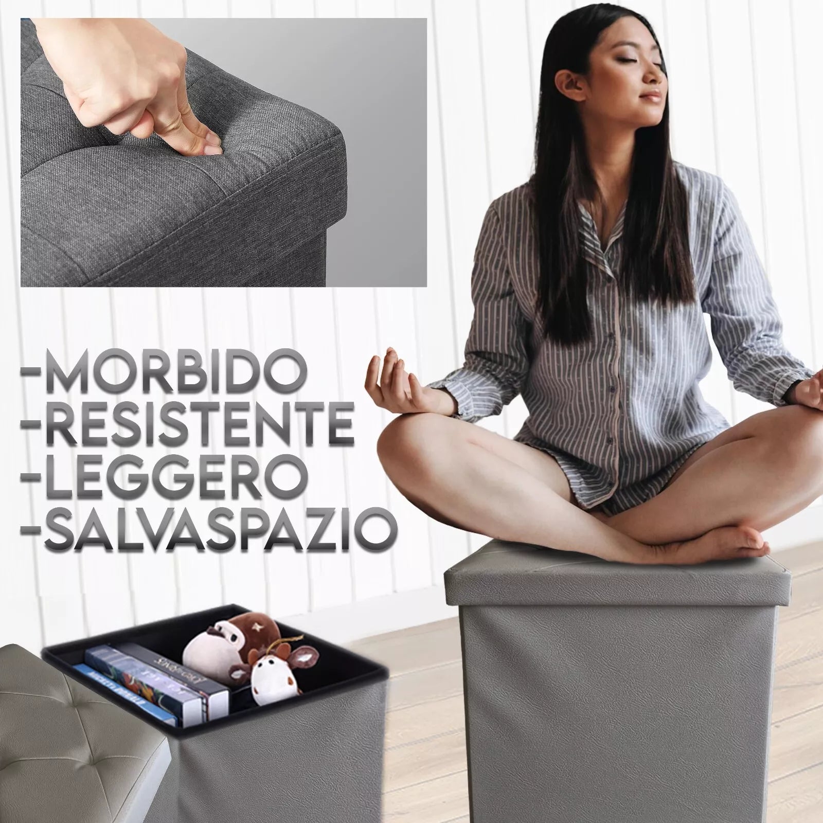 - MATERIALE RESISTENTE: La struttura robusta e l’ecopelle resistente all'usura assicurano una lunga durata nel tempo. Questo pouf è ideale per un uso quotidiano in qualsiasi stanza della casa, dal salotto alla camera da letto.