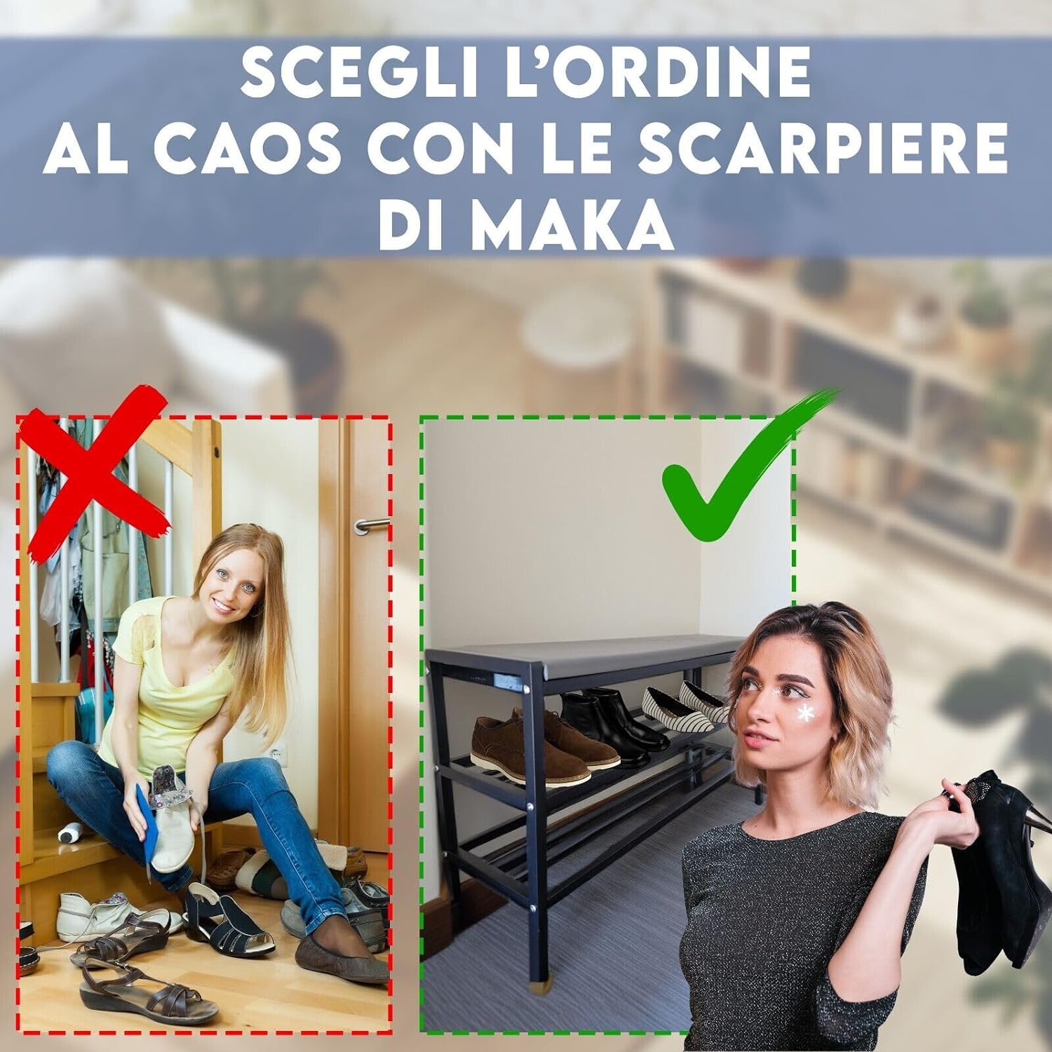 • MATERIALI DI QUALITÀ: Realizzata in metallo resistente e durevole, questa scarpiera è progettata per sostenere il peso senza compromettere la stabilità, garantendo una lunga durata nel tempo.