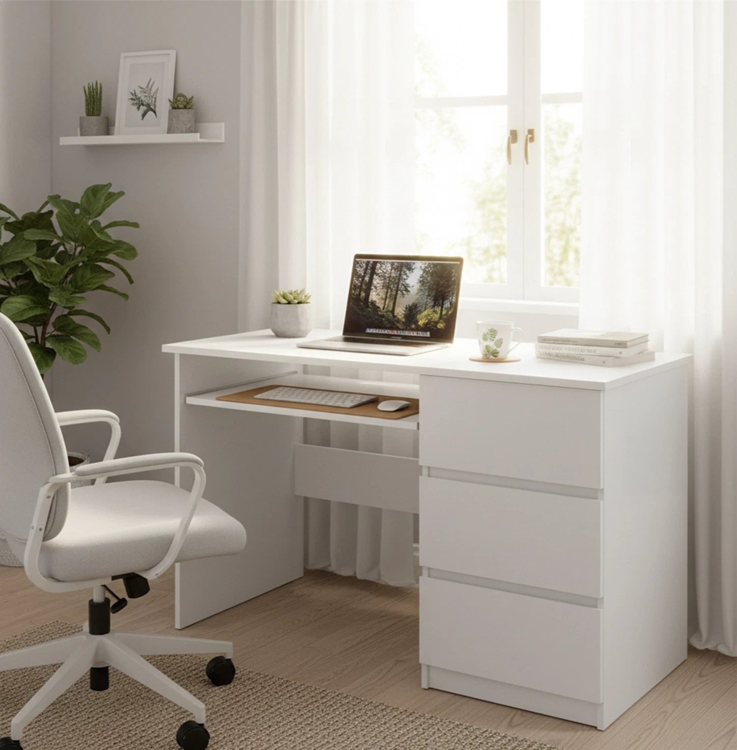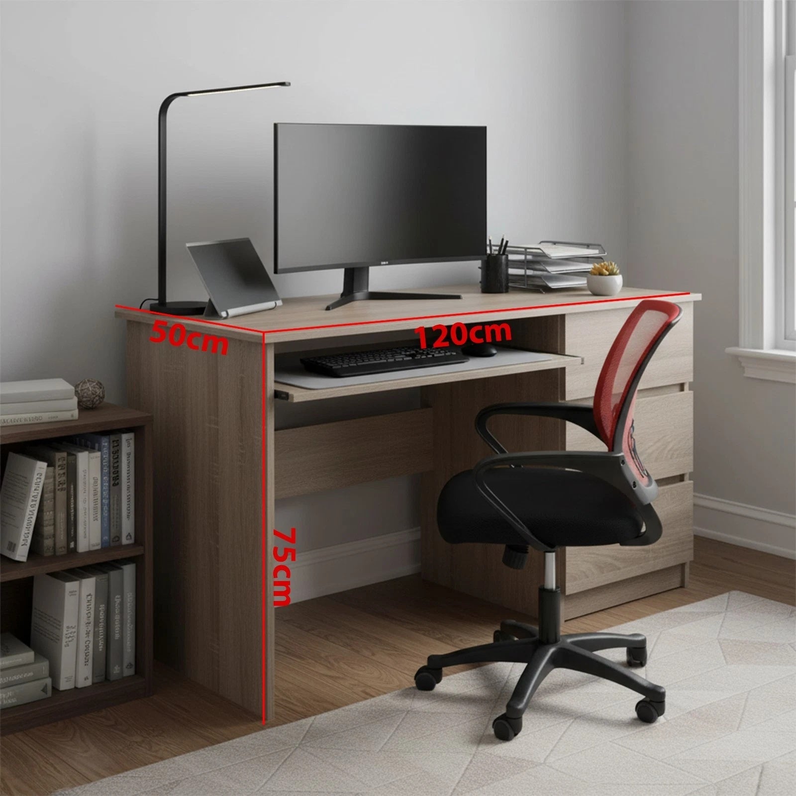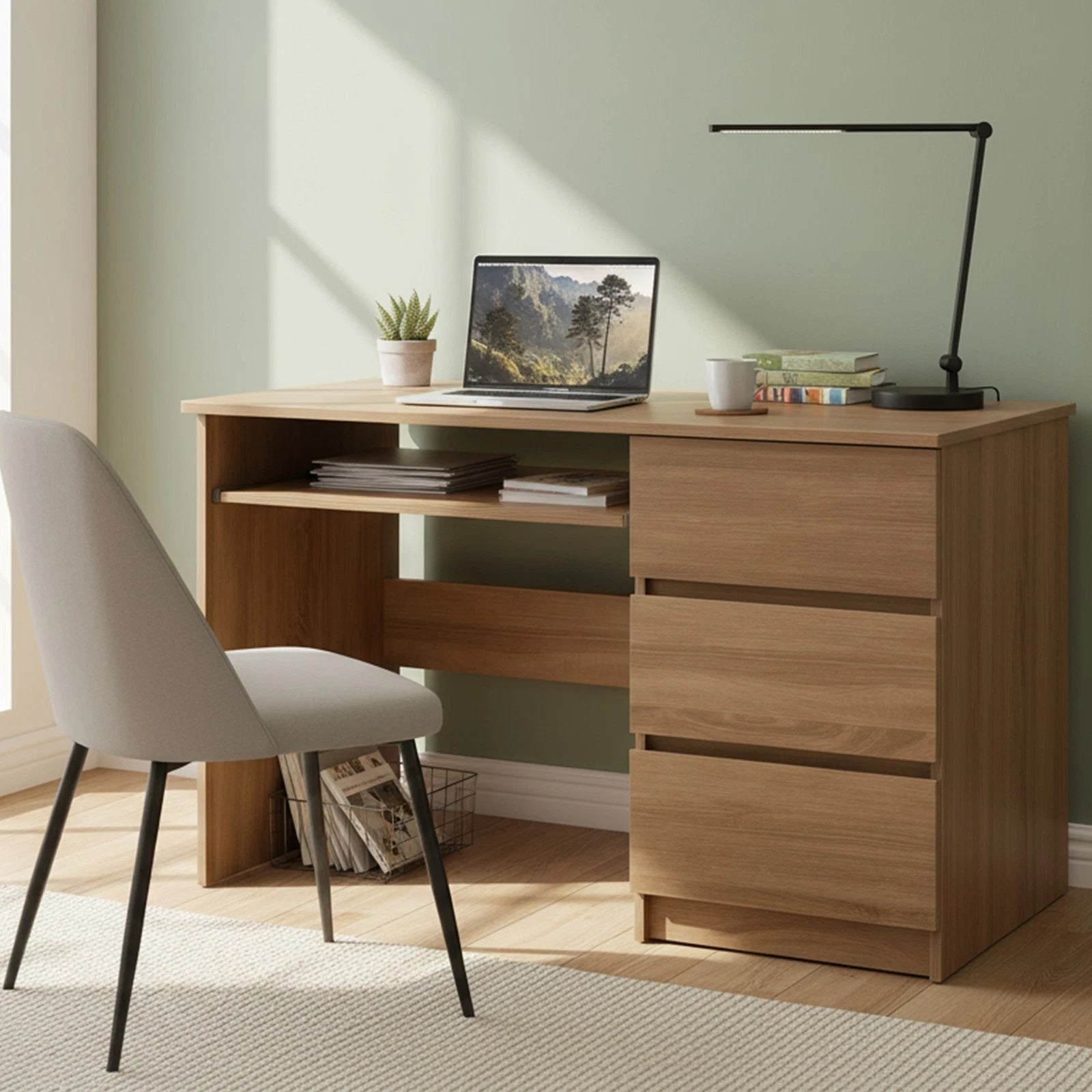 Scrivania Ufficio con 3 Cassetti e Piano Tastiera – Rovere o Bianco