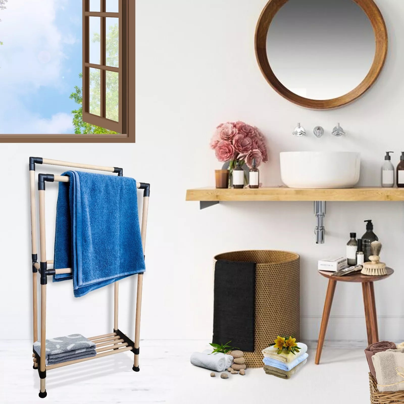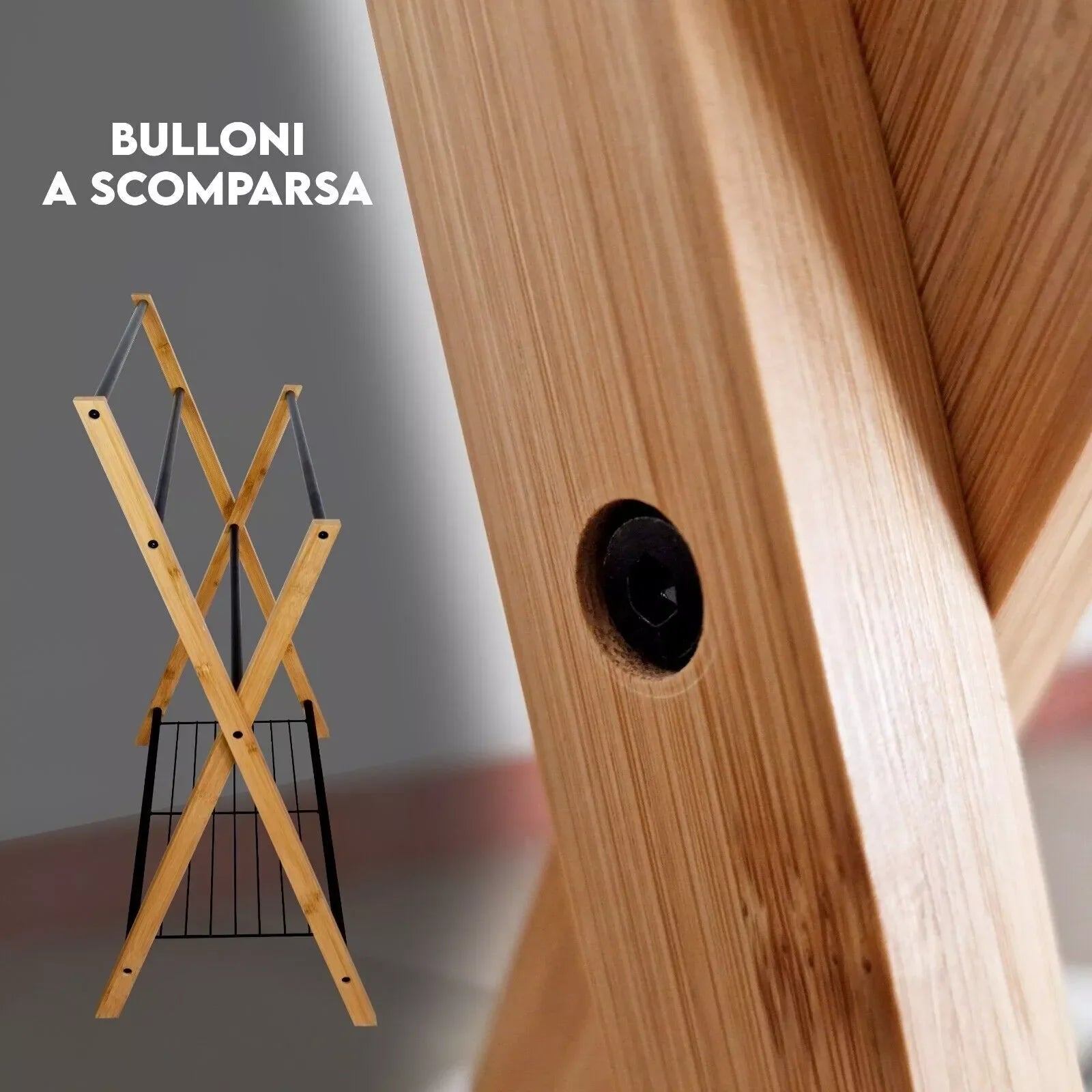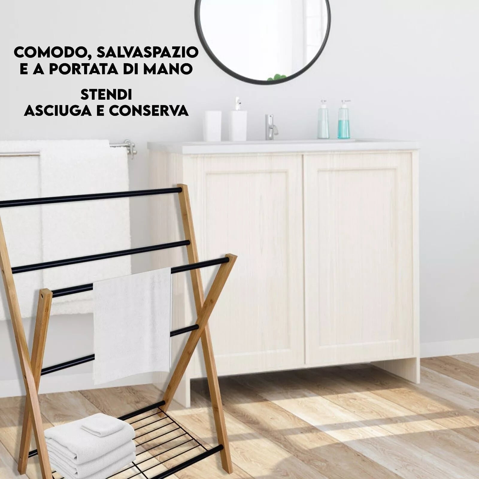 Stendibiancheria Porta Asciugamani in Legno Salvaspazio Resistente e Leggero