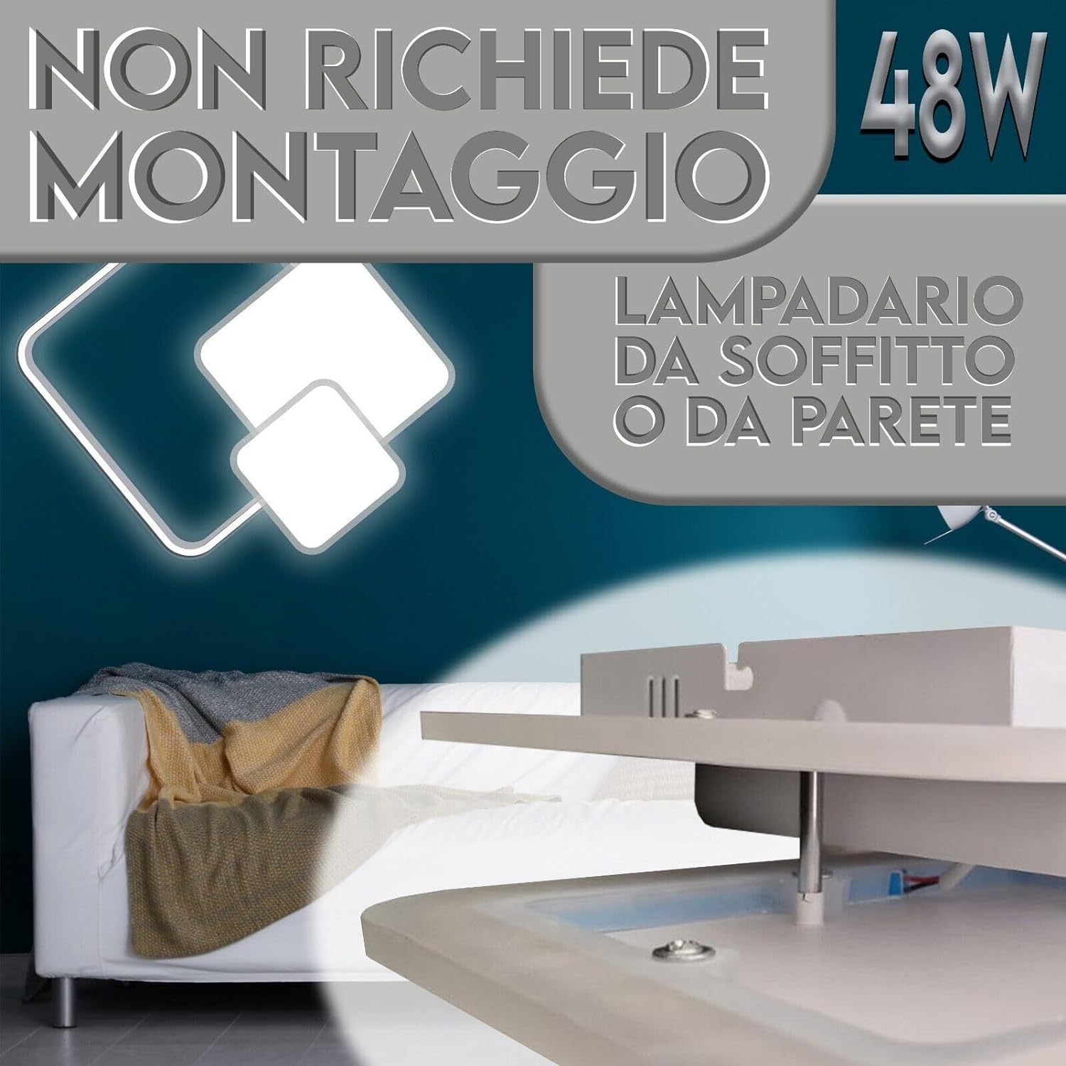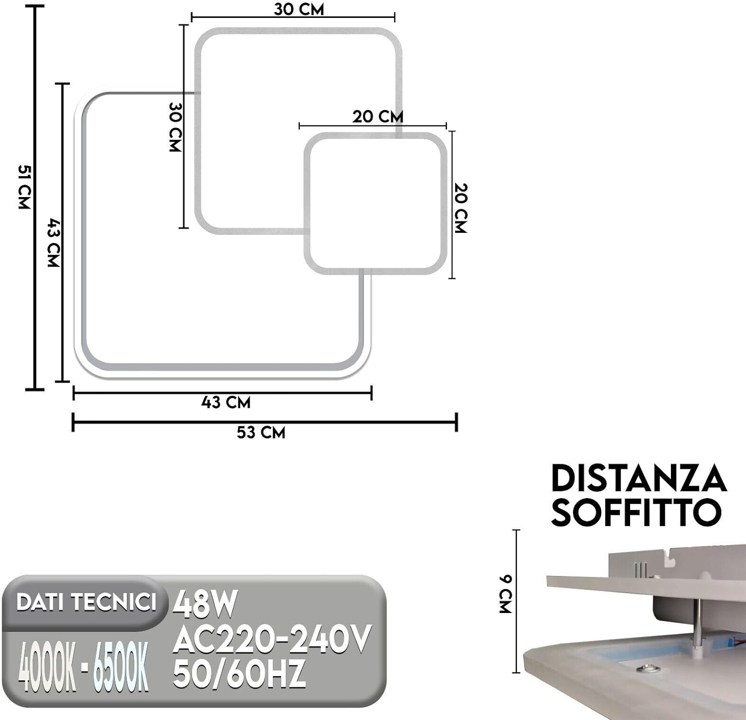 Plafoniera moderna a Led, con 3 punti di luce, dal design minimal, perfetto per ambiente e stile di arredamento. Realizzato con materiali di alta qualità come alluminio e PVC, garantisce un'illuminazione efficiente grazie alla tecnologia LED SMD. Ideale per soggiorni, camere da letto, cucine e bagni, offre una potente illuminazione da 48 watt, sufficiente per ambienti fino a 20 metri quadrati. Il design elegante in alluminio spazzolato, con dimensioni di 51x53x9cm, si adatta a qualsiasi soffitto, e l'installazione è semplice grazie al kit completo fornito.