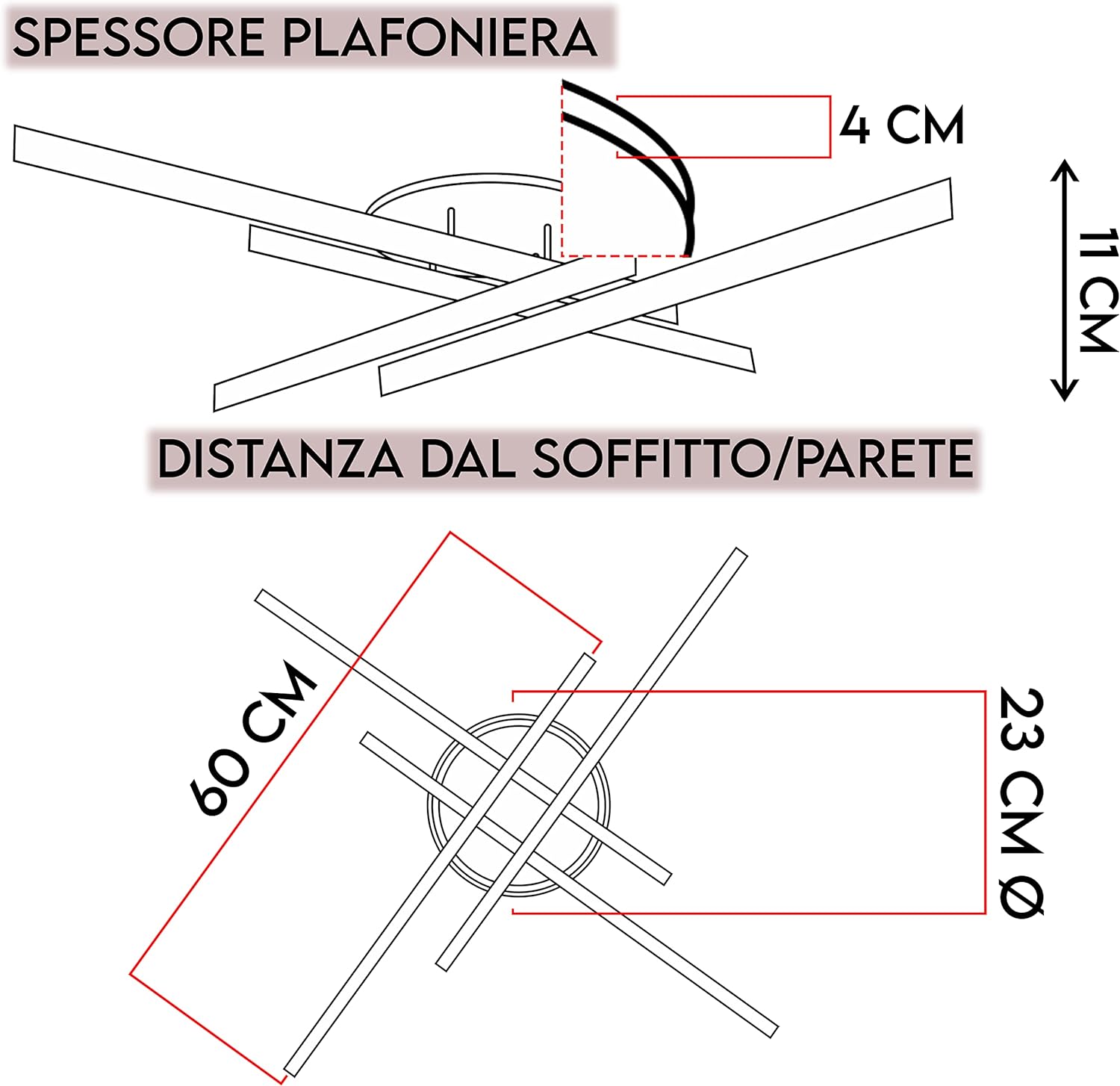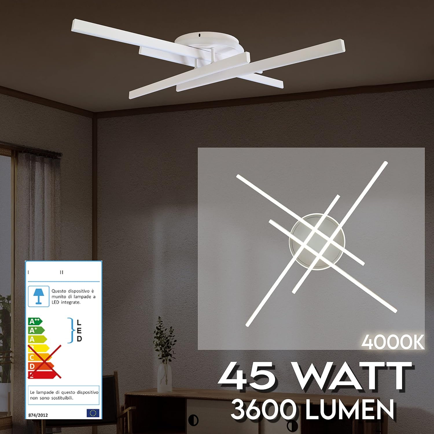 Questa plafoniera LED da 45 watt offre un'illuminazione potente, ideale per illuminare ambienti fino a 20 metri quadrati. Il design minimale presenta un corpo in alluminio con dimensioni di 60x60x11 cm, perfetto per soffitti fino a 3 metri di altezza. Il montaggio è semplice grazie al kit completo incluso, che permette un fissaggio a soffitto senza necessità di lavori invasivi.