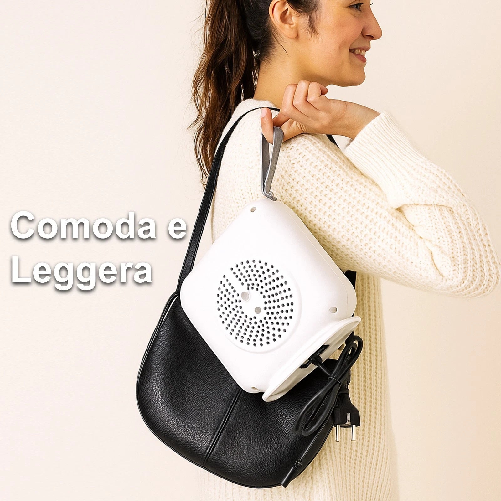 Design compatto 24×22×12 cm: portala ovunque e posizionala facilmente su qualsiasi superficie.