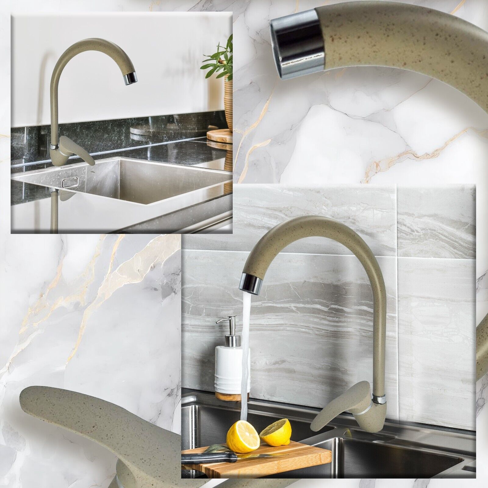 • ROTANTE A 360°: La canna alta rotante a 360° offre massima flessibilità, permettendo di raggiungere ogni angolo del lavello con facilità e rendendo le operazioni di pulizia più efficienti.